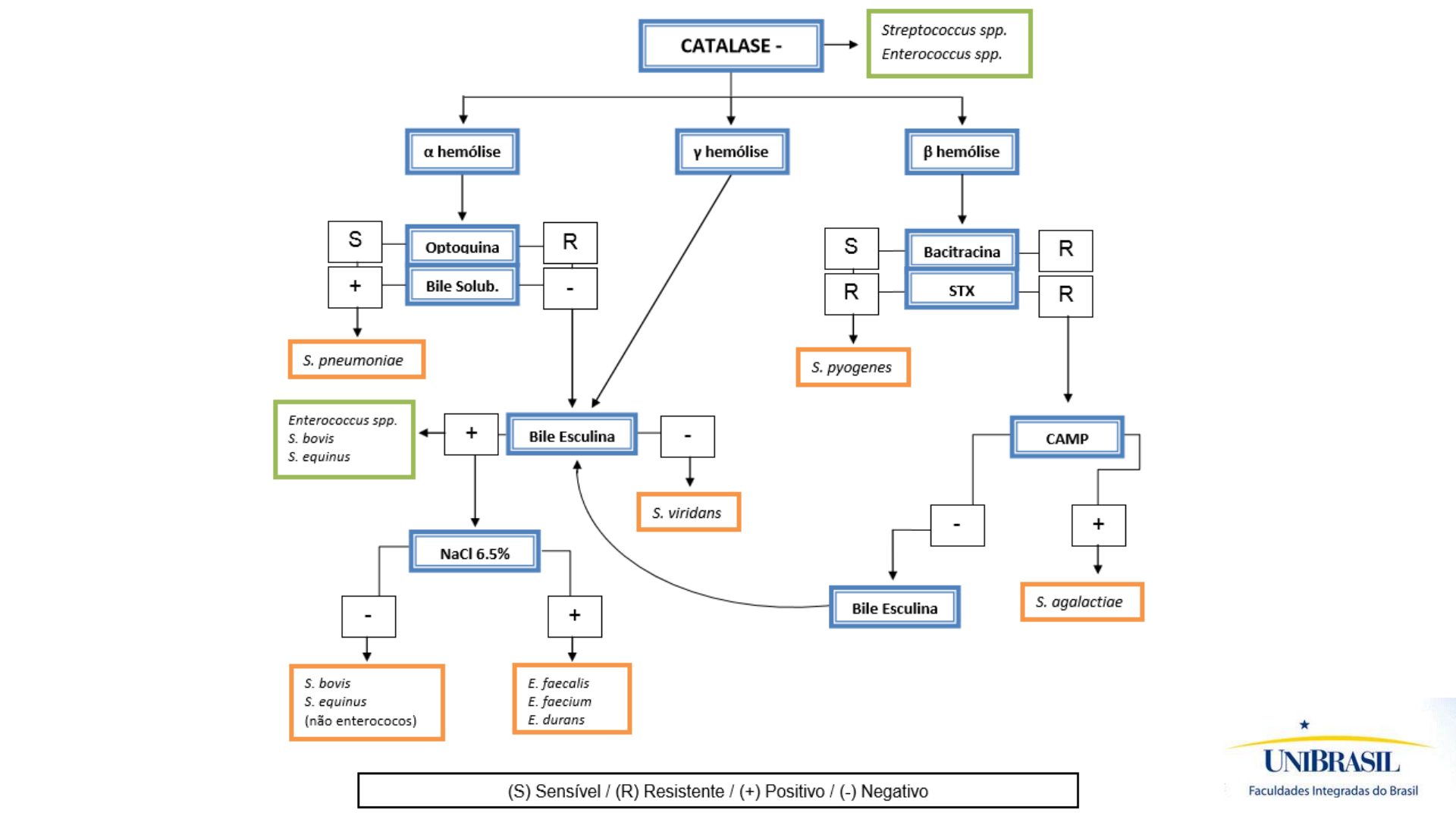 Streptococcus spp. Profa Dra Rayana Ariane Pereira Maciel Streptococcus spp. • Cocos Gram Positivos (CGP) • Estreptococos: enfileirados, em cadeias • Cultivado em Ágar Sangue Streptococcus spp. • Critérios de Lancefield • Rebecca C. Lancefield (1895-1981) • Classificou os estreptococos de acordo com os sorotipos (variantes de uma espécie) → com base em certos componentes das paredes celulares das bactérias • Grupos A, B, C, D, E, F, G, H, K, L, M, N, O, P, Q, R, S, T, U e V Streptococcus spp. • Meningite • Pneumonia • Dor de garganta • Otite média • Endocardite • Febre puerperal • Cáries dentárias Streptococcus spp. • Toxinas • Destroem as células fagocíticas • Disseminam infecções ao digerirem o tecido conjuntivo do hospedeiro, levando a uma destruição extensa dos tecidos • Lise da fibrina de coágulos sanguíneos Streptococcus spp. • Streptococcus pyogenes • Colônias brancas β-hemolíticas • Grupo A de Lancefield • “Comedora de carne” • FATORES DE VIRULENCIA → Proteína M da superfície bacteriana, cápsula (evitam a fagocitose) • Sensível a Bacitracina (PROVA BIOQUÍMICA) Streptococcus spp. • Streptococcus pyogenes • Hemolisinas→ lisar eritrócitos • Estreptolisinas podem lisar eritrócitos, neutrófilos e plaquetas (cuja função é eliminar os estreptococos) • Estreptolisina O (SLO ou ASO): diagnóstico de Febre Reumática • Estreptolisina S: não imunogênica Streptococcus spp. • Streptococcus pyogenes • Febre escarlatina, faringite (dor de garganta), erisipela, impetigo e febre reumática • Fasciite necrosante: frequentemente associada à síndrome do choque tóxico estreptocócica • Bacteremia Streptococcus spp. • Streptococcus agalactiae • β-hemolítico do grupo B→ única espécie no grupo antigênico B • Causa de uma importante doença que ocorre em recém-nascidos → septicemia neonatal Streptococcus spp. • Streptococcus agalactiae • CAMP-Test (Christie, Atkins e Munch-Petersen) • Atua sinergicamente com a β-hemolisina produzida pelo Staphylococcus aureus em ágar sangue • Teste +: formação de uma seta ou meia-lua convergindo para o S.aureus na intersecção do crescimento das duas bactérias • Teste -: se não houver formação de seta ou meia-lua, cepa não pertence ao grupo B de Lancefield Streptococcus spp. • Streptococcus pneumoniae • Pneumococo • Residente da flora normal do nariz e garganta • Cepas com cápsulas são virulentas • Cepas sem cápsulas são avirulentas → suscetíveis à fagocitose • Vacina anti-pneumocócica→ para crianças até 5 anos Streptococcus spp. Streptococcus spp. • Streptococcus pneumoniae • Cultivo de escarro ou lavado broncoalveolar • α-hemolíticos • Sensível a optoquina (PROVA BIOQUÍMICA) Streptococcus spp. • Streptococcus do grupo viridans • Streptococcus mutans • α-hemolíticos • Fixa-se na superfície dos dentes por um glicocálice • S. mutans (glicocálice)+ Actinomyces (fímbrias) + dextrana (polissacarídeo aderente) = placa dentária Streptococcus spp.
