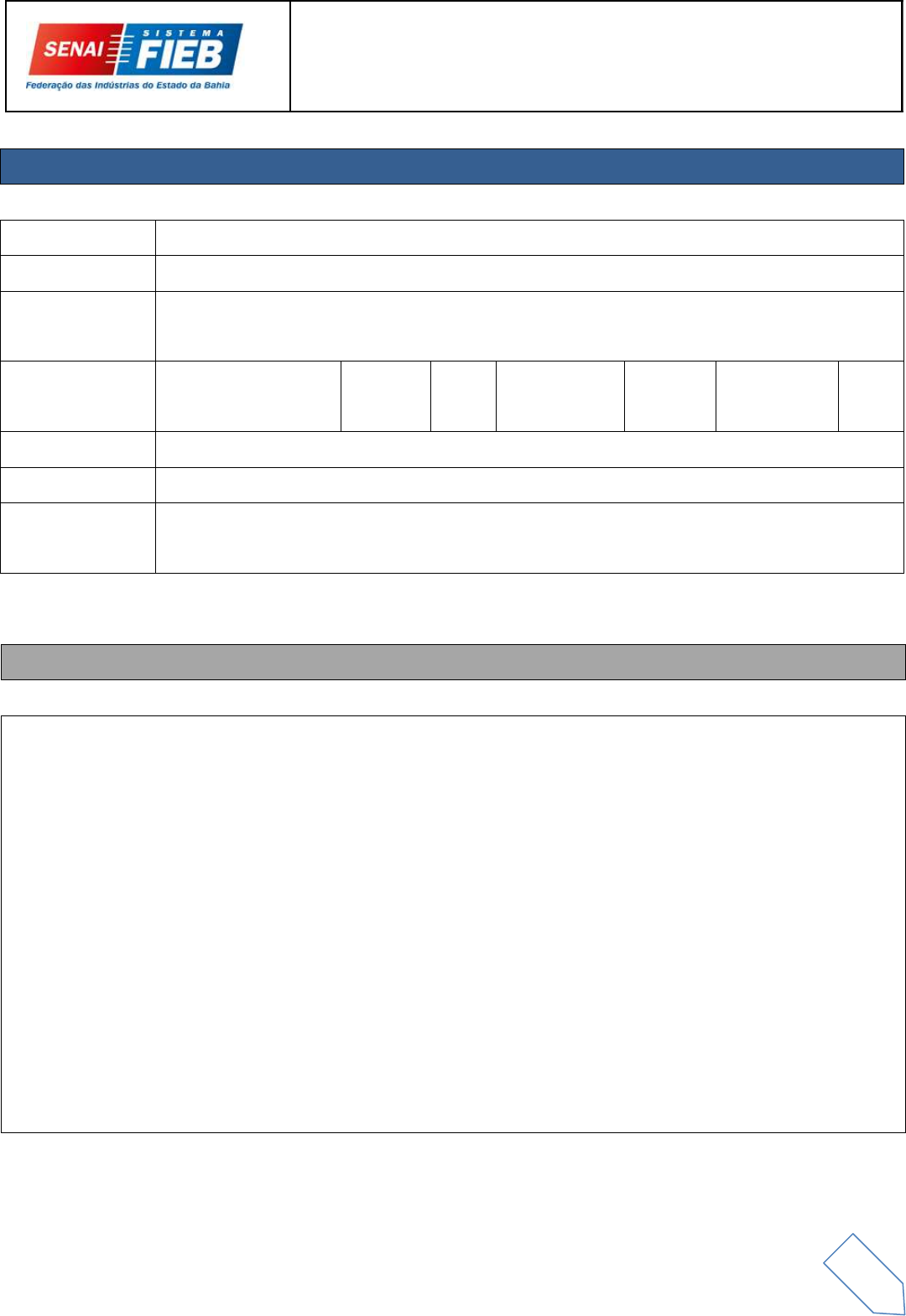 1 Roteiro de Prática 2. Unidades de Competência¹⁰ UC1: Apoiar a gestão da manutenção mecânica e elétrica de máquinas e equipamentos industriais, atendendo as normas e padrões técnicos, de qualidade, saúde e segurança e de meio ambiente. UC2: Apoiar a gestão da produção de peças e componentes mecânicos e a montagem de sistemas mecânicos e elétricos de máquinas e equipamentos industriais, atendendo as normas e padrões técnicos, de qualidade, saúde e segurança e de meio ambiente. UC3: Atuar na manutenção de sistemas automatizados de máquinas e equipamentos, atendendo as normas e padrões técnicos, de qualidade, saúde e segurança e de meio ambiente. UC4: Atuar no desenvolvimento de projetos de sistemas eletromecânicos de máquinas e equipamentos industriais, atendendo as normas e padrões técnicos, de qualidade, saúde e segurança e de meio ambiente. 1. Identificação Unidade:¹ Curso:² Técnico em Eletromecânica Unidade Curricular:³ Acionamentos de Motores Turma:⁴ Módulo: Carga horária: 02 horas RP 04 Docente:⁸ Discente(s):9 Ferramentas específicas Inversor de frequência – COMANDOS ATRAVÉS DOS BORNES DE CONTROLE 2 Roteiro de Prática Atividade Capacidades técnicas NÍVEL Inversor de Frequência Avaliar a adequação técnica, o funcionamento, a quantidade e a qualidade de peças e componentes destinados à montagem dos circuitos elétricos das máquinas e equipamentos. Interpretar os procedimentos de montagem estabelecidos no projeto, assim como as recomendações dos fabricantes dos componentes a serem montados Selecionar as ferramentas e equipamentos requeridos para a montagem dos sistemas, considerando suas características e finalidades. Identificar os ajustes que se fazem necessários durante e após a montagem dos sistemas Interpretar os procedimentos de ajuste durante e após a montagem dos sistemas Avaliar a eficácia dos ajustes realizados na montagem dos sistemas 3. Atividades / Fundamentos técnicos 3 Roteiro de Prática Selecionar os instrumentos de medição de acordo com as variáveis a serem medidas. Avaliar a necessidade de melhorias no projeto em questão. 4 Roteiro de Prática I - COMANDOS ATRAVÉS DOS BORNES DE CONTROLE 1.1 Objetivo: Demonstrar a configuração das entradas digitais e como efetuar o controle do sentido de giro através das chaves S1 e S2, na IHM alterar os valores dos parâmetros e as visualizações no display conforme manual do fabricante. 1.2 Lista de materiais: 1 Inversor de frequência 3 Fusíveis 16 A ou Disjuntor termomagnético 1 Motor trifásico Botoeiras NA / NF Cabos de conexão banana-banana 1.3 Preparação: a) Efetue a montagem de acordo com o diagrama elétrico da figura abaixo. b) Chamar o professor para ligar a alimentação da bancada. c) Habilitar a parametrização do inversor (P000=5) d) Carregar o inversor com os parâmetros default (P204 = 5) e) Habilitar novamente a parametrização do inversor (P000=5) f) Acionar o inversor através das botoeiras interligadas as entradas digitais. g) Utilizar o parâmetro P002 para obter o valor da frequência que corresponda a velocidade nominal do motor. h) Desligar o motor pela IHM. 4. Planejamento de aula 5 Roteiro de Prática II - DEFINIÇÃO DAS FUNÇÕES PARA ATIVAR A SAÍDA DO RELÉ 2.1 Objetivo Capacitar o aluno sobre as funções de configurar uma saída digital para efetuar múltiplas tarefas conforme a necessidade do sistema de controle, utilizando as especificações contidas no manual do fabricante. 2.2 Lista de materiais: 1 Inversor de frequência 3 fusíveis 16 A ou Disjunto termomagnético 1 Motor trifásico Botoeiras NA / NF Cabos de conexão banana-banana 2.3 Preparação: a) Ligar o circuito e parametrizar o inversor, limitando a velocidade mínima (P133) em 50rpm e a máxima (P134) em 950rpm. Para isso, faça uma “regra de três” com base no valor obtido do item (g) da parte I. b) Configurar o inversor para atuar com a função de saída do relé quando o motor atingir o valor máximo de rotação, fazendo com que seja ligado uma sinalização luminosa em um painel. c) Efetuar a parametrização na função frequência e explicar o funcionamento. 6 Roteiro de Prática 7 Roteiro de Prática Avaliação Construa uma tabela com os parâmetros que foram ajustados e informe a sua função. Após os testes na configuração informe o funcionamento final do inversor de frequência.