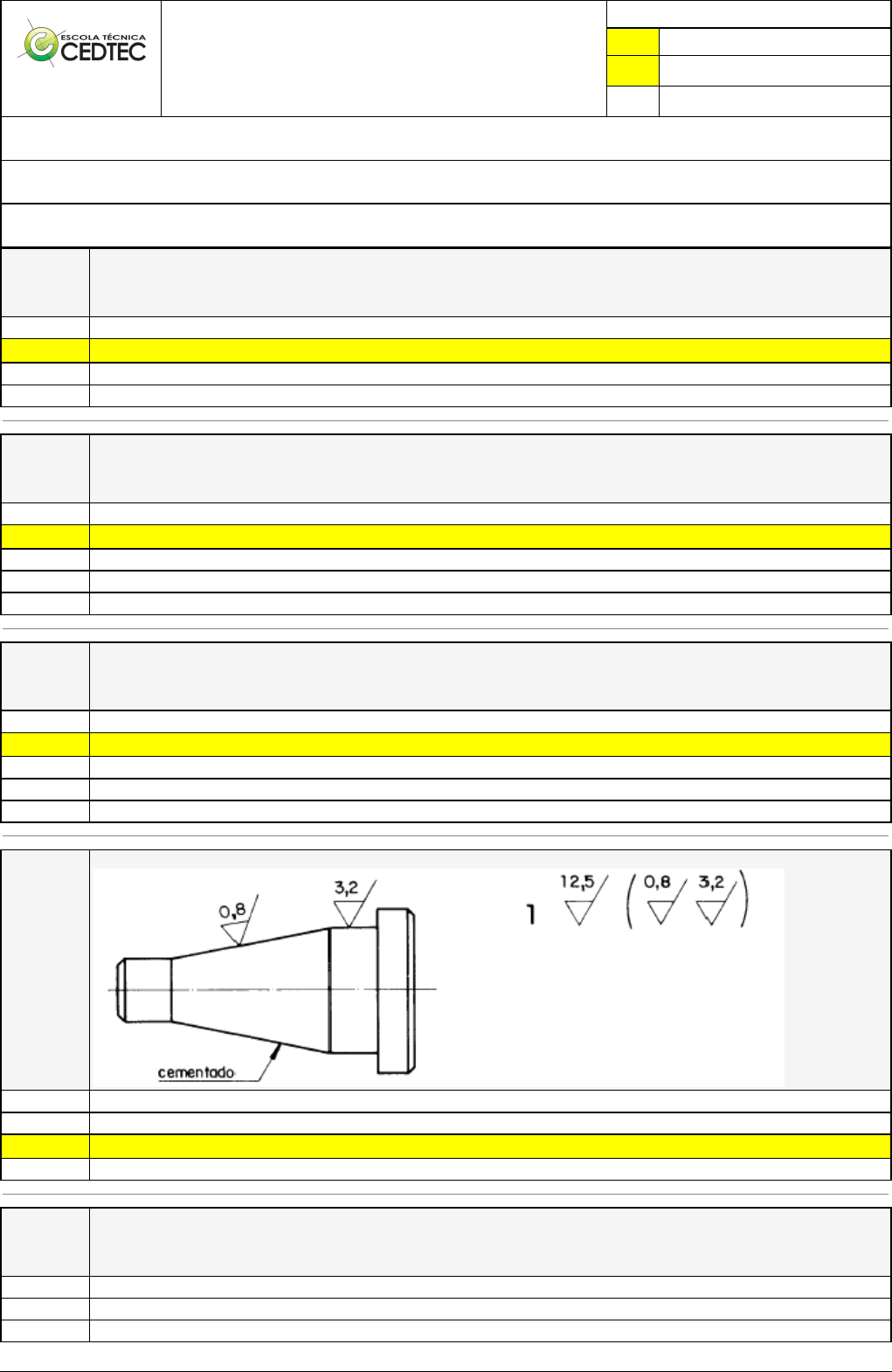 Pincel Atômico - 02/11/2024 17:14:13 1/7 EDIMARA GONÇALVES DE SOUZA Avaliação Presencial (EAD) Atividade finalizada em 02/09/2024 16:58:14 (2502183 / 1) LEGENDA Resposta correta na questão # Resposta correta - Questão Anulada X Resposta selecionada pelo Aluno Disciplina: DESENHO MECÂNICO [1087808] - Avaliação com 20 questões, com o peso total de 51,00 pontos [capítulos - Todos] Turma: Curso Técnico: Mecânica - Grupo: EAD - 04/24 - EAD MEC [120883] Aluno(a): 91603871 - EDIMARA GONÇALVES DE SOUZA - Respondeu 15 questões corretas, obtendo um total de 38,25 pontos como nota [350245_679 0] Questão 001 Assinale a alternativa que completa corretamente a afirmação: Corte total é aquele que ...................................... Divide a peça horizontalmente em qualquer parte. X Atinge a peça em toda sua extensão Atinge apenas as partes maciças da peça e uma parte dela. Mostra todos os elementos internos da peça [350245_526 2] Questão 002 “As medidas das peças podem variar, dentro de certos limites, para mais ou para menos, sem que isso prejudique a qualidade”. Esse conceito se refere à qual alternativa abaixo? Tolerância mecânica X Tolerância dimensional Tolerância incerta Tolerância superficial Tolerância geométrica [350245_679 1] Questão 003 Qual é o nome da linha que, no corte parcial, separa a parte cortada da parte não cortada? Linha de Chamada. X Linha de Ruptura. Linha de Contorno Visível. Linha de Contorno não Visível. Linha de Cota. [200_664] Questão 004 Analise o desenho técnico e marque a resposta correta. A classe de rugosidade que a maioria das superfícies da peça deverá receber será de 12,5 µm Toda a peça deverá ser cementada X A maioria das superfícies da peça deverá receber uma rugosidade Ra de 12,5 µm A menor rugosidade permitida é de 0,8 µm [350245_547 75] Questão 005 Na cotagem de chanfros, em qual situação as cotas podem ser posicionadas em uma única linha? Quando os lados formarem ângulos rasos. Quando os lados formarem ângulos agudos. Quando os lados formarem ângulos retos. Pincel Atômico - 02/11/2024 17:14:13 2/7 X Quando os dois lados forem iguais. Quando os dois lados forem diferentes. [350245_546 70] Questão 006 Conforme NBR10067, os cortes são classificados como sendo: Inteiro, meio corte, pleno e parcial. Inteiro, meio-corte, parcial e em desvio. X Total, meio-corte, parcial e em desvio. Inteiro, meio-corte, parcial e em curva. Inteiro, meio-corte, parcial e em curva. [350245_956 3] Questão 007 Assinale a alternativa que corresponde às vistas ortográficas representadas: Vista frontal, vista especial, vista especial Vista frontal, vista especial, vista inclinada Vista frontal, vista superior, vista especial X Vista frontal, vista especial, vista auxiliar [350245_547 78] Questão 008 Qual o sistema de cotagem foi aplicado na peça abaixo? X Cotagem aditiva Cotagem básica Cotagem em cadeia Cotagem isométrica Cotagem de raios [350245_527 38] Questão 009 Com base na figura a seguir, indique a localização do primeiro furo. 110 6 X 20 Pincel Atômico - 02/11/2024 17:14:13 3/7 14 22 [350245_955 1] Questão 010 Analise o desenho técnico e assinale as cotas básicas da peça: 40, 20, 11 22, 58, 11 58, 20, 40 40, 22, 35 X 22, 58, 35 [533_548] Questão 011 O rebite é formado por um corpo cilíndrico e uma cabeça. É fabricado em aço, alumínio, cobre ou latão. É usado para fixação permanente de duas ou mais peças. Sobre rebites é correto afirmar: Para a realização de furos de rebites, os furos são chanfrados. Para a realização de furos de rebites, os furos são puncionados, furados ou puncionados e alargados. O diâmetro do furo é menor que o corpo do rebite. X São hastes cilíndricas de aço ou de ferro forjado, com cabeça nas duas extremidades. Rebites são utilizados na execução de uniões de caráter permanente, feitas com chapas ou perfis laminados. Muitas vezes são colocados nos furos com o metal resfriado, de modo que a outra extremidade possa ser executada por pressão ou martelamento [363_659] Questão 012 Quando dois ou mais elementos são associados pode ser necessário determinar a orientação precisa de um em relação ao outro para assegurar o bom funcionamento do conjunto. Observe o desenho técnico abaixo e marque a afirmativa correta. A furação superior deverá estar inclinada, com 0,02 mm de tolerância da furação inferior A furação superior deverá estar retilínea, com 0,02 mm de tolerância da furação inferior A furação superior deverá estar perpendicular, com 0,02 mm de tolerância da furação inferior Pincel Atômico - 02/11/2024 17:14:13 4/7 A furação superior deverá estar concêntrica, com 0,02 mm de tolerância da furação inferior X A furação superior deverá estar paralela, com 0,02 mm de tolerância da furação inferior [350246_678 8] Questão 013 Observe o desenho técnico que foi cotado abaixo, observe os afastamentos, assinale com um X o tipo de ajuste observado: Ajuste com interferência Ajuste com folga Tolerância geométrica X Ajuste incerto Grau de Acabamento de Superfície [350246_548 05] Questão 014 Marque com um X a alternativa que indica desenhos com vistas auxiliares: X a e d b e c b e d a e c [350246_552 57] Questão 015 Qual é o tipo de ajuste do conjunto? X Incerto Com folga Com interferência Sem interferência [350246_956 4] Questão 016 Analise a perspectiva isométrica e marque a alternativa correta. As vistas ortográficas que lhe correspondem: Pincel Atômico - 02/11/2024 17:14:13 5/7 X [350247_956 6] Questão 017 Analise o desenho técnico e escreva “V” se a frase estiver certa e “F” se a frase estiver errada.Assinale a alternativa que indique a sequencia correta. I. ( ) A vista superior e a vista lateral esquerda são semelhantes; II. ( ) Pode ser feita a supressão de vista frontal ou superior, tanto faz; III.( ) Pode-se fazer a supressão de vista da vista lateral esquerda ou da vista superior; IV. 