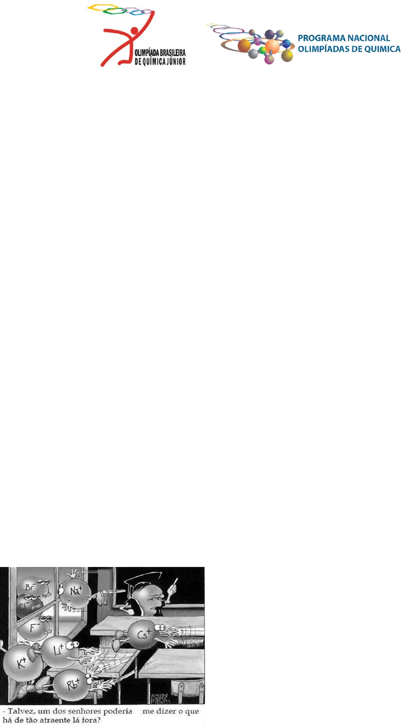 XVI OLIMPÍADA BRASILEIRA DE QUÍMICA JÚNIOR (OBQJr) 2023 / FASE II INSTRUÇÕES • A prova consta de vinte e três (23) questões, sendo vinte (20) questões do tipo múltipla escolha (máximo 40 pontos) e três (3) questões analítico-expositivas (máximo 60 pontos). • Você dispõe de três (3) horas para responder às questões deste exame. • Antes de iniciar a resolução da prova, preencha a ficha de identificação existente na folha de respostas de questões de múltipla escolha. Preencha os dados solicitados e escreva seu número de inscrição (informado pelo aplicador do exame) na folha de respostas de questões de múltipla escolha e nas folhas destinadas às questões analítico- expositivas. Não esqueça de fazer isso, pois esta é a única forma de identificá-lo(a). • Para responder às questões de múltipla escolha, identifique apenas uma única alternativa e marque a letra correspondente no gabarito existente na folha de respostas. QUESTÕES DE MÚLTIPLA ESCOLHA O texto a seguir será utilizado nas questões 1 a 3. No século XVII, em busca pela pedra filosofal, o alquimista alemão Hennig Brand destilou urina com salitre, álcool etílico e areia. Acidentalmente, Brand descobriu uma substância branca, maleável, luminosa e inflamável, composta por um novo elemento químico, cujo nome vem do grego "portador de luz". Atualmente, esse elemento é amplamente utilizado na indústria de fertilizantes para promover o crescimento das plantas. Fonte: https://www.crq4.org.br/historia/linhadotempo/ (Adaptado). Questão 1. Conforme Brand, os alquimistas buscavam um material que transformasse metais comuns em: a) oxigênio. b) urânio. c) ouro. d) ureia. Questão 2. Qual é elemento químico descrito no texto? a) Nitrogênio b) Cloro c) Bromo d) Fósforo Questão 3. O novo elemento químico era proveniente de uma mistura orgânica utilizada por Brand, a(o) a) urina. b) salitre. c) areia. d) álcool etílico. Questão 4. Observe a charge apresentada abaixo. Fonte:http://cienciascefet.blogspot.com/2012/04/ligacoes-quimica.html O “comportamento” das personagens da ilustração se refere à ideia de possibilidade de formação de: a) ligações de hidrogênio. b) ligações metálicas. c) dipolos permanentes. d) ligações iônicas. Questão 5. Um composto químico apresenta-se como um pó cristalino branco (em condições ambientes). Ele é solúvel em água e possui ponto de fusão de 993°C e ponto de ebulição de 1695°C. Quando usado em cremes dentais, ele inibe a desmineralização dos dentes, tornando-os menos suscetíveis à cárie. Sua representação química é: a) HF. b) NaF. c) HCℓ. d) NaCℓ. Questão 6. Misturar produtos de limpeza pode ser perigoso. Muitos produtos contêm substâncias químicas ativas que, quando combinadas, podem reagir e gerar gases tóxicos, vapores nocivos ou até explosões. Por exemplo, a mistura de água sanitária (NaOCℓ) e ácido muriático (HCℓ) leva à formação do gás tóxico: a) Cℓ2. b) N2. c) NaH. d) CHCℓ3 (clorofórmio). Questão 7. Vamos descobrir que metal é este? Imagine que você tenha uma proveta com água até a marca de 11,0 mL. Você coloca um pequeno pedaço de metal, que pesa 18,9 g, dentro da proveta, e a água sobe, deslocando-se até a marca de 18,0 mL. Usando essa variação na água é possível descobrir qual é esse metal misterioso. O metal que você colocou no copo é o: a) ferro (d = 7,9 g cm-3) b) urânio (d = 18,9 g cm-3) c) alumínio (d = 2,7 g cm-3) d) zinco (d = 7,0 g cm-3) Questão 8. Em uma das etapas do tratamento da água de abastecimento de grandes cidades, faz-se a água atravessar camadas espessas, e superpostas, de areia e cascalho. Com isso, retém-se a maioria da sujeira. Como é denominada essa etapa? a) Sedimentação b) Sifonação c) Flotação d) Filtração Questão 9. “Os estudantes ficaram impressionados com o experimento. Em poucos segundos, a pedra utilizada sublimou por completo, à temperatura ambiente!”. Um material com essa característica seria composto por a) CaCO3 b) CO2 c) NaHCO3 d) CaO O texto a seguir será utilizado nas questões 10 a 12. O iodo-131 é um isótopo radioativo do iodo (Z = 53; configuração eletrônica: [Kr] 4d10 5s2 5p5). No tratamento de câncer de tireoide, o iodo-131 administrado ao paciente é absorvido pelas células cancerosas dessa glândula. A ideia é aproveitar sua absorção seletiva pelas células da tireoide, uma vez que a glândula utiliza o iodo para produzir seus hormônios. Questão 10. O iodo-131 possui a) 131 elétrons. b) 78 nêutrons. c) 53 radiações. d) 75 prótons. Questão 11. Um elemento químico que pertence ao mesmo grupo do iodo, mas que não possui radioisótopo utilizado contra câncer de tireoide apresenta a seguinte distribuição eletrônica: a) 1s2 2s2 2p2 b) 1s2 2s2 2p5 c) [Kr] 5s2 4d10 5p4 d) [Kr] 4d10 5s1 Questão 12. Na utilização do iodo-131 no tratamento de câncer de tireoide, a radiação emitida a) produz prótons no iodo para matar as células cancerosas. b) retira prótons do iodo para proteger as células saudáveis. c) diminui o tamanho dos átomos de iodo, favorecendo sua absorção pelas células cancerosas. d) ajuda a destruir as células cancerosas, enquanto causa menos danos às células saudáveis. Questão 13. Dada a organização dos elementos na Tabela Periódica, duas informações que se pode obter diretamente dela são: a) número de massa e eletronegatividade. b) número de elétrons e eletronegatividade. c) massa atômica e número atômico. d) reatividade e densidade. Questão 14. O experimento de espalhamento das partículas alfa (α) envolveu disparar essas partículas contra uma fina folha de ouro. O esperado era que as partículas α passassem praticamente sem desvio. No entanto, para a surpresa dos cientistas, algumas delas foram refletidas em ângulos inesperados, inclusive superiores a 90°. Isso revelou a existência de um(a): a) átomo maciço e indivisível