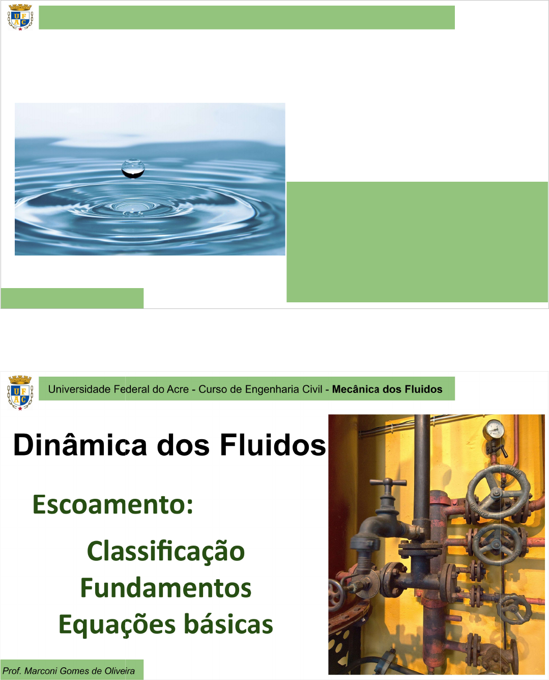 Universidade Federal do Acre - Curso de Engenharia Civil - Mecânica dos Fluidos Prof. Marconi Gomes de Oliveira MECÂNICA DOS FLUIDOS Curso de Engenharia Civil 3° Período 1 2024_1° Dinâmica dos Fluidos (1ªParte) Universidade Federal do Acre - Curso de Engenharia Civil - Mecânica dos Fluidos Prof. Marconi Gomes de Oliveira Dinâmica dos Fluidos Fundamentos - Escoamento 3 O cisalhamento (esforço cortante) deforma o fluido, dando-lhe a propriedade de escoar, ou seja, de mudar de forma, facilmente. Portanto, o escoamento é a fácil mudança de forma do fluido, sob a ação do esforço tangencial. É a chamada “FLUIDEZ” Universidade Federal do Acre - Curso de Engenharia Civil - Mecânica dos Fluidos Prof. Marconi Gomes de Oliveira Dinâmica dos Fluidos Fundamentos - Escoamento 5 Quanto à trajetória das partículas ... TurbulentoTransiçãoLaminar Universidade Federal do Acre - Curso de Engenharia Civil - Mecânica dos Fluidos Prof. Marconi Gomes de Oliveira Dinâmica dos Fluidos Fundamentos - Escoamento 9 Deduções do experimento de Reynolds: No escoamento em regime laminar: o corante não se mistura com o fluido, permanecendo na forma de um filete no centro do tubo; o escoamento processa-se sem provocar mistura transversal entre escoamento e o filete, observável de forma macroscópica; Como “não há mistura”, o escoamento aparenta ocorrer como se lâminas de fluido deslizassem umas sobre as outras. Universidade Federal do Acre - Curso de Engenharia Civil - Mecânica dos Fluidos Prof. Marconi Gomes de Oliveira Dinâmica dos Fluidos Fundamentos - Escoamento 10 Deduções do experimento de Reynolds: No escoamento em regime turbulento: O filete apresenta uma mistura transversal intensa, com dissipação rápida; São perceptíveis movimentos aleatórios no interior da massa fluida que provocam o deslocamento de moléculas entre as diferentes camadas do fluido (perceptíveis macroscopicamente); Há mistura intensa e movimentação desordenada. Universidade Federal do Acre - Curso de Engenharia Civil - Mecânica dos Fluidos Prof. Marconi Gomes de Oliveira Dinâmica dos Fluidos Fundamentos - Escoamento 11 Deduções do experimento de Reynolds: No escoamento em regime de transição: O filete apresenta alguma mistura com o fluido, deixando de ser retilíneo sofrendo ondulações; Essa situação ocorre para uma pequena gama de velocidades e liga o regime laminar a outra forma mais caótica de escoamento; Foi considerado um estágio intermediário entre o regime laminar e o turbulento. Universidade Federal do Acre - Curso de Engenharia Civil - Mecânica dos Fluidos Prof. Marconi Gomes de Oliveira Dinâmica dos Fluidos Fundamentos - Escoamento 12 Deduções do experimento de Reynolds: Número de Reynolds: Para escoamentos em condutos cilíndricos circulares, Reynolds determinou que há uma relação entre o diâmetro (D), a velocidade média (V) e a viscosidade cinemática (ʋ) Re = (V x D) / Ʋ Re 4000 - Regime Turbulento Universidade Federal do Acre - Curso de Engenharia Civil - Mecânica dos Fluidos Prof. Marconi Gomes de Oliveira Dinâmica dos Fluidos Escoamento - Classificação Uniforme: Todos os pontos de uma mesma trajetória possuem a mesma velocidade. Variado: Os pontos de uma mesma trajetória não possuem a mesma velocidade. Permanente: Todas as propriedades e grandezas características do escoamento são constantes no tempo; Não Permanente: Quando ao menos uma grandeza ou propriedade do fluido muda no decorrer do escoamento; 13 Universidade Federal do Acre - Curso de Engenharia Civil - Mecânica dos Fluidos Prof. Marconi Gomes de Oliveira Dinâmica dos Fluidos Escoamento - Classificação 14 Escoamento Permanente e Uniforme Escoamento Variável Universidade Federal do Acre - Curso de Engenharia Civil - Mecânica dos Fluidos Prof. Marconi Gomes de Oliveira Dinâmica dos Fluidos No interior de um fluido em escoamento existem infinitas linhas de corrente definidas por suas partículas fluidas A superfície constituída pelas linhas de corrente formada no interior do fluido é denominada de tubo de corrente ou veia líquida 16 Tubo de Corrente Universidade Federal do Acre - Curso de Engenharia Civil - Mecânica dos Fluidos Prof. Marconi Gomes de Oliveira Dinâmica dos Fluidos Seção de escoamento: É a seção transversal (corte transversal) do tubo de corrente, normal em cada um de seus pontos, às linhas de corrente internas ao tubo de corrente. 17 Seção Transversal Universidade Federal do Acre - Curso de Engenharia Civil - Mecânica dos Fluidos Prof. Marconi Gomes de Oliveira Dinâmica dos Fluidos Seção constante 18 Seções de Escoamento Seção convergente Seção divergente Universidade Federal do Acre - Curso de Engenharia Civil - Mecânica dos Fluidos Prof. Marconi Gomes de Oliveira Dinâmica dos Fluidos 20 Vazão em Volume Poço profundo com vazão de 300 m³/h Poço 150 m de aprofundamento: vazão de 3m³/h Universidade Federal do Acre - Curso de Engenharia Civil - Mecânica dos Fluidos Prof. Marconi Gomes de Oliveira EXERCÍCIOS EXERCÍCIO 1: Um tubo de diâmetro igual a 800 mm transporta um líquido sob a velocidade média de 3,5 m/s. Qual a vazão em litros por segundo? (Aplicação da Equação da Continuidade) EXERCÍCIO 2: Uma tubulação conduz 2.400 litros/s, de um fluido líquido, em regime permanente. Determinar seu diâmetro para que a velocidade do escoamento não ultrapasse 2 m/s. 23 EXERCÍCIO 3: Em certo projeto estabelece-se, como velocidade média do líquido, o valor máximo de 3 m/s. Optando-se por tubos de diâmetro igual a 600 mm, qual será a vazão máxima em m³/s? Universidade Federal do Acre - Curso de Engenharia Civil - Mecânica dos Fluidos Prof. Marconi Gomes de Oliveira Dinâmica dos Fluidos 24 Perda de Carga A experiência mostra que, no escoamento dos fluidos uma parte de sua energia se dissipa em forma de calor e nos turbilhões que se formam na corrente fluida. Uma das resistências é causada pela viscosidade do fluido, 