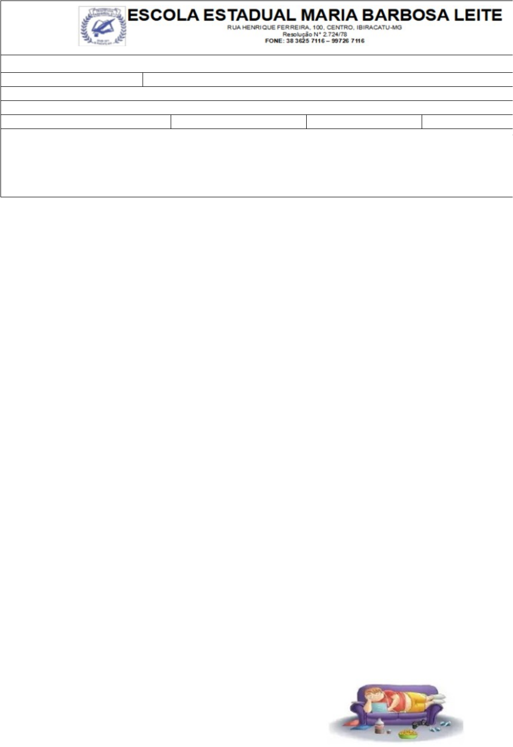 AVALIAÇÃO DO 1º BIMESTRE 2024 COMPONENTE CURRICULAR: EDUCAÇÃO FÍSICA PROFESSOR(A): Daniel Almeida Ávila ALUNO (A): TURMA: 2º ANO ENSINO MÉDIO DATA:____/______/ _____ VALOR: 15 PONTOS NOTA: HABILIDADES:(EM13LGG303) Debater questões polêmicas de relevância social, analisando diferentes argumentos e opiniões, para formular, negociar e sustentar posições, frente à análise de perspectivas distintas. (EM13LGG403) Fazer uso do inglês como língua de comunicação global, levando em conta a multiplicidade e variedade de usos, usuários e funções dessa língua no mundo contemporâneo . Leia e responda : Atividades Físicas devem ser praticadas com moderação e cuidados! Não tem como abordar o tema “qualidade de vida” sem citar a prática de exercícios físicos. Um dos pilares da boa saúde e do bem-estar é o cuidado como corpo, por meio de atividades que aliam estética a saúde. E o melhor! Você não precisa passar o dia dentro de uma academia para ter uma vida mais saudável. Há várias maneiras e lugares para se cuidar. “Caminhar, correr, andar de bicicleta ou nadar são atividades que dão um resultado bastante satisfatório, principalmente na parte cardiorrespiratória, além de queimar gordura corporal e de movimentar todo o corpo”, explica o profissional de educação física Florindo Fontana, de são José dos Campos. Os benefícios dos “esportistas” são diversos. Entre os benefícios destacados por Fontana estão a disposição corporal da hipertensão e da obesidade, a melhora na oxigenação das células e da capacidade vascular, ou seja, o coração bate mais devagar, porém com mais intensidade. “Com uma batida o coração expande uma quantidade de sangue muito maior do que um coração de um a pessoa sedentária” ressalta. CUIDADOS ! – Apesar dos vários benefícios, não pense que é só você sair por aí correndo ou nadando que tudo vai bem. Alguns cuidados são importantíssimos antes de se começar uma atividade física. ‘’O primeiro passo para quem quer iniciar uma atividade é procurar um profissional da área médica e realizar exames para verificar se existe algum tipo de anormalidade nas funções corporais’’ recomenda Fontana. O ideal é realizar o exercício de duas a três vezes por semana , com baixa intensidade. Geralmente , a caminhada é uma boa pedida , pois além de trabalhar o músculo cardíaco , ajuda na queima de gordura e não é uma atividade pesada. Questão 01: Assinale a alternativa em que todas as opções são benefícios físicos que podem ser obtidos através de exercícios físicos: a) Diminuição da massa muscular e aumento da gordura corporal. b)Aumento da flexibilidade e auxílio no combate à obesidade. c)Diminuição da flexibilidade e contribuição para a obesidade. d) Ajuda na queima de gordura, porém é uma atividade pesada. Leia. SEDENTARISMO: CAUSAS E CONSEQUÊNCIAS O sedentarismo é uma situação em que a pessoa não pratica qualquer tipo de atividade física regularmente, além de permanecer muito tempo sentado, não ter hábitos alimentares saudáveis e não ter disposição para realizar atividades simples do dia-a-dia, o que tem influência direta na saúde e bem-estar da pessoa, já que aumenta o risco de doenças cardiovasculares, diabetes e perda de massa muscular. De acordo com seus conhecimentos a respeito do Sedentarismo, responda às questões abaixo. Questão 02: Pode-se definir sedentarismo como sendo um: a) comportamento de uma pessoa que tem hábitos alimentares incorretos. b) comportamento de alguém que se mantém fisicamente ativo. c) comportamento de alguém que se mantém fisicamente inativo. d) comportamento de uma pessoa que apresenta da boa saúde e o cuidado com o corpo. Questão 03: Podemos observar que o sedentarismo é um comportamento cada vez mais comum. Isso se deve, em parte: a) ao conforto que a modernidade nos oferece: elevadores, controle remoto, entre outros. b) porque as pessoas trabalham muito e vivem sem tempo de frequentar uma academia. c) porque as pessoas estão ficando doentes, pois preferem alimentos industrializados. d) porque as pessoas praticam a caminhada diariamente. Questão 04: Cada modalidade esportiva detém de diversos elementos técnicos. Estes são necessários para que o atleta possa atingir o máximo desempenho possível durante as práticas esportivas. Associe a 2ª coluna de modalidades esportivas com a 1ª coluna dos elementos técnicos. (1) Manchete, Bloqueio, Cortada e Saque. (2) Recepção , Drible, Chute e Finta. (3) Arremesso, Rebote, Lance Livre e Bandeja. (4) Empunhadura , Recepção, Passe e Drible. ( ) futebol ( ) vôlei ( ) handebol ( ) basquete A ordem que preenche corretamente a 2º coluna é : a) 2,4, 1,3 b) 4,2,3,1 c) 2,1,4,3 d) 2,4,3,1 image1.png image2.png