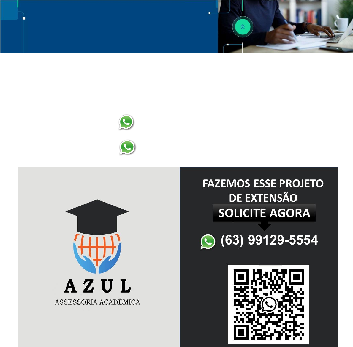 FAZEMOS ESSE PROJETO SOLICITE AGORA (63) 99129-5554 (63) 99129-5554 Atividade de Extensão 2024.2 Cursos Contemplados A proposta se destina a todos os cursos de Licenciaturas, Bacharelados e Tecnológicos. Tema Agir Local e pensar global: atuação multidisciplinar. Grande Área A ação de extensão segue como base os Objetivos de Desenvolvimento Sustentável (ODS), nº 3 e 11, que correspondem a área de Saúde e Bem-estar e Cidades e Comunidades Sustentáveis. Proposta de Atividade Áreas temáticas • Ambiente Seguro para Comunidades Idosas; • Educação Alimentar e Reaproveitamento de Alimentos; • Educação no uso Correto e no Descarte de Medicamentos e Insumos hospitalares; • Educação no Descarte de Exames de Imagem; • Cidade Segura e Autossuficiente (cidade construída para diversidade, inclusão e igualdade) para todas as faixas etárias; • Controle das Arboviroses (Dengue, Chikungunha e Zika, transmitidas pelo mosquito, Aedes aegypti); • Políticas Públicas vigentes para melhoria da qualidade de vida da pessoa humana e animal; • Identificação de estratégias de economia para comunidades sustentáveis. Como escolher a atividade? Você deverá escolher a temática para a realização da atividade de extensão de acordo com a área do seu curso. Por exemplo, se você é estudante do curso de Biomedicina ou Farmácia, poderá realizar uma ação de extensão na temática de Educação no uso Correto e no Descarte de Medicamentos e Insumos hospitalares. Mas se você é do curso de Engenharia, poderá realizar uma ação na temática Cidade Segura e Autossuficiente (cidade construída para diversidade, inclusão e igualdade) para todas as faixas etárias. O Quadro a seguir apresenta as áreas temáticas, os objetivos de cada uma delas, os exemplos de atividades de extensão que podem ser realizadas, assim como a área do curso que é aderente a cada temática. IMPORTANTE: apresentamos exemplos de atividades que podem ser realizadas, mas orientamos que não fiquem limitados(as) aos exemplos e criem suas propostas com base em cada referência Atividades de Extensão Temática (cada aluno deverá desenvolver apenas uma das temáticas da área do seu curso) Ambiente Seguro para Idosos (ODS 11) Áreas contempladas: Ciências Exatas, Ciências da Saúde, Ciências Humanas e Licenciaturas, Ciências Sociais Aplicadas e Engenharias e Exatas. Objetivos: criar espaços físicos e sociais que atendam às necessidades especificas da população idosa e que os permitam a ter uma participação ativa na sociedade. Essa ação implica desde infraestrutura acessível (como calçadas sem obstáculos, transportes públicos adaptados) até políticas e programas que protejam os idosos contra abusos, negligências e violência. Exemplos: • Criar ações de segurança, para proteger os idosos contra abusos físicos, emocionais e financeiros. Nesse tópico, podem ser criadas estratégias para conscientização da população idosa, a partir de panfletos informativos, de palestras, criação de páginas em redes sociais que tenham esse objetivo, entre outros. • Criar ações de inclusão social, para evitar o isolamento e grantir a oportunidade de interação e engajamento em sociedade. Podem ser realizadas atividades de leitura, de dança, de oficinas artisticas, dentre outras, que tenham como foco a inclusão social da população idosa. • Criar ações que garantam o acesso aos cuidados de saúde adequados e programas de bem estar. Uma opção dentro dessa temática, consiste em propor uma atividade, que pode ser por meio de palestra, panfleto informativo ou outro meio de comunicação, para conscientizar a população idosa sobre seus direitos no cuidado à saúde e sua importância, sobre a importância de um estilo de vida ativo e saudável para o envelhecimento, dentre outros. Proposta de Atividade Educação Alimentar e Reaproveitamento de Alimentos (ODS 3) Áreas contempladas: Ciências Agrárias, Ciências da Saúde, Ciências Biológicas, Ciências Humanas, Licenciaturas e Ciências Sociais Aplicadas. Objetivos: essa temática está intimamente ligada à promoção de hábitos alimentares saudáveis e à redução do desperdício de alimentos, contribuindo assim para melhorar a saúde da população. Exemplos: • Criar ações de conscientização da população sobre a importância da educação alimentar, por meio de informativos. • Realizar palestras para informar a população sobre a importância da alimentação saudável na prevenção de doenças crônicas. • Realizar oficinas para ensinar práticas de reaproveitamento de alimentos. Educação no Uso Correto e no Descarte de Medicamentos e Insumos Hospitalares (ODS 3) Áreas contempladas: Ciências da Saúde, Ciências Humanas e Licenciaturas, Ciências Biológicas e Ciências Sociais Aplicadas. Objetivos: promover práticas seguras e eficazes de uso de medicamentos, evitando por exemplo erros de administração que possam prejudicar a saúde dos pacientes. Exemplos: • Criar informativos para serem disponibilizados em farmácias, contendo informações e orientações sobre a utilização correta de medicamentos e os possíveis danos do uso incorreto. • Realizar campanhas de descarte de medicamentos e insumos hospitalares, e dar o destino adequado a este material. • Realizar palestras com profissionais de saúde para conscientizar sobre o descarte correto dos insumos hospitalares. Proposta de Atividade Educação no Descarte de Exames de Imagens (ODS 3) Áreas contempladas: Ciências da Saúde, Ciências Humanas e Licenciaturas, Ciências Biológicas, Ciências Agrárias, Ciências Sociais Aplicadas. Objetivos: direcionar a gestão correta dos resíduos de exames de imagem, a fim de prevenir danos à saúde pública e ao meio ambiente. Muitos exames contém substâncias químicas tóxicas e perigosas, tais como a prata, que podem contaminar o solo e a água se não forem descartados de forma adequada.