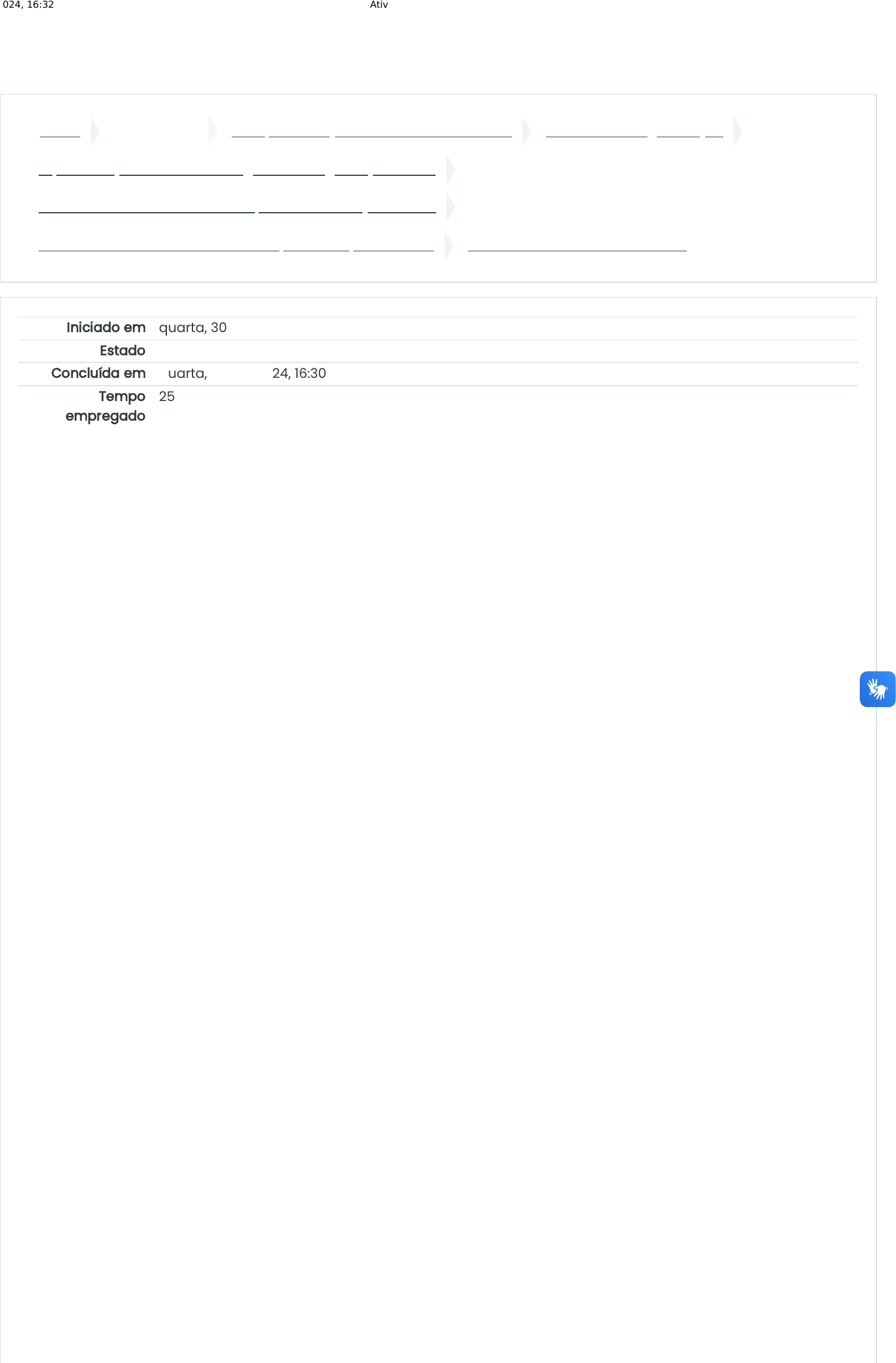Painel Meus cursos Campus Avançado de Guarantã do Norte Cursos de Pós-graduação Especialização em Gestão Integrada de Segurança Pública Filosofia dos Direitos Humanos Aplicados à Atuação Policial MÓDULO DE ESTUDOS 5 - Novas competências profissionais Atividade Avaliativa do Módulo 5 Iniciado em quarta, 30 out 2024, 16:04 Estado Finalizada Concluída em quarta, 30 out 2024, 16:30 Tempo empregado 25 minutos 24 segundos 30/10/2024, 16:32 Atividade Avaliativa do Módulo 5: Revisão da tentativa https://ava.ifmt.edu.br/mod/quiz/review.php?attempt=306612&cmid=732568 1/5 https://ava.ifmt.edu.br/my/ https://ava.ifmt.edu.br/course/index.php?categoryid=538 https://ava.ifmt.edu.br/course/index.php?categoryid=8185 https://ava.ifmt.edu.br/course/index.php?categoryid=8186 https://ava.ifmt.edu.br/course/view.php?id=50890 https://ava.ifmt.edu.br/course/view.php?id=50890#section-8 https://ava.ifmt.edu.br/mod/quiz/view.php?id=732568 Questão 1 Completo Vale 1,00 ponto(s). Reflita sobre as suas “habilidades pessoais” para verificar se você é um empregado “flexível, adaptável e geograficamente móvel”, capaz de se ajustar às necessidades das empresas que hoje buscam trabalhadores com essas habilidades. Seja honesto com você mesmo e, caso chegue à conclusão que não possui aquelas “habilidades pessoais”, demonstre como poderá adquiri-las. Acredito que sim. Meu serviço acaba exigindo de certo modo um vasto repertório de respostas, pois a natureza das ocorrências exigem por vezes intervenções não conhecidas ou pré estabelecidas. Necessariamente é preciso saber o que fazer imediatamente na situação haja vista que o serviço operacional por vezes não vai trazer essa flexibilidade da possibilidade de consulta hierárquica de superiores. E obviamente em consequência da decisão anteriormente explicitada eu tenho que me responsabilizar por toda e qualquer consequência que dela decorrer. Resposta pessoal. 30/10/2024, 16:32 Atividade Avaliativa do Módulo 5: Revisão da tentativa https://ava.ifmt.edu.br/mod/quiz/review.php?attempt=306612&cmid=732568 2/5 Questão 2 Completo Vale 1,00 ponto(s). Quais são as diferenças entre os conceitos de qualificação profissional e competência profissional? A qualificação pode ser considerada obtida através da prática das tarefas rotineiras que implica um processo de aprendizagem pelo qual as qualificações são adquiridas por meio da experiência; ainda quanto os diferentes graus de consciência conforme a atividade a executar e a necessidade de os trabalhadores desenvolverem qualificações de cooperação, dada a natureza coletiva do processo de trabalho. O conceito de competência, concentra-se nas qualidades intelectuais, mentais, culturais e sociomotivacionais do trabalhado e que lhe permitem a compreensão da totalidade do processo de trabalho, a versatilidade em várias tarefas, a capacidade de tomar decisões rápidas e corretas e a participação em equipes multifuncionais. O conceito de competência concentra-se nas qualidades intelectuais, mentais, culturais e sociomotivacionais do trabalhador e que lhe permitem a compreensão da totalidade do processo de trabalho, a versatilidade em várias tarefas, a capacidade de tomar decisões rápidas e corretas e a participação em equipes multifuncionais. Já o conceito de qualificação profissional se relaciona ao conjunto de habilidades técnicas específicas para o desenvolvimento de uma atividade profissional. Neste as habilidades são independentes do processo, pois o conhecimento da atividade que está sendo realizada é suficiente, enquanto naquele faz-se necessário outras habilidades externas ao processo para que se tenha a compreensão de todas as etapas e as possíveis formas de se resolver qualquer impasse que possa acontecer, sem causar – ou causar o menor possível – prejuízo à empresa. 30/10/2024, 16:32 Atividade Avaliativa do Módulo 5: Revisão da tentativa https://ava.ifmt.edu.br/mod/quiz/review.php?attempt=306612&cmid=732568 3/5 Questão 3 Completo Vale 1,00 ponto(s). Você acredita que a mais moderna organização do processo de trabalho pode fazer do trabalho uma atividade mais prazerosa? Por quê? Não acredito, pois existe uma dificuldade para corresponder às novas exigências dos mercados de trabalho que impõem um enorme sacrifício e sofrimento para trabalhadores à procura de um emprego, ou mesmo preocupados com a manutenção de seus empregos, sem que tenham tido a oportunidade de adquirir os requisitos que hoje definem a competência. Cada vez mais exige-se do trabalhador condições que na maioria das vezes a sociedade como um todo não oportunizou para que este trabalhador chegasse aquele nível de qualificação e competência que vem sendo exigido pelo mercado de trabalho. Resposta pessoal. ATIVIDADE ANTERIOR ◄ Novas competências profissionais Seguir para... PRÓXIMA ATIVIDADE ATIVIDADE AVALIATIVA DA DISCIPLINA ► 30/10/2024, 16:32 Atividade Avaliativa do Módulo 5: Revisão da tentativa https://ava.ifmt.edu.br/mod/quiz/review.php?attempt=306612&cmid=732568 4/5 https://ava.ifmt.edu.br/mod/url/view.php?id=732567&forceview=1 https://ava.ifmt.edu.br/mod/quiz/view.php?id=732571&forceview=1 Manter contato Prezado Estudante. Em caso de dúvida ou alguma dificuldade de acesso à plataforma, procure o Professor da sua disciplina ou a Coordenação do seu Curso. 30/10/2024, 16:32 Atividade Avaliativa do Módulo 5: Revisão da tentativa https://ava.ifmt.edu.br/mod/quiz/review.php?attempt=306612&cmid=732568 5/5