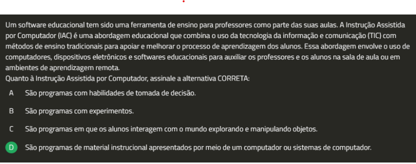 Qual tipo de pergunta permite selecionar apenas uma opção entre várias? Questão 8Resposta a. Múltipla escolha b. Resposta curta c. Lista suspensa d. C