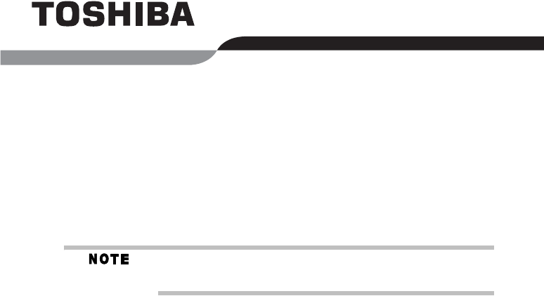 RG 5.375 x 8.375 ver 2.3.3 Tecra® A8 Series Resource Guide Keep this guide in a convenient place to access important information about your computer. If you need assistance: ❖ Toshiba’s Support Web site pcsupport.toshiba.com ❖ Toshiba Global Support Centre Calling within the United States (800) 457-7777 Calling from outside the United States (949) 859-4273 Please fill in for your reference and future use: Model name______________________________________ Part number______________________________________ Serial number____________________________________ GMA500387010.book Page 1 Thursday, December 28, 2006 12:48 PM 2 RG 5.375 x 8.375 ver 2.3.2 Contents Introduction ...................................................................................... 19 Setting up your computer and getting started ................................... 21 Adding memory (optional) ................................................................ 25 Your computer’s TFT display ............................................................. 31 Inserting a PC Card ........................................................................... 31 Removing a PC Card ......................................................................... 32 Learning the basics ........................................................................... 32 Using the Toshiba Dual Pointing Device ............................................ 33 Using the optical drive ...................................................................... 35 Moving the computer ........................................................................ 37 Mobile computing ............................................................................. 38 Taking care of your battery ............................................................... 42 If something goes wrong .................................................................. 44 If you need further assistance ........................................................... 48 Power cord/cable connectors ........................................................... 49 Features and specifications ............................................................... 49 Index.................................................................................................. 50 GMA500387010.book Page 2 Thursday, December 28, 2006 12:48 PM 3 5.375 x 8.375 ver 3.1 Handling the cord on this product will expose you to lead, a chemical known to the State of California to cause birth defects or other reproductive harm. Wash hands after handling. Model: Tecra® A8 Series Recordable and/or ReWritable Drive(s) and Associated Software Warranty The computer system you purchased may include Recordable and/or ReWritable optical media drive(s) and associated software, among the most advanced data storage technologies available. As with any new technology, you must read and follow all set-up and usage instructions in the applicable user guides and/or manuals enclosed or provided electronically. If you fail to do so, this product may not function properly and you may lose data or suffer other damage. TOSHIBA AMERICA INFORMATION SYSTEMS, INC. (“TOSHIBA”), ITS AFFILIATES AND SUPPLIERS DO NOT WARRANT THAT OPERATION OF THE PRODUCT WILL BE UNINTERRUPTED OR ERROR FREE. YOU AGREE THAT TOSHIBA, ITS AFFILIATES AND SUPPLIERS SHALL HAVE NO RESPONSIBILITY FOR DAMAGE TO OR LOSS OF ANY BUSINESS, PROFITS, PROGRAMS, DATA, NETWORK SYSTEMS OR REMOVABLE STORAGE MEDIA ARISING OUT OF OR RESULTING FROM THE USE OF THE PRODUCT, EVEN IF ADVISED OF THE POSSIBILITY THEREOF. Protection of Stored Data For your important data, please make periodic back-up copies of all the data stored on the hard disk or other storage devices as a precaution against possible failures, alteration, or loss of the data. IF YOUR DATA IS ALTERED OR LOST DUE TO ANY TROUBLE, FAILURE OR MALFUNCTION OF THE HARD DISK DRIVE OR OTHER STORAGE DEVICES AND THE DATA CANNOT BE RECOVERED, TOSHIBA SHALL NOT BE LIABLE FOR ANY DAMAGE OR LOSS OF DATA, OR ANY OTHER DAMAGE RESULTING THEREFROM. WHEN COPYING OR TRANSFERRING YOUR DATA, PLEASE BE SURE TO CONFIRM WHETHER THE DATA HAS BEEN SUCCESSFULLY COPIED OR TRANSFERRED. TOSHIBA DISCLAIMS ANY LIABILITY FOR THE FAILURE TO COPY OR TRANSFER THE DATA CORRECTLY. Critical Applications The computer you have purchased is not designed for any “critical applications.” “Critical applications” means life support systems, medical applications, connections to implanted medical devices, commercial GMA500387010.book Page 3 Thursday, December 28, 2006 12:48 PM 4 5.375 x 8.375 ver 3.1 transportation, nuclear facilities or systems or any other applications where product failure could lead to injury to persons or loss of life or catastrophic property damage. ACCORDINGLY, TOSHIBA, ITS AFFILIATES AND SUPPLIERS DISCLAIM ANY AND ALL LIABILITY ARISING OUT OF THE USE OF THE COMPUTER PRODUCTS IN ANY CRITICAL APPLICATIONS. IF YOU USE THE COMPUTER PRODUCTS IN A CRITICAL APPLICATION, YOU, AND NOT TOSHIBA, ASSUME FULL RESPONSIBILITY FOR SUCH USE. EU Declaration of Conformity TOSHIBA declares, that this product conforms to the following Standards: This product is carrying the CE-Mark in accordance with the related European Directives. Responsible for CE-Marking is TOSHIBA Europe GmbH, Hammfelddamm 8, 41460 Neuss, Germany. VCCI Class B Information Modem Warning Notice Conformity Statement The equipment has been approved to [Commission Decision “CTR-21”] for pan-European single terminal connection to the Public Switched Telephone Network (PSTN). However, due to differences between the individual PSTNs provided in different countries/regions the approval does not, of itself, give an unconditional assurance of successful operation on every PSTN network termination point. In the event of problems, you should contact your equipment supplier in the first instance. The above Caution information applies to products that operate with an 802.11a device. Supplementary Information: 