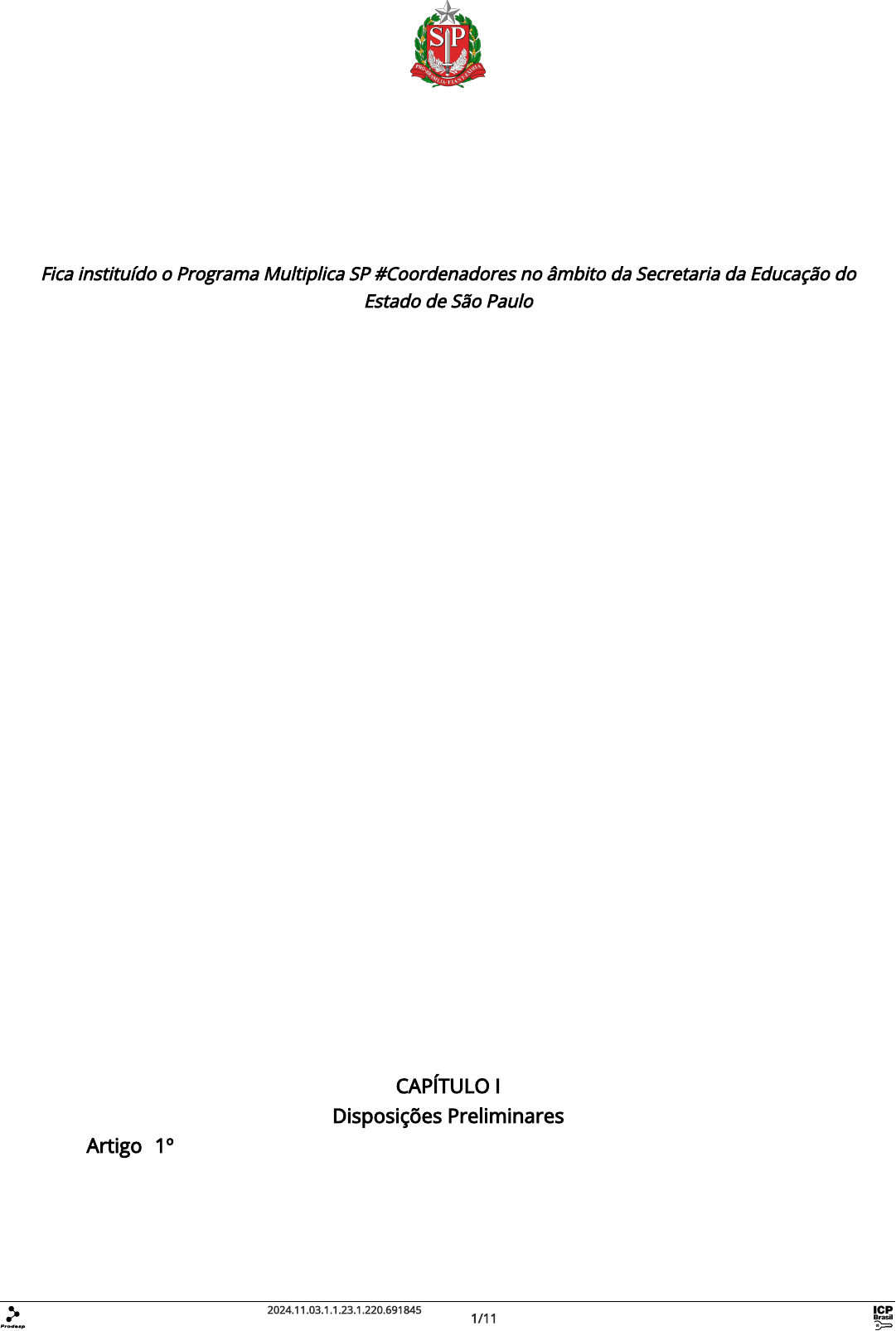 DIÁRIO OFICIAL DO ESTADO DE SÃO PAULO Publicado na Edição de 4 de novembro de 2024 | Caderno Executivo | Seção Atos Normativos RESOLUÇÃO SEDUC Nº 91, DE 1 DE NOVEMBRO DE 2024 Fica instituído o Programa Multiplica SP #Coordenadores no âmbito da Secretaria da Educação do Estado de São Paulo O Secretário da Educação, à vista do que lhe representou a Coordenação da Escola de Formação e Aperfeiçoamento dos Profissionais da Educação “Paulo Renato Costa Souza” (EFAPE) e considerando: – A Lei nº 11.498, de 15 de outubro de 2003, atualizada pela Lei nº 17.449, de 29 de outubro de 2021, a qual institui Programas de Formação Continuada destinados aos integrantes do Quadro do Magistério da Secretaria da Educação; - A competência da EFAPE em qualificar os Profissionais da Educação nas redes municipal e estadual de São Paulo, para o exercício do magistério e da gestão do ensino básico, desenvolvendo estudos, planejamentos, programas, avaliação e gerenciamento da execução de ações de formação, aperfeiçoamento e educação continuada, nos termos do Decreto nº 64.187, de 17 de abril de 2019; – O Decreto nº 57.487, de 4 de novembro de 2011, atualizado pelo Decreto nº 62.109, de 15 de julho de 2016, que dispõe sobre o pagamento de horas-aula nos cursos da Escola de Formação e Aperfeiçoamento dos Professores do Estado de São Paulo “Paulo Renato Costa Souza” – EFAPE, da Secretaria da Educação, nas atividades especificadas, e dá providências correlatas; - A Resolução SEDUC nº 53, de 29-06-2022, que dispõe sobre a função de Coordenador de Gestão Pedagógica; - A Resolução SEDUC nº 71, de 08-12-2023 que dispõe sobre a gestão de pessoas dos integrantes do Quadro do Magistério nas escolas estaduais do Programa Ensino Integral – PEI; – O aprimoramento de práticas pedagógicas e a formação colaborativa entre Coordenadores de Gestão Pedagógica / Coordenador de Gestão Pedagógica Geral como apoio na melhoria das aprendizagens dos estudantes da rede pública estadual paulista; RESOLVE: CAPÍTULO I Disposições Preliminares Artigo 1º – Fica instituído no âmbito da Secretaria da Educação, o Programa Multiplica SP #Coordenadores, com a finalidade de desenvolver as competências e habilidades relacionadas à prática de liderança e gestão pedagógica, por meio da formação entre pares. Este documento pode ser verificado pelo código 2024.11.03.1.1.23.1.220.691845 em https://www.doe.sp.gov.br/autenticidade 1/11 Documento assinado digitalmente conforme MP nº 2.200-2/2001, que institui a Infraestrutura de Chaves Públicas (ICP-Brasil). Artigo 2º – O Programa Multiplica SP #Coordenadores destina-se, exclusivamente, aos profissionais designados na função de Coordenador de Gestão Pedagógica / Coordenador de Gestão Pedagógica Geral que atuam nas unidades escolares da rede pública estadual paulista. Artigo 3º – São objetivos do Programa Multiplica SP #Coordenadores: I – Promover um conjunto de ações formativas de trabalho colaborativo, propiciando a troca de experiência e compartilhamento de saberes entre pares; II – Oferecer edições contínuas para o aprimoramento das práticas de liderança e gestão pedagógica, com vistas a melhoria das ações pedagógicas desenvolvidas na escola, impactando na aprendizagem do estudante; III - Ofertar formação continuada em serviço, homologada e certificada pela EFAPE. Artigo 4º – O conjunto de ações formativas de que trata o inciso I do artigo 3º, desta Resolução, dar-se-á em dois níveis: I - Ação formativa para os Coordenadores Multiplicadores, a qual será mediada pela equipe EFAPE Multiplica; II - Ação formativa para os Coordenadores Cursistas, a qual será mediada pelos Coordenadores Multiplicadores; Parágrafo único - As ações descritas nos incisos deste artigo, dar-se-ão na seguinte conformidade: 1. Por meio de pautas formativas contínuas, sequenciais e com possibilidade de desdobramento, conforme a temática abordada; 2. No formato remoto, de forma síncrona, podendo ocorrer encontros presenciais, para os quais os participantes serão convocados; 3. Os participantes do Programa poderão ser agrupados conforme o regime da escola de sua atuação, sendo essas pertencentes ao Programa Ensino Integral - PEI ou as escolas estaduais de tempo parcial. CAPÍTULO II Atores envolvidos e respectivas atribuições Artigo 5º – O Programa Multiplica SP #Coordenadores, coordenado pela EFAPE, contará com a participação dos seguintes profissionais: I – EFAPE Multiplica: profissional que atua na Escola de Formação e Aperfeiçoamento dos Profissionais da Educação, responsável pela formação, orientação, mediação e acompanhamento das ações realizadas pelo Coordenador Multiplicador; II - Supervisor Embaixador: profissional que atua no cargo/função de Supervisor de Ensino ou Supervisor Educacional, em exercício na Diretoria de Ensino, responsável por monitorar, acompanhar e apoiar o Coordenador Multiplicador além de realizar o alinhamento do status do Programa junto aos demais membros da Diretoria de Ensino; III - Coordenador Multiplicador: profissional que atua na função de Coordenador de Gestão Pedagógica/Coordenador de Gestão Pedagógica Geral, responsável pela formação, orientação, mediação e acompanhamento das ações realizadas pelo Coordenador Cursista; IV - Coordenador Cursista: profissional que atua na função de Coordenador de Gestão Pedagógica/Coordenador de Gestão Pedagógica Geral, participante das formações Este documento pode ser verificado pelo código 2024.11.03.1.1.23.1.220.691845 em https://www.doe.sp.gov.br/autenticidade 2/11 Documento assinado digitalmente conforme MP nº 2.200-2/2001, que institui a Infraestrutura de Chaves Públicas (ICP-Brasil). mediadas pelo Coordenador Multiplicador; V - Coordenador Cursista Líder: Coordenador Cursista indicado pela Diretoria de Ensino , na figura do 