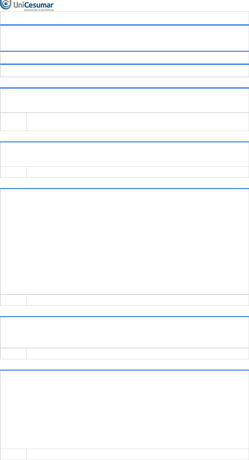 14/03/24, 14:38 Unicesumar - Ensino a Distância about:blank 1/3 Protocolo de Finalização Nº 000068757155 O aluno ZELIA MARIA ARAÚJO com RA 23032851-5 finalizou a atividade PROJETO DE ENSINO - INTELIGÊNCIA EMOCIONAL - 51/2024 em 14/03/2024 14:38:06 PROJETO DE ENSINO - INTELIGÊNCIA EMOCIONAL - 51/2024 Período:19/02/2024 08:00 a 19/04/2024 23:59 (Horário de Brasília) Status:ABERTO 1ª QUESTÃO Uma das abordagens sobre a definição de Inteligência Emocional leva em consideração a expansão de aptidões em cinco domínios. Sob essa perspectiva, assinale a alternativa na qual são considerados todos esses domínios. RESPOSTA: Capacidade de lidar com relacionamentos, reconhecer emoções nos outros, motivar-se, conhecer as próprias emoções, lidar com as emoções. 2ª QUESTÃO Howard Gardner, psicólogo de Harvard, desenvolveu a teoria de inteligências múltiplas que propõe que a vida humana necessita do desenvolvimento de vários tipos de inteligências, ao invés de uma inteligência única. Nesse sentido, assinale a alternativa que cita os tipos corretos de inteligências. RESPOSTA: Inteligência musical, cinestésica, espacial, naturalista, linguística. 3ª QUESTÃO Sabe-se que a inteligência emocional é um fator chave para uma vida equilibrada e sadia e também deve ser bem desenvolvida para a atuação no trabalho. Além da cognição do QI e da habilidade empresarial, a inteligência emocional necessita estar presente em um profissional de sucesso. Em pesquisas realizadas, constatou-se que pessoas com elevada IE constroem carreiras prósperas e duradouras, além de possuírem uma vida equilibrada pessoal e profissional. Considerando o texto apresentado, avalie as afirmações a seguir: I. A inteligência emocional está presente para gerar resultados positivos no trabalho em equipe. II. Saber solucionar problemas e tomar decisões fazem com que o indivíduo desenvolva a inteligência emocional. III. Trabalhar em um ambiente no qual os profissionais possuem elevada IE promove um clima organizacional saudável. É correto apenas o que se afirma em: RESPOSTA: I, II e III. 4ª QUESTÃO Nos estudos sobre a inteligência emocional, Daniel Goleman e Richard E. Boyatzis descobriram que é possível encontrar algumas competências que podem ser aprendidas e permitem um desempenho excepcional no trabalho. Nesse sentido, assinale a alternativa na qual são consideradas as competências sob a perspectiva do autogerenciamento. RESPOSTA:Autoconsciência emocional, trabalho em equipe, compreender as emoções individuais e coletivas. 5ª QUESTÃO John Mayer, psicólogo da Universidade de New Hampshire, em seus estudos sobre a inteligência emocional constatou que as pessoas tendem a adotar estilos típicos para acompanhar e lidar com suas emoções. Em algumas pessoas, determinado estilo pode acontecer em dois ramos: pessoas que estão geralmente de bom humor e por isso pouca motivação têm para mudá-los, e as que, apesar de verem com clareza seus estados emocionais, são suscetíveis aos maus estados de espírito e os aceitam, nada fazendo para mudá-los, apesar da aflição que sentem. Fonte: Goleman, D. Inteligência emocional. Rio de Janeiro: Objetiva, 2011. Com base no texto, qual estilo de lidar com as emoções foi apresentado? RESPOSTA: Indiferente. 14/03/24, 14:38 Unicesumar - Ensino a Distância about:blank 2/3 6ª QUESTÃO Quando não se domina esta habilidade, pode-se ficar à mercê dos sentimentos. Pessoas com esta habilidade administram melhor suas vidas, possuem capacidade de controlar sentimentos a cada momento e assim conseguem discernir melhor o aspecto emocional e a autocompreensão. Nessa situação, a habilidade descrita está diretamente ligado a: RESPOSTA:Conhecer as próprias emoções. 7ª QUESTÃO Howard Gardner em seu livro Frames of Mind (Estados de Espírito), publicado em 1983, observa que não há um tipo específico ou único de inteligência que seja decisiva para o sucesso na vida, mas sim um amplo espectro de inteligências, sendo uma característica marcante dessa visão de inteligências a sua multiplicidade. Assim sendo, o autor continuou a evoluir seu pensamento e formulou a concepção das inteligências inter e intrapessoal. Fonte: Goleman, D. Inteligência emocional. Rio de Janeiro: Objetiva, 2011. A partir do texto acima apresentado, analise as seguintes afirmações: I. Pode se considerar a inteligência interpessoal como o desenvolvimento da capacidade de compreender outras pessoas. II. A inteligência intrapessoal está associada à capacidade de formar um modelo preciso de si mesmo. III. Na inteligência interpessoal uma característica marcante é o autoconhecimento, que está voltado para o contato com os próprios sentimentos. É correto apenas o que se afirma em: RESPOSTA: II e III, apenas. 8ª QUESTÃO Ter a inteligência emocional bem desenvolvida é fundamental em todos os aspectos da vida humana, tanto no social quanto no profissional, sendo exatamente crucial a inteligência pessoal ou emocional. Nesse sentido, Salovey e John Mayer, propuseram uma definição elaborada de inteligência emocional que aborda algumas aptidões, dentre elas a aptidão de Lidar com Relacionamentos. Fonte: Goleman, D. Inteligência emocional. Rio de Janeiro: Objetiva, 2011. Considerando o texto apresentado, avalie as afirmações a seguir sobre a aptidão de lidar com relacionamentos: I. É a arte de se relacionar, bem como também a aptidão de lidar com as emoções dos outros. II. Consiste na base de sustentação da popularidade, da liderança e da eficiência interpessoal. III. Coloca as emoções a serviço de uma meta e consegue adiar a satisfação e conter a impulsividade com o autocontrole. É correto apenas o que se afirma em: RESPOSTA: II e III, apenas. 9ª QUESTÃO Hatch e Gardner identificaram quatro aptidões distintas como componentes da inteligência interpessoal. Segundo os pesquisadores, em seu conjunto, essas aptidões são 