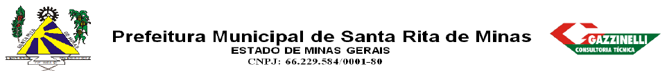 Edital resumido do Concurso Públiconº001/2023 – pág. 1/1 EDITAL RESUMIDO DO CONCURSO PÚBLICO Nº 001/2023 O Prefeito Municipal de Santa Rita de Minas - MG, no uso de suas atribuições legais,especialmente as conferidas pela Lei Orgânica Municipal, TORNA PÚBLICO que estarão abertas, no período de12 de janeiro a 10 de fevereiro de 2024, as inscrições para o CONCURSO PÚBLICOde provas objetivas, prova prática e provas de títulos para provimento efetivo de vagas existentes no quadro de pessoal a ser regido em conformidade ao previsto na Lei Orgânica Municipal e suas alterações posteriores; Lei Municipal nº 382/2012 e suas alterações posteriores; Lei Municipal nº 384/2012 e suas alterações posteriores; Lei Municipal nº 404/2013 e suas alterações posteriores; Lei Municipal nº 460/2017 e suas alterações posteriores; Lei Municipal nº 554/2022 e suas alterações posteriores; Lei Municipal nº 564/2022 e suas alterações posteriores; Lei Municipal nº 581/2022 e suas alterações posteriores; Lei Federal nº 11.350/2006 e suas alterações posteriores; Lei Federal nº 13.595/2018 e suas alterações posteriores; e demais legislações aplicáveis à espécie. Os interessados poderão obter mais informações a partir do dia 12 de dezembro de 2023 através do site: www.gazzinelliconsultoria.com.br ouno dia 12 de janeiro de 2024no local de realização das inscrições presenciais. A partir desta data todas as publicações e informações sobre o Concurso Público do Edital nº 001/2023 serão publicados no quadro de avisos da Prefeitura Municipal de Santa Rita de Minas e disponível na íntegra no site: www.gazzinelliconsultoria.com.br Prefeitura Municipal de Santa Rita de Minas -MG, 04 de dezembro de 2023. (original assinado) Ademilson Lucas Fernandes Prefeito do Município de Santa Rita de Minas