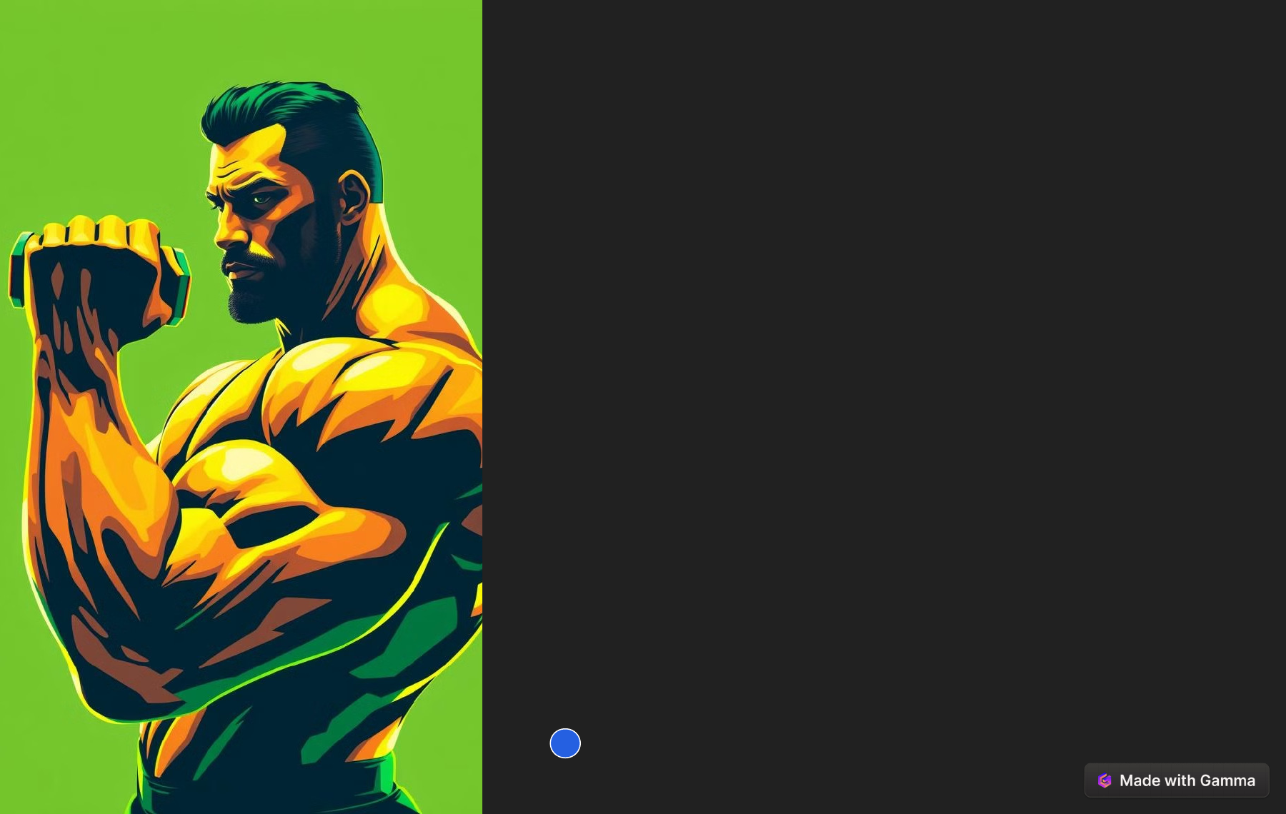 A ciência por trás de rotinas de treino eficazes para o crescimento muscular O desenvolvimento muscular é um processo complexo que envolve diversos fatores científicos. Desde a importância dos macronutrientes até o papel dos estímulos de treino e da recuperação, cada aspecto deve ser cuidadosamente considerado para maximizar o crescimento. por Ricardo ReisRR https://gamma.app/?utm_source=made-with-gamma Princípios básicos do treinamento de hipertrofia 1 Sobrecarga Progressiva Aumentar gradualmente a intensidade, volume e complexidade dos exercícios é essencial para estimular o crescimento muscular. 2 Variação de Exercícios Alternar entre diferentes movimentos e ângulos de trabalho muscular evita a acomodação e mantém os músculos em constante desafio. 3 Tempo de Recuperação Permitir períodos adequados de descanso e recuperação entre sessões de treino é crucial para a síntese proteica. https://gamma.app/?utm_source=made-with-gamma O papel dos macronutrientes na hipertrofia muscular Proteínas As proteínas são os blocos de construção essenciais para a síntese de novos tecidos musculares. Carboidratos Os carboidratos fornecem a energia necessária para sustentar sessões de treino intensas e garantir a recuperação. Gorduras As gorduras desempenham um papel importante na produção hormonal, na absorção de nutrientes e na saúde geral. https://gamma.app/?utm_source=made-with-gamma Tipos de estímulos de treino que maximizam o crescimento 1 Carga Pesada Exercícios com cargas pesadas geram tensão muscular e ativam mecanismos de hipertrofia. 2 Volume Elevado Um maior número de repetições e séries estimula a síntese proteica e o crescimento. 3 Tempo de Tensão Manter a contração muscular por mais tempo sob carga promove a hipertrofia. https://gamma.app/?utm_source=made-with-gamma Importância do descanso e recuperação para a hipertrofia Reparação Tecidual O descanso permite que os músculos se recuperem dos microtraumas causados pelo treino, preparando-os para o próximo estímulo. Síntese Proteica Durante a recuperação, os músculos sintetizam novas proteínas, resultando em crescimento e fortalecimento. Reposição de Energia O descanso adequado reabastece os estoques de glicogênio e outros nutrientes essenciais para o próximo treino. https://gamma.app/?utm_source=made-with-gamma Fatores hormonais e seu impacto no desenvolvimento muscular Testosterona O hormônio masculino responsável pela síntese de proteínas e crescimento muscular. GH O hormônio do crescimento estimula a divisão e o aumento das células musculares. Insulina Esse hormônio promove a absorção de nutrientes e a síntese de glicogênio. https://gamma.app/?utm_source=made-with-gamma Estratégias comprovadas de periodização do treinamento 1 Hipertrofia Foco no aumento do volume e da intensidade dos exercícios. 2 Força Ênfase no trabalho com cargas pesadas para ganho de força. 3 Potência Desenvolvimento da capacidade de gerar força rapidamente. https://gamma.app/?utm_source=made-with-gamma Conclusão e dicas práticas para rotinas de treinamento eficazes 1 Diversidade de Exercícios Alterne entre diferentes movimentos e grupos musculares para evitar a acomodação. 2 Monitoramento do Progresso Acompanhe regularmente seus índices de força, volume e massa muscular. 3 Descanso e Nutrição Priorize a qualidade do sono e uma dieta equilibrada rica em macronutrientes. https://gamma.app/?utm_source=made-with-gamma
