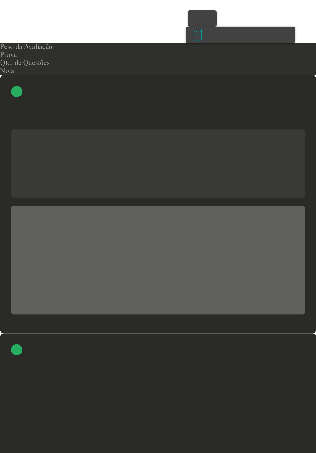 Prova Impressa GABARITO | Avaliação Final (Discursiva) - Individual (Cod.:668318) Peso da Avaliação 4,00 Prova 35141450 Qtd. de Questões 2 Nota 10,00 A reta pode ser definida como a união de infinitos pontos, porém requere-se apenas dois para definir exatamente a reta. Já o segmento pode ser definido como uma porção de uma reta ou uma curva limitada por dois pontos. O conhecimento desses conceitos é muito importante para a melhor compreensão da geometria descritiva, bem como os conceitos de reta perfil, reta paralela e reta suporte. Disserte sobre esses três tipos de retas citados. Resposta esperada A reta suporte é a reta que contém o segmento. As retas paralelas podem ser definidas como as retas que apresentam as duas projeções na épura, paralelas à linha de terra. As retas de perfil são as retas ortogonais à linha de terra. Minha resposta *Reta de perfil - São as retas ortogonais alinha de terra. Essa reta possui as suas projeções tanto no plano horizontal quanto ao plano vertical perpendiculares linha de terra. Todos os pontos desse segmento de reta possuem a mesma abcissa, mas afastamento cota diferentes. *Reta paralela - São retas que apresentam as duas projeções paralelas a linha de terra. Essa reta também pode ser chamada de reta fronto -horizontal, e representa a verdadeira grandeza de um segmento de reta. * Reta de suporte - É a reta que contem o segmento. A reta é infinita, e sabemos que um segmentos de reta á a distancia entre dois pontos em uma reta .Como esse segmento de reta esta contido, ou seja, é uma parte de uma reta podemos dizer que a reta da suporte para o segmento que esta contido na mesma . Na geometria, os ângulos são definidos pelo seu valor característico, como os ângulos retos, rasos, obtusos, complementares, entre outros. Com base nisso, determine e apresente por extenso o VOLTAR A+ Alterar modo de visualização 1 2 valor dos ângulos alfa e beta suplementares apresentados na figura a seguir. Resposta esperada 14x + 8 + 35 + 44x = 180 14x + 44x = 180 – 8 – 35 58x = 137 x = 137 / 58 x = 2,36 alfa = 35 + 44x alfa = 35 + (44 x 2,36) alfa = 138,84° beta = 14x +8 beta = (14 x 2,36) + 8 beta = 41,04° Minha resposta * Cálculo de x; 35+44x+14x+8 = 180 43+58x = 180 58x = 180-43 58x = 137 x = 137/58 x = 2,36 *Cálculo de alfa; alfa = 35+44x alfa = 35+(44*2,36) alfa = 35+103,84 alfa = 138,84° *Cálculo de beta; beta = 14x + 8 beta = (14*2,36) + 8 beta = 33,04 + 8 beta = 41,04° Imprimir