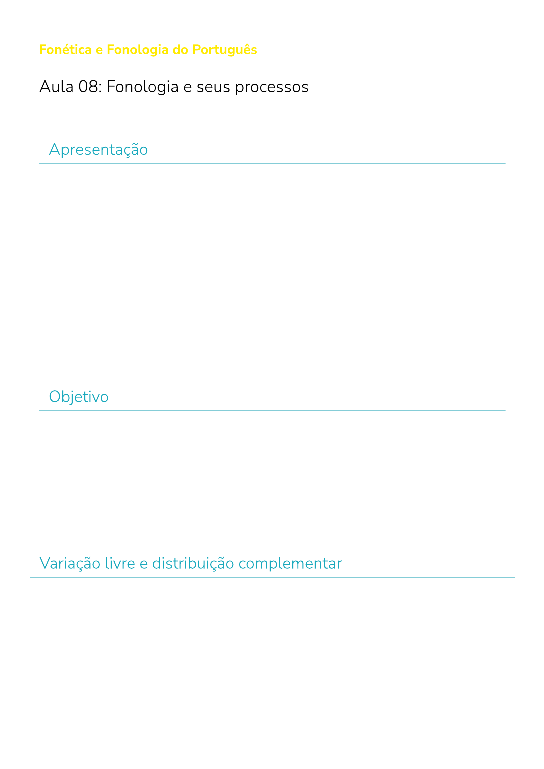 Estudamos duas maneiras principais de analisar a linguagem humana. A primeira, a Fonética, tinha seu enfoque nas unidades sonoras mais elementares da fala oral. Identi�camos, nesse âmbito, os traços que constituem os sons, partindo de conhecimentos da Física e da Biologia para entender sua produção, propagação e recepção. Assim, conseguimos descrever esses sons de maneira objetiva. Na aula passada, conhecemos com mais profundidade a segunda maneira: a Fonologia. Nessa área do conhecimento linguístico, olhamos os idiomas e sua utilização das amplas possibilidades de sons, aprendendo a reconhecer formas usuais em cada grupo de falante. Nesta aula, veremos que essas formas não são tão rígidas porque sua produção pode variar dependendo da faixa etária do falante, do gênero, da sua localização geográ�ca e do estrato social ao qual pertence. Além disso, expandiremos para a próxima aula, quando faremos algumas re�exões levando em consideração também os conhecimentos da Sociolinguística. • Descrever a distribuição complementar e a variação livre; • De�nir o arquifonema; • Explicar alguns processos fonológicos. Vimos que o elemento de estudo da fonologia é o fonema, uma unidade distintiva de uma língua, e que, como mencionamos também acima, as realizações às vezes podem ser múltiplas sem que, no entanto, haja mudanças de sentido (se não se lembrar desse conceito, reveja, na última aula, nossa explicação sobre os alofones). Mas não é porque pode haver variação que estamos impedidos de estudar e sistematizar essas possibilidades. Quando falamos em alofones, entendemos que certos sons, próximos em alguns traços linguísticos, podem ser equivalentes na produção de determinada palavra. Demos o exemplo, na aula passada, da palavra mar, em que o som de r pode ser descrito como [h], [X], [ɹ] e [ɾ] (reveja a tabela da IPA e tente comparar esses sons). Atenção! Aqui existe uma videoaula, acesso pelo conteúdo online Lembre-se de que estamos tratando aqui de uma análise fonológica e, por isso, restringindo-nos aos elementos puramente linguísticos. Logo, há equivalência dessas formas na produção da palavra que estamos estudando, não sendo possível hierarquizá-las com base em fatores sociais, por exemplo. Repare também que nosso exemplo apresenta essa variação em �nal de palavra, mas esse não é o único contexto em que tal relação ocorre. Esse tipo de fenômeno aparece em �nais de sílabas, e não somente em �nais de palavras. Pense, por exemplo, nas palavras Marta, mirtilo, mortal, camurça (nesses casos a consoante é sucedida por oclusiva ou fricativa surda, e isso faz diferença na fala, como veremos melhor no item que trata da assimilação). Fonte: Undrey / Shutterstock Mas é preciso chamar a atenção a outro fator: até aqui, essa variação livre apresenta essas quatro formas equivalentes na produção da consoante em �nal de sílaba. Você consegue pensar em um exemplo em que a consoante está em início de sílaba? Podemos usar como exemplo as palavras carro e caro. Essas, aliás, podem ser descritas fonologicamente como pares mínimos porque a variação entre os quatro sons não é mais livre. Para falar caro, inevitavelmente é preciso usar o tepe — [ɾ]. Qualquer dos outros três sons vai ser a produção sonora de carro. Nesse contexto, ainda será possível produzir com uma vibrante [r], que pode ser associada a falantes de faixa etária mais avançada. Percebe a diferença entre essas situações? Voltemos, então, à sistematização do uso dos alofones. Além da variação livre, existe uma outra forma de relação entre eles na organização das palavras: a distribuição complementar. Vamos pensar na distribuição dos fones [t] e [t∫] em palavras do português, especialmente na produção do sudeste do país. Pronuncie as palavras: • Tanque; • Tato; • Tempo; • Teto; • Tipo; • Time; • Tolo; • Tombo; • Tuba; • Tumba. Considerando o modo de articulação (a maneira como som é produzido), você notou que em quase todos os contextos o primeiro som era produzido como [t]? Apenas em duas palavras ocorria uma diferença signi�cativa, você reparou? Nas palavras tipo e time, a primeira consoante é produzida como [t∫]. A partir desse exemplo e com base no nosso conhecimento linguístico prévio, restringindo nossa análise à fala típica do sudeste do Brasil, podemos concluir que onde ocorre [t] não ocorre [t∫] e vice-versa, tendo em vista que esses dois fones acontecem em distribuição complementar. Fonte: Axel Bueckert / Shutterstock Essa conclusão decorre do fato de que, estando diante de [i] e suas variantes (incluindo aí aquelas que não são grafadas nas entradas lexicais, como é o caso de atmosfera), /t/ é realizado como [t∫]. Nos outros contextos, a fala utilizará [t]. Você reparou que alguns sons foram classi�cados como fonemas, mas em determinados contextos perdem o traço distintivo e são utilizados com certa equivalência e sem alteração de signi�cado? Reveja, por exemplo, o caso da palavra mar. Podemos pensar também em outras situações, como dos sons [s, z, ∫, ʒ]. Conseguimos identi�car no português os pares mínimos assa, asa, acha e haja, correto? Com esses exemplos, é possível a�rmar que os sons [s, z, ∫, ʒ] em posição intervocálica apresentam contraste fonêmico e, por isso, são considerados fonemas. Assim também, em início de palavra, há igualmente contraste fonêmico desses sons, haja vista os exemplos (ele) seca, Zeca, (ele) checa e jeca. Atenção! Aqui existe uma videoaula, acesso pelo conteúdo online A�rmamos que esses casos comprovam que se trata de fonemas porque, havendo troca dos sons, o sentido também muda. Mas não encontramos esse mesmo resultado procedendo com a comparação em �nal de sílaba. Note que, para a palavra mês, encontramos como formas possíveis de realização: ['mes] ou ['m