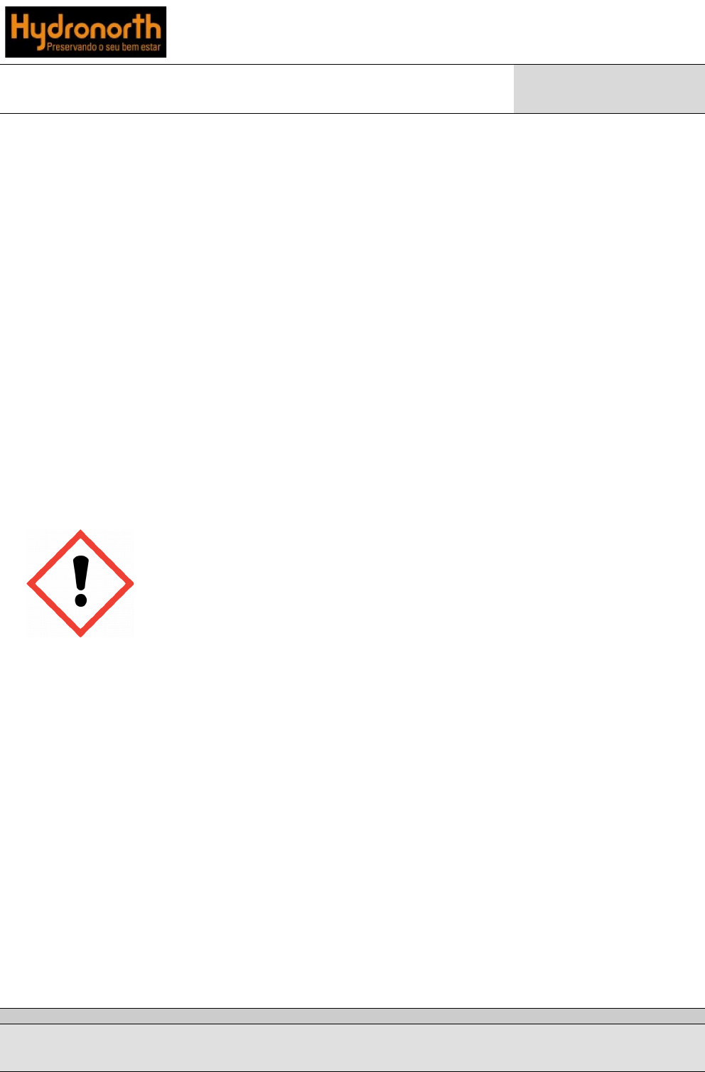 Super Novopiso Semi-Brilho FICHA DE INFORMAÇÕES DE SEGURANÇA DE PRODUTO QUÍMICO IDENTIFICAÇÃO FOLHA FISPQ TPF 016 1 / 5 1 – IDENTIFICAÇÃO DO PRODUTO E DA EMPRESA Super Novopiso Semi-Brilho Branco Fabricante: Hydronorth S/A Endereço: Rodovia Melo Peixoto, 656 Parque Industrial – Cambé – Pr. CEP: 86185-700 Telefone PABX: (43) 2101-2000 Telefone de Informação: 0800-7043303 - SIC Telefone Emergencial: 0800-148110 - CEATOX FAX: (43) 2101-2002 E-mail: atendimento@hydronorth.com.br 2 – IDENTIFICAÇÃO DE PERIGOS -Classificação da substância ou mistura Sensibilização à pele. Cat.1 -Elementos de rotulagem GHS. Pictograma. Palavra de advertência: Atenção Indicação de perigo H317 Pode provocar reações alérgicas na pele. Precauções (prevenção) P261 Evitar respirar as poeiras/ fumos/ gases/ névoas/ aerossóis. P272 A roupa de trabalho contaminada não pode sair do local de trabalho. P280 Usar luvas de proteção/roupa de proteção/ proteção ocular/ proteção facial. Precauções (resposta a emergência) P321 Tratamento específico (ver no presente rótulo). P333 + P313 Em caso de irritação ou erupção cutânea: consulte um médico. P363 Lave a roupa contaminada antes de usá-la novamente. P302 + P352 EM CASO DE CONTATO COM A PELE: lave com água e sabão em abundância. Indicação de eliminação P501 Eliminar o conteúdo/recipiente em um ponto de coleta de resíduos especiais ou perigosos respeitando a legislação local. . DATA DA ÚLTIMA REVISÃO REVISÃO ELABORAÇÃO 13/09/18 6 LABORATÓRIO DE DESENVOLVIMENTO mailto:atendimento@hydronorth.com.br Super Novopiso Semi-Brilho FICHA DE INFORMAÇÕES DE SEGURANÇA DE PRODUTO QUÍMICO IDENTIFICAÇÃO FOLHA FISPQ TPF 016 2 / 5 3 – COMPOSIÇÃO E INFORMAÇÕES SOBRE OS INGREDIENTES Tipo de produto: Mistura Natureza química: Solução Aquosa, Emulsão acrílica, Cargas Minerais Especiais, Pigmentos, Aditivos, solvente Alifático, Alcalinizantes, Conservantes. 4 – MEDIDAS DE PRIMEIROS-SOCORROS Inalação: Remover a vítima para ambiente aberto com circulação de ar e solicitar assistência médica de emergência. Se houver ausência de respiração, realizar respiração artificial; no caso de dificuldade de respiração administrar oxigênio. Manter a vitima aquecida, imóvel e sob observação. Contato com a pele: Lavar com muita água e sabão, removendo roupas e sapatos contaminados. Contato com os olhos: Lavar com água em abundância por no mínimo 15 minutos. Se persistir a irritação, procurar um oftalmologista. Ingestão: Não induzir ao vômito, manter a vítima em repouso e procurar atendimento médico. Quais ações devem ser evitadas: manter contato com a pele Proteção para o prestador de socorros: Certificar-se de que a equipe médica está ciente dos riscos oferecidos pelo produto e de que tomaram as devidas medidas de proteção. 5 – MEDIDAS DE COMBATE A INCÊNDIO Meios de extinção apropriados: Espuma, Pó químico seco, CO2 (dióxido de carbono), ou água. Perigos específicos: Este produto pode produzir fumos tóxicos de monóxido de carbone, em caso de incêndio. 6 – MEDIDAS DE CONTROLE PARA DERRAMAMENTO OU VAZAMENTO Precauções pessoais, equipamentos de procedimentos de emergência. Utilizar equipamento de proteção adequado (incluindo equipamento de proteção individual)(ver seção 8 da FISPQ) para impedir qualquer contaminação da pele, olhos ou roupa; eliminar as fontes de ignição e proporcionar ventilação suficiente. Precauções ao meio ambiente. DATA DA ÚLTIMA REVISÃO REVISÃO ELABORAÇÃO 13/09/18 6 LABORATÓRIO DE DESENVOLVIMENTO INGREDIENTES OU IMPUREZAS QUE CONTRIBUAM PARA O PERIGO Nome Químico ou técnico: Faixa de Concentração(%) CAS Aguarrás 0,2 – 0,7 64742-47-8 Sais inorgânicos de Boratos Alcalinos 0 – 0,5 Não informado 5-cloro-2-metil-4-isotiazolin-3-ona 0 – 0,3 247-500-7 2-metil-4-isotiazolin-3-onas 0 – 0,3 220-239-6 Super Novopiso Semi-Brilho FICHA DE INFORMAÇÕES DE SEGURANÇA DE PRODUTO QUÍMICO IDENTIFICAÇÃO FOLHA FISPQ TPF 016 3 / 5 Pequenos derramamentos: absorver com areia ou com outro material absorvente não combustível e guardar em recipientes para posterior descarte. Evitar que o produto entre em contato com o solo ou cursos de água. Grandes derramamentos: confinar o fluxo longe do derramamento para posterior descarte. Evitar que o produto entre em contato com o solo ou cursos d’água. Sistema de alarme: Ocorrendo poluição, notificar as autoridades competentes. Métodos e materiais para a contenção e limpeza. Recuperação: para limpeza do local, lavar com água e detergente neutro. Neutralização: estancar o vazamento Disposição: confinar o fluxo e recolher o material em embalagens de metal ou plástico para posterior descarte; de acordo com a legislação local vigente. Prevenção dos perigos secundários: As embalagens devem ser descartadas, não devendo ser reutilizadas. 7 – MANUSEIO E ARMAZENAMENTO Manuseio Medidas técnicas: Prevenção da exposição do trabalhador: Utilizar os equipamentos de proteção pessoal indicados. Precauções para manuseio seguro: Evitar contato com a pele, mucosas e olhos. Orientação para manuseio seguro: Não fumar, comer ou beber no local de manuseio do produto. O local deve ser arejado e ventilado. Armazenamento Medidas técnicas apropriadas: o produto deve ser armazenado em local seco, arejado, longe do calor, alimentos e agentes oxidantes. Manter as embalagens sempre fechadas. Condições de armazenamento Adequadas: Armazenar em local fresco, seco, ventilado e coberto, longe de fontes de calor. A evitar: Locais úmidos, abafados, sem ventilação e descoberto. Produtos e materiais incompatíveis: alimentos e agentes oxidantes Materiais seguros para embalagens Recomendadas: Bombonas plásticas 8 – CONTROLE DE EXPOSIÇÃO E PROTEÇÃO INDIVIDUAL Equipamentos de proteção individual apropriado Proteção respiratória: máscara com cartuchos químicos para evitar a in