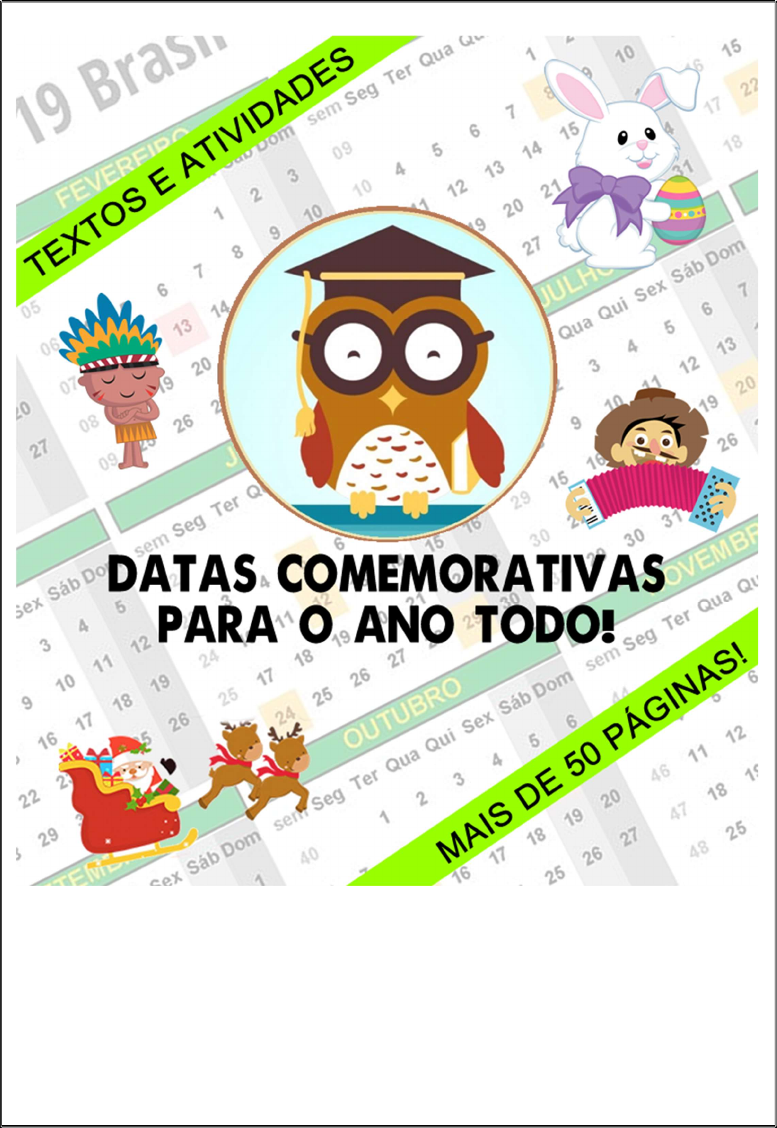 ACERVO DO CORUJINHA Nossa página no Facebook: https://www.facebook.com/acervodocorujinha/ Carnaval O carnaval é uma festa popular do povo brasileiro. É uma festa móvel sem dia determinado, porém antecede a quaresma. Esta festa acontece no país todo, sendo que em cada localidade prevalece um tipo característico. O mais conhecido é o carnaval de rua. Desde os tempos mais antigos, as pessoas se juntavam em grupos, chamados blocos, e se caracterizavam com roupas engraçadas e divertidas. Saíam com seus grupos de batucada, dançando, cantando as marchas carnavalescas e se divertindo muito. Com o passar dos anos a festa de carnaval mudou muito. No Rio de Janeiro há o predomínio dos sambas, pagodes e os sambas enredo apresentados pelas escolas de samba. Este carnaval é conhecido mundialmente em razão das belezas das fantasias, como das baianas, mestre-sala e porta-bandeira, passistas, além das alegorias, carros enfeitados, variando de acordo com o enredo ou tema da escola de samba. Uma outra festa bem conhecida mundialmente é a de Olinda e a de Recife, em Pernambuco, com apresentações de frevo, uma dança de ritmo eletrizante. Dançarinos fazem acrobacias e malabarismos dançando com sombrinhas e mostrando grande habilidade com as pernas. Existe ainda a disputa pelos bonecos gigantescos, conhecidos como “Bonecos de Olinda”, caracterizados de personalidades, que fazem grande alegria da população. O carnaval de Salvador diferencia-se desses outros por contar com os trios elétricos, que passeiam pelas ruas da cidade. Os trios são caminhões montados com grandes aparelhagens de som, muito potentes, para poderem se propagar nas ruas. Cantores famosos fazem a festa do povo, cantando e dançando em cima dos carros, puxando grandes multidões. http://www.escolakids.com/carnaval.htm (adaptado) 1) Como se chama a festa popular do povo brasileiro, sem dia determinado do mês de fevereiro ou março, com duração de quatro dias, terminando na Quarta-feira de Cinzas? Marque com um X a resposta correta: ( a ) Festa Junina ( c ) Páscoa ( b ) Natal ( d ) Carnaval 2) Pinte a cena que retrata o Carnaval: HOJE É DIA DE FOLIA Eh oh! Eh oh! Hoje é dia de folia Meu coração, quer convidar você Pra cair na brincadeira Balançar, fazer zueira Com maior prazer Você que fez Meu coração se apaixonar Sonhar, sonhei Pra esse dia ver chegar Me leva pro futuro Me leva coração Eu quero ver Você sair da solidão Nando Cordel 3) Esta festa acontece no país todo, sendo que em cada localidade prevalece um tipo característico. Ligue corretamente as características do carnaval de cada estado brasileiro destacado abaixo: Rio de Janeiro Frevo e bonecos de Olinda. Pernambuco Trios elétricos. Bahia Escolas de samba e blocos de rua. 4) Preencha a cruzadinha corretamente: a) No Carnaval de rua as pessoas se caracterizavam com roupas divertidas e se juntavam em grupos, chamados... b) No Rio de Janeiro há o predomínio dos sambas, pagodes e os sambas enredo apresentados pelas... c) Dança de ritmo eletrizante de Pernambuco: d) Caminhões montados com grandes aparelhagens de som, muito potentes, para poderem se propagar nas ruas: a) C b) A * * d) R N A c) V A L “O Carnaval é festejado ou em fevereiro ou em março. Ele é conhecido como uma festa móvel, porque não tem um dia certo para acontecer. O Carnaval é a maior festa popular do Brasil.” https://pt.wikipedia.org/wiki/Carnaval 5) Por que o Carnaval é considerado uma festa móvel? ___________________________________________________________________ ___________________________________________________________________ Dia da Mulher O Dia Internacional da Mulher é comemorado no dia 08 de março. Esta data foi escolhida para realizar conferências, debates e reuniões cujo objetivo é discutir o papel da mulher na sociedade atual. O esforço é para tentar diminuir e, quem sabe um dia terminar com o preconceito e a desvalorização da mulher. Mesmo com todos os avanços, elas ainda sofrem, em muitos locais, com salários baixos, violência masculina, jornada excessiva de trabalho e desvantagens na carreira profissional. Muito foi conquistado, mas muito ainda há para ser modificado nesta história. Fonte: http://umbomprofessor.blogspot.com.br/2012/03/atividades-dia-da-mulher-08-de-marco.html MARIA MARIA Maria, Maria É um dom, uma certa magia, Uma força que nos alerta, Uma mulher que merece viver e amar, Como outra qualquer do planeta. Maria, Maria É o som, é a cor, é o suor, É a dose mais forte e lenta De uma gente que ri quando deve chorar E não vive, apenas aguenta. Mas é preciso ter força, É preciso ter raça, É preciso ter gana sempre, Quem traz no corpo a marca. Maria, Maria Mistura a dor e a alegria. Mas é preciso ter manha, É preciso ter graça, É preciso ter sonho sempre. Quem traz na pele essa marca Possui a estranha mania De ter fé na vida. Milton Nascimento – Fernando Brant 1) As palavras podem mudar de significado dependendo do contexto que aparecem. Leia as frases abaixo, e assinale o melhor significado para as palavras em negrito: a) “Quem traz no corpo esta marca.” ( ) sinal aparente no corpo. ( ) Grife de roupa. b) “Mas é preciso ter manha.” ( ) comportamento infantil. ( ) habilidade, astúcia. c) “E preciso ter gana sempre.” ( ) grande força de vontade. ( ) fome. d) “É preciso ter graça.” ( ) beleza, elegância. ( ) nome de mulher. 2) As características atribuídas à Maria na quarta estrofe representam: ( a ) a força da mulher. ( b ) a delicadeza da mulher. ( c ) a mulher fragilizada. ( d ) a indecisão feminina. 3) Marque a opção que não identifica as características emocionais ou psicológicas da Maria descrita no texto: ( a ) Ativa ( b ) Participante ( c ) Lutadora ( d ) Fraca 4) Os trechos: “Quem traz no corpo a marca / … / Mistura a dor e a alegria” e “Quem traz na pele essa marca / possui a estranha mania / de ter fé na vida” indicam que a Maria é: ( a ) portadora de
