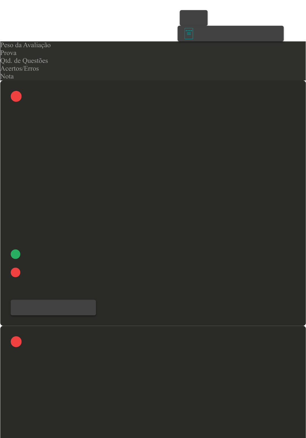 Prova Impressa GABARITO | Avaliação Final (Objetiva) - Individual (Cod.:955024) Peso da Avaliação 4,00 Prova 80786392 Qtd. de Questões 12 Acertos/Erros 7/5 Nota 7,00 Pedro Lyra, na obra Conceito de Poesia (1986, p. 6-7) afirma que: "[...] poema é, de modo mais ou menos consensual, caracterizado como um texto escrito (primordialmente, mas não exclusivamente) em verso". Levando em consideração essa afirmação do autor e sobre a estrutura do poema, analise as afirmativas a seguir: I- O verso é definido por Antonio Candido como a "unidade do poema", configurando-se como cada linha de um poema. II- Versos brancos são aqueles versos terminados em palavras oxítonas, paroxítonas e proparoxítonas, permitindo a musicalidade do poema. III- Enjambement ou cavalgamento se constitui como verso livre de regras quanto à metrificação, ritmo e rima, bastante comum nos poemas clássicos. IV- Estrofe pode ser definida como um conjunto demarcado de versos. Dísticos, quadras e septilhas são nomes de estrofes de 2, 4 e 7 versos respectivamente. Assinale a alternativa CORRETA: FONTE: LYRA, Pedro. Conceito de poesia. São Paulo: Ática, 1986. A As afirmativas I e III estão corretas. B As afirmativas I e IV estão corretas. C As afirmativas I, II e IV estão corretas. D Somente a afirmativa III está correta. No enredo - que é um dos principais elementos da narrativa - se organiza uma sequência de ações, apresentadas segundo o ponto de vista de um narrador, que são vividas ou realizadas por personagens. Essa combinação das ações e a estruturação dos acontecimentos apresenta-se, desde as narrativas clássicas até as contemporâneas, através de uma sequência que Aristóteles reconhecia como fábula. Com base no exposto, classifique V para as sentenças verdadeiras e F para as falsas: ( ) Aristóteles, ao analisar as narrativas tradicionais, compreendia como "nó" todo acontecimento que se apresenta desde o princípio da narrativa até o momento anterior à mudança para a felicidade ou para a infelicidade. ( ) Para Aristóteles, o desenlace não se refere apenas aos acontecimentos posteriores ao momento de mudança da narrativa até o fim dela, visto que compreendeu que as narrativas contemporâneas desobedecem essa estrutura rígida e, de certo modo, prescritiva. VOLTAR A+ Alterar modo de visualização 1 Revisar Conteúdo do Livro 2 ( ) Para Aristóteles, o enredo se divide em peripécias e reconhecimentos que se estruturam em nó e em desenlace. ( ) Nas narrativas tradicionais, o enredo se divide em: apresentação ou exposição da situação inicial; complicação; clímax; epílogo ou desfecho ou desenlace. Assinale a alternativa que apresenta a sequência CORRETA: A F - V - V - V. B F - V - F - V. C V - F - V - V. D V - F - V - F. O saber literário demonstrou, para além da fidelidade lógica das ciências instrumentais aos fatos históricos, que a narrativa ficcional é também uma forma de conhecimento da realidade, que ela pode revelar fatos insuspeitados da realidade na medida em que liberta o pensamento para flertar com a imaginação. Por isso, Aristóteles falava da literatura como reveladora, não de uma verdade buscada pela especulação filosófica, mas de uma verdade possível, portanto verossimilhante. Sobre o exposto, classifique V para as sentenças verdadeiras e F para as falsas: ( ) As narrativas literárias distorcem a realidade na mesma medida em que a revela, pois são frutos da ilusão adormecida da humanidade. ( ) As narrativas literárias não distorcem a realidade, posto que demonstram com mais profundidade a realidade que buscam verificar. ( ) As narrativas literárias caracterizam-se por narrar um fato, real ou ficcional, a partir de elementos organizados, cada qual com sua função. ( ) As narrativas literárias distorcem a realidade, mas não a revela, pois essa função cabe às narrativas históricas e científicas. Assinale a alternativa que apresenta a sequência CORRETA: A F - F - V - F. B V - V - V - F. C F - V - V - F. D V - V - F - F. Leia o poema De rímel e salto, de Lucas de Melo Bonez: No auge das minhas velhas passadas – Tão largas quanto o tempo carregado – Estão os desejos para algum agrado Que não moram nestas calçadas. Revisar Conteúdo do Livro 3 Revisar Conteúdo do Livro 4 Se meu salto caminha sem contato Que a vida insiste em me colocar, Meu rosto avança e corta o ar, E o rímel ainda sai quase intacto. Eu sou força entre os problemas daqui. Eu sou alma que foge do conceito De que a vida é puramente defeito... Meu corpo é aquilo que sou por aí... Aquilo que dizes pelas minhas costas, Mas também o que pela tez não mostras. Acerca da estrutura do poema apresentado, assinale a alternativa CORRETA: FONTE: BONEZ, Lucas de Melo. Antes da última queda. Porto Alegre: Metamorfose, 2017. p.75. A Écloga. B Merestrel. C Poema livre. D Soneto. A narrativa, tanto do romance quanto do conto ou da novela, se organiza no fluxo do tempo, que pode ser linear, ou seja, quando o tempo, o espaço e os personagens são apresentados de maneira cronológica, onde podemos perceber facilmente começo, meio e fim da narrativa. Acerca do elemento da narrativa, assinale a alternativa INCORRETA: A Personagem. B Narrador. C Enredo. D Emoção. A literatura pode ser pragmática, pois atende a anseios ideológicos de determinados grupos; atua como forma de protesto à política e à sociedade; informa, de maneira particular, ativando sentimentos e sensações; funciona como catarse, de forma a purificar o espírito do autor e do leitor. Quais são as funções da literatura? A Função cognitiva, político-social, pragmática e catártica. Revisar Conteúdo do Livro 5 6 B Função cognitiva, político-social, catártica e lúdica. C Função cognitiva, político-social, pragmática, catártica e lúdica. D Função lúdica, político-social, pragmática e catártica. Leia o fragmento a seguir: Cidade de Ironia e da Beleza, Fica na dobra azul 