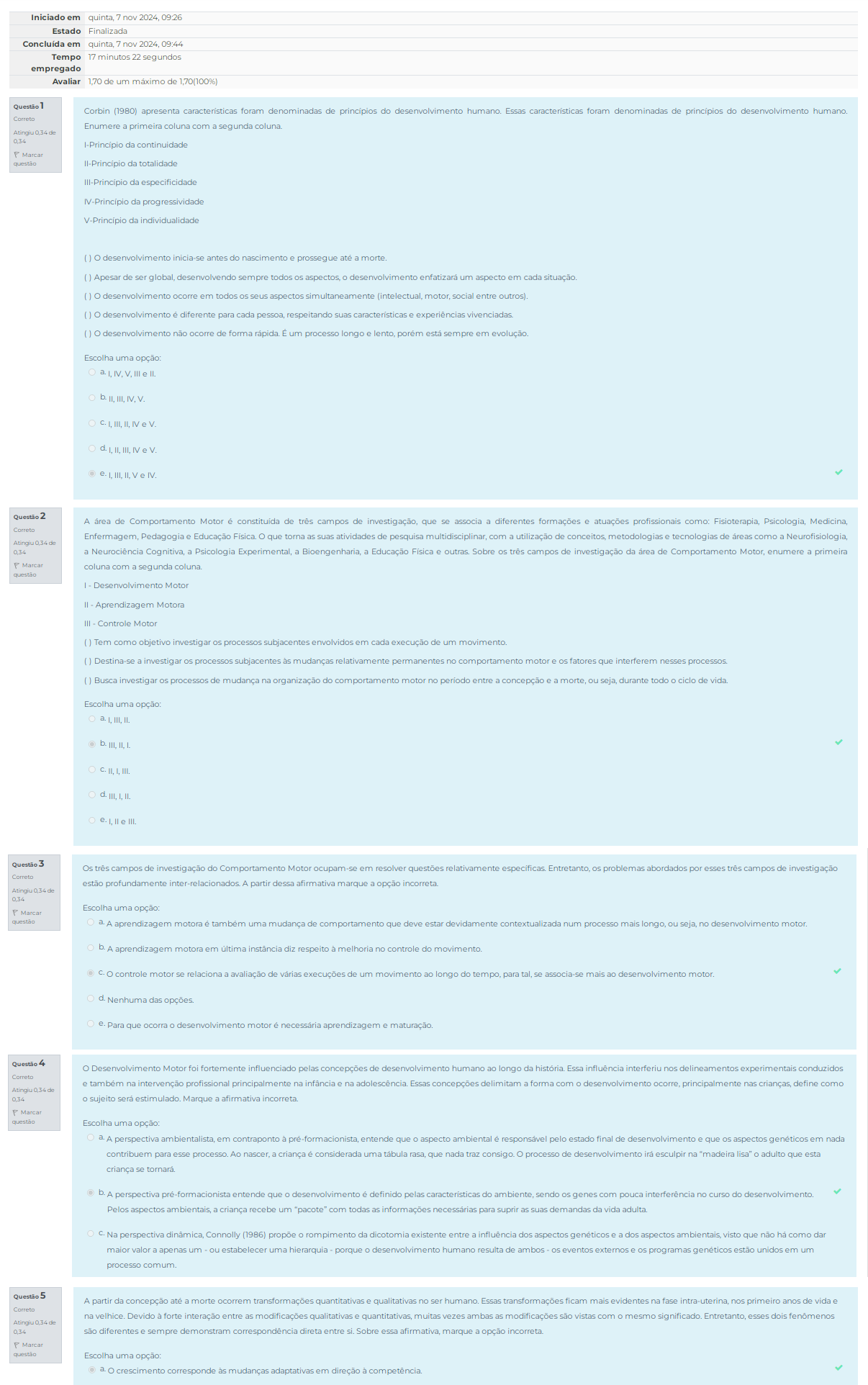 Assinale a alternativa correta Os psicólogos do desenvolvimento estudam o crescimento humano mental e físico apenas na infância, a adolescência, ...