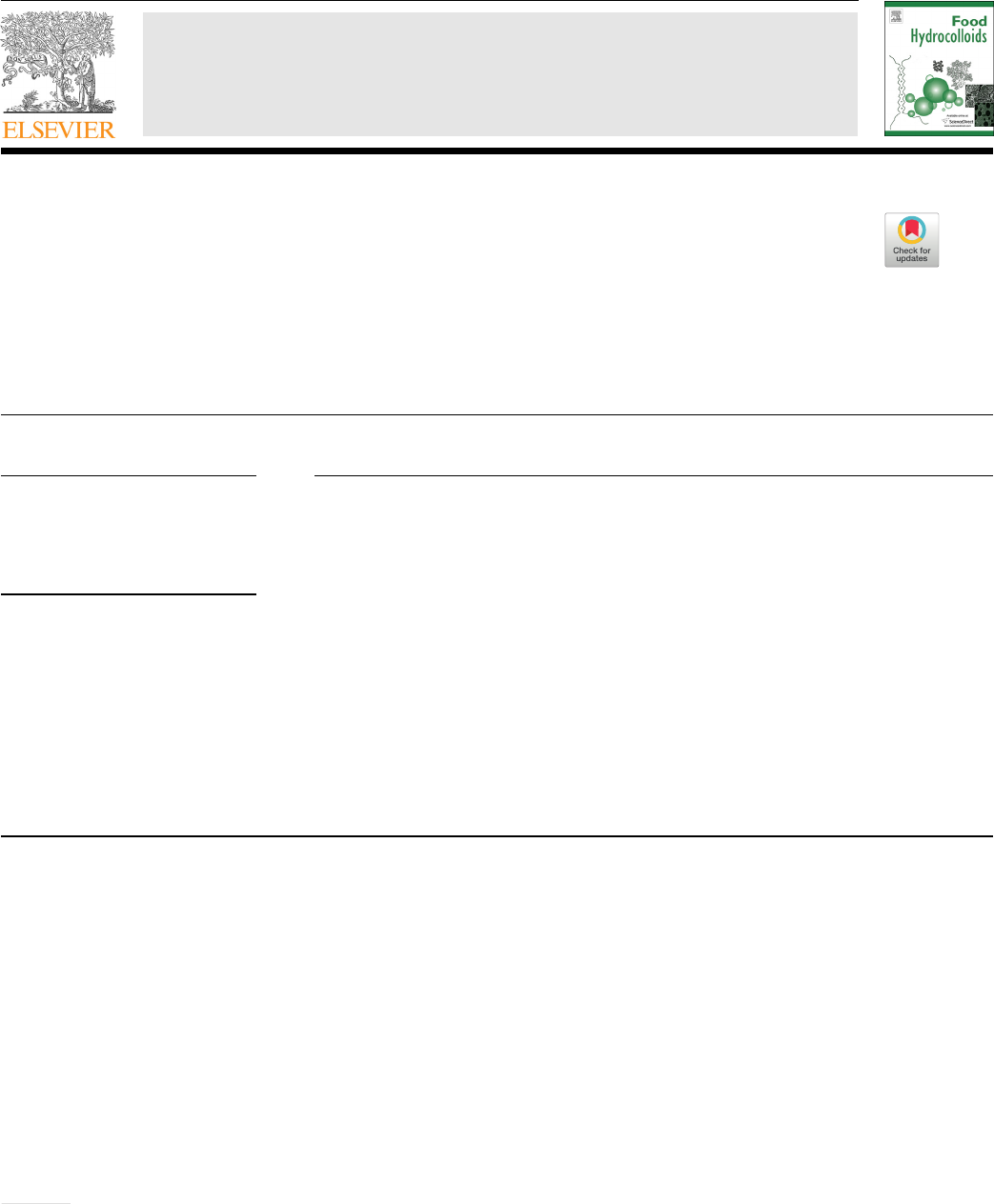 lable at ScienceDirect Food Hydrocolloids 77 (2018) 646e658 Contents lists avai Food Hydrocolloids journal homepage: www.elsevier .com/locate/ foodhyd Eriobotrya japonica seed as a new source of starch: Assessment of phenolic compounds, antioxidant activity, thermal, rheological and morphological properties Rafaela Cristina Turola Barbi, Gerson Lopes Teixeira, Polyanna Silveira Hornung, Suelen �Avila, Rosemary Hoffmann-Ribani* Food Engineering Graduate Program, Federal University of Paran�a, Polytechnic Center, 81531-980, Curitiba, Brazil a r t i c l e i n f o Article history: Received 9 August 2017 Received in revised form 1 November 2017 Accepted 3 November 2017 Available online 16 November 2017 Keywords: Loquat seed Starch Rheological behaviour Antioxidant activity Thermal analysis Microstructure * Corresponding author. E-mail address: ribani@ufpr.br (R. Hoffmann-Riba https://doi.org/10.1016/j.foodhyd.2017.11.006 0268-005X/© 2017 Elsevier Ltd. All rights reserved. a b s t r a c t Investigating non-conventional starch sources is essential because different chemical compositions, granular sizes and shapes, and amylose and amylopectin ratios, reveal new technological features. The loquat (Eriobotrya japônica), which is from the Rosaceae plant family, has a high amount of starch in its seeds (y 20%). Thus, this study aimed to characterise the physicochemical, thermal, rheological and structural properties, as well as the bioactive compounds, of loquat seed starch (LSS) derived from urban afforestation and commercial fruits at two stages of maturity: ripe (RI) and unripe (UN). Scanning electron micrographs showed oval- and cylindrical-shaped LSS granules. Using X-ray diffraction patterns it was possible to classify the LSS as having a C-type crystalline structure. The LSS (RI and UN) exhibited a higher thermal stability range in relation to degradation than conventional starches in the thermogra- vimetric assays (TG/DTG). Using differential scanning calorimetry it was possible to suggest a correlation between the peak temperatures with the gelatinisation temperatures obtained by the oscillatory shear test of the LSS. The rheological assays revealed that the LSS gels present pseudoplastic behaviour, with a high degree of thixotropy. Furthermore, higher content of polyphenols and higher antioxidant capacity were observed for the UN unpurified starch samples. Seven bioactive compounds were quantified in the raw starches by Ultra-High Performance Liquid Chromatography, with major concentrations of kaemp- ferol (up to 330.46 mg/kg) and 5-caffeoylquinic acid (up to 135.00 mg/kg). The LSS showed compatible characteristics for industrial usage as an alternative to chemically modified starches. © 2017 Elsevier Ltd. All rights reserved. 1. Introduction Starch is the main source of carbohydrates in the human diet and it has great nutritional and technological importance in the food industry. It also has several applications in non-food industries including pharmaceuticals, fertilisers, paper and adhesives (Albano, Franco, & Telis, 2014). The industrial use of starch is defined according to its features such as gelatinisation temperature, gel formation and paste vis- cosity. Starch is found in plant tissues in granular form and it is composed of amylose and amylopectin molecules. Every botanical source of starch has different particularities that affect its techno- logical behaviour and, consequently, its potential for industrial ni). usage (Hoover, 2001). Starch is mostly employed in industries in a modified form because native starch does not always provide the appropriate properties to meet the requirements of industrial processes (e.g. acidity, high temperature resistance etc.). However, interest in the replacement of chemically modified starches is increasing due to environmental concerns and the increased consumption of natural products. Therefore, new non-conventional amylaceous sources are being studied in order to provide alternatives for food production (Przetaczek-Ro _znowska, 2017). The starch derived from loquat seeds represents an alternative starch source. The loquat (Eriobothrya japonica) plant belongs to the Rosaceae family, which also includes the common or European plum (Prumus domestica L.) and other popular fruits such as strawberries and peaches, which are found worldwide. The loquat is an exotic subtropical fruit that develops well in regionswhere the annual average temperature is above 15 �C. The commercial mailto:ribani@ufpr.br http://crossmark.crossref.org/dialog/?doi=10.1016/j.foodhyd.2017.11.006&domain=pdf www.sciencedirect.com/science/journal/0268005X http://www.elsevier.com/locate/foodhyd https://doi.org/10.1016/j.foodhyd.2017.11.006 https://doi.org/10.1016/j.foodhyd.2017.11.006 https://doi.org/10.1016/j.foodhyd.2017.11.006 R.C. Turola Barbi et al. / Food Hydrocolloids 77 (2018) 646e658 647 production of loquats is concentrated in more than 20 countries including China, Japan, India, Australia, Brazil, Israel, Italy, Spain, Turkey and the United States (Tian, Qin, & Li, 2011). Previous studies about the skin, pulp and seed of the loquat evaluated its phenolic extract in order to identify bioactive com- pounds that could benefit human health when consumed (Koba, Matsuoka, Osada, & Huang, 2007). Delfanian, Kenari, and Sahari (2016) reported on the antioxidant activity of the leaves and skin of the loquat and the viability of its application in soybean oil in order to replace synthetic antioxidants by natural sources. Zheng, Xia, and Lu (2015) evaluated drying methods and their possible influence on the content of components in loquat flowers when used as tea. Despite the fact that the loquat fruit has been the subject of several studies in recent years, as well as the fact that the presence of bioactive compounds in its composition (skin, pulp, flowers and seeds) has been proven, no detailed studies of its seed starch fea- tures were found. The properties of starch