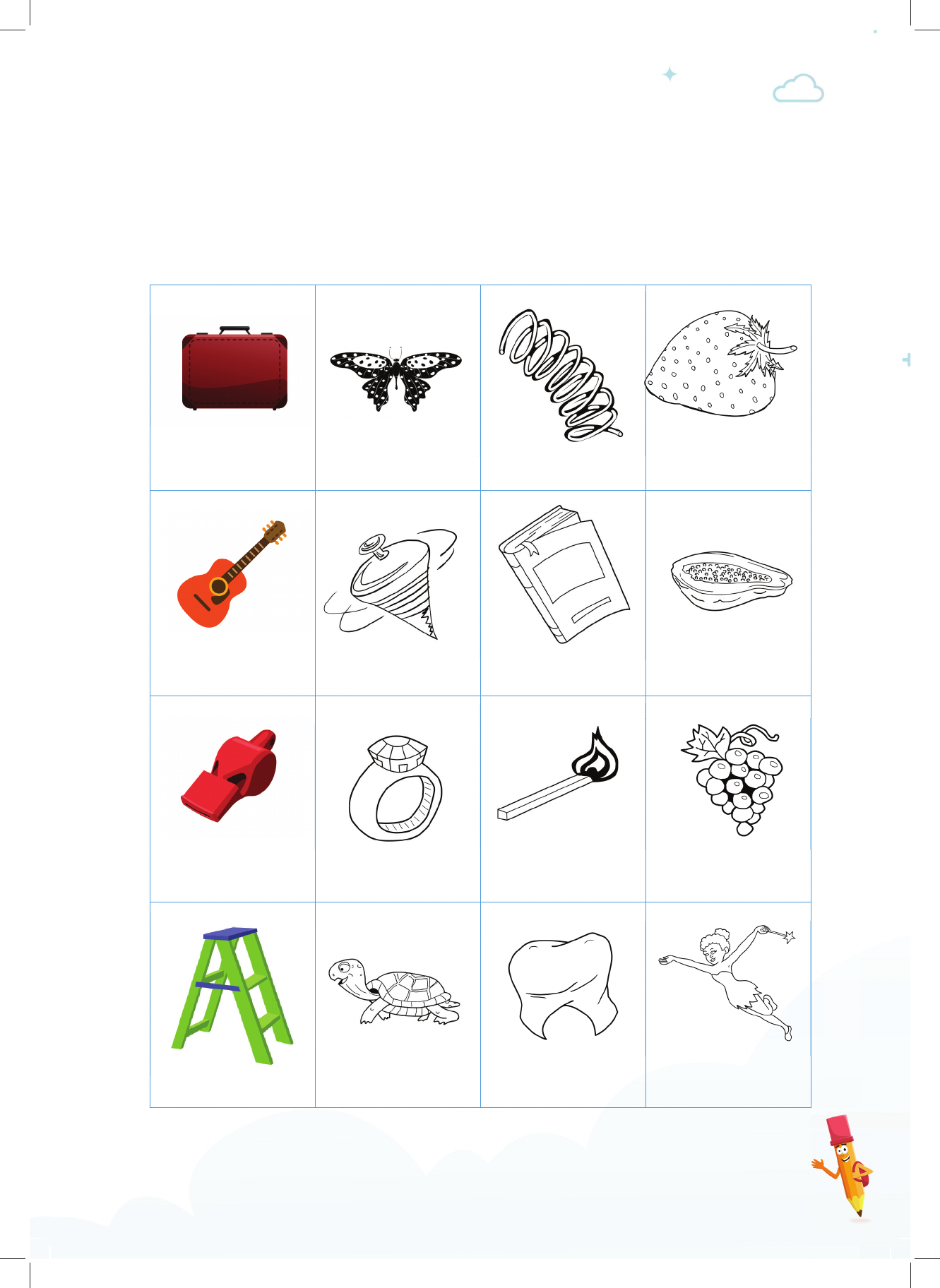 35EDUCA JUNTOS - LÍNGUA PORTUGUESA - 1º ANO - COLETÂNEA DE ATIVIDADES - VOLUME 1 ATIVIDADE 17 NOME ___________________________________DATA______/_______/_____ PINTE AS FIGURAS QUE TEM O MESMO SOM FINAL DA FIGURA COLORIDA.
