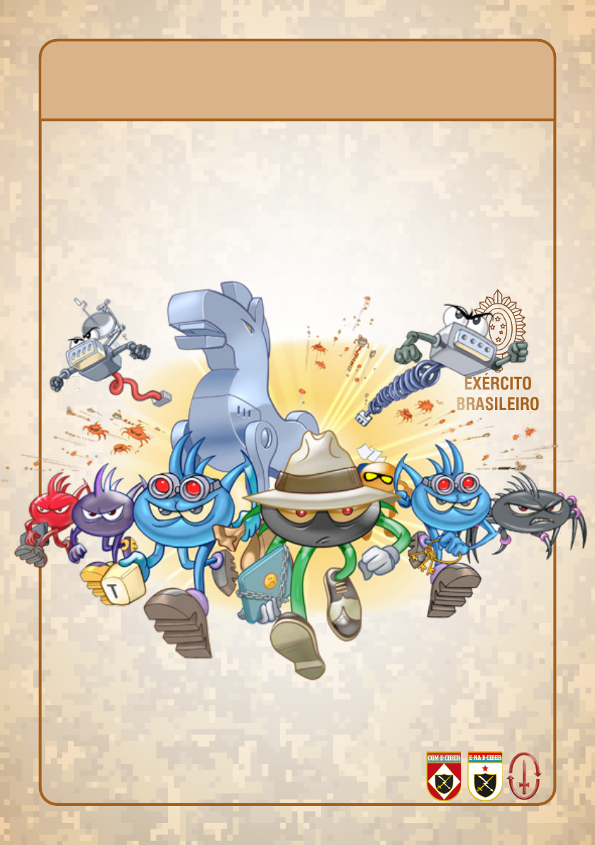 CÓDIGOS CÓDIGOS MALICIOSOSMALICIOSOS EXÉRCITO BRASILEIRO Campanha de Conscientização Cibernética Produção: Códigos maliciosos (malware) são usados como intermediários para prática de golpes, realização de ataques e envio de spam. A melhor prevenção é impedir sua infecção inicial, pois nem sempre é possível reverter ações já feitas ou recuperar dados vazados ou perdidos. UTILIZE UTILIZE MECANISMOS MECANISMOS DE PROTEÇÃODE PROTEÇÃO Antivírus (antimalware) podem ajudar a detectar, prevenir a infecção e/ou remover malware. No entanto, para serem efetivos contra a infinidade de variantes e novos malware que surgem todos os dias, precisam de atualização contínua. MANTENHA OS SISTEMAS E APLICATIVOS SEMPRE ATUALIZADOS Códigos maliciosos costumam explorar vulnerabilidades em sistemas e aplicativos para infectarem os dispositivos e se propagarem. Aplicar correções de segurança pode evitar que seus dispositivos sejam infectados e usados por atacantes. » Instale atualizações regularmente » Ative a atualização automática, sempre que possível » Reforce os cuidados, caso seu dispositivo já tenha sido infectado, para que não ocorra novamente NÃO CLIQUE EM TODOS OS LINKS QUE RECEBE Alguns links podem ser usados para direcionar os usuários para páginas contendo códigos maliciosos, visando infectar e ganhar acesso aos dispositivos. Os atacantes empregam vários truques para induzir os usuários a clicarem nestes links, como enviá-los de contas falsas ou invadidas. Desconfie de mensagens recebidas, mesmo que venham de pessoas conhecidas. DESCONFIE SEMPRE DE ARQUIVOS ANEXOS Os atacantes podem utilizar e-mails com anexos maliciosos, sobre temas que despertam o interesse e a curiosidade dos usuários, para instalar malware. NA DÚVIDA, NÃO ABRA!! » Cheque o arquivo com antivírus, antes de abri-lo. BAIXE APLICATIVOS SOMENTE DE LOJAS OFICIAIS Existem aplicativos para celulares e tablets que se passam por legítimos, mas que na verdade possuem códigos maliciosos. As lojas oficiais costumam ter políticas mais rígidas e mecanismos mais rápidos de exclusão destes aplicativos, quando detectados. » Nunca instale aplicativos recebidos via mensagens ou links » Antes de instalar, confirme o nome do aplicativo e se o desenvolvedor é mesmo quem deveria ser FAÇA BACKUPS Os dados armazenados em seus dispositivos podem ser perdidos pela ação de códigos maliciosos como ransomware. Ter cópias permite recuperá-los, reduzindo os transtornos. » Faça cópias periódicas de seus dados » Programe seus backups para serem feitos automaticamente, sempre que possível Veja mais dicas na Cartilha BACKUP Códigos maliciosos podem capturar e expor suas senhas. Para se prevenir contra vazamentos e acessos indevidos, é importante proteger suas contas com formas adicionais de autenticação. » Use verificação em duas etapas, sempre que possível » Não repita senhas • uma senha vazada pode levar à invasão de outras contas » Armazene suas senhas de forma segura • não salve-as no navegador » Troque imediatamente suas senhas se desconfiar que elas vazaram ou foram usadas em um dispositivo infectado Veja mais dicas na Cartilha AUTENTICAÇÃO UTILIZE AUTENTICAÇÃO FORTE FORTE USE A CONTA DE ADMINISTRADOR SOMENTE QUANDO FOR NECESSÁRIO » Um malware consegue fazer no dispositivo o mesmo que o usuário que o ativou, e terá acesso irrestrito se a conta usada for de administrador. Criar contas padrão e usá-las no cotidiano, ajuda a limitar as ações dos códigos maliciosos » Essa recomendação baseia-se em um princípio de segurança conhecido como “privilégio mínimo” e visa evitar danos por uso não autorizado ou erros AJA RAPIDAMENTE EM CASO DE SUSPEITAS DE PROBLEMAS » Use imediatamente o antivírus que estiver instalado ou empregue outras opções disponíveis online » Reinicie o dispositivo, pois isto pode ser suficiente para remover o malware, em casos onde ele fica apenas na memória » Se não for possível remover o malware ou os sintomas persistirem, reinstale o sistema ou restaure as configurações de fábrica » Altere as senhas dos serviços que costuma acessar do dispositivo infectado. Reinstalar o sistema ou restaurar as configurações de fábrica, apesar de trabalhosas, são as soluções mais recomendáveis pois nem sempre é possível ter certeza de que o código malicioso foi totalmente excluído. Abriu um arquivo ou clicou no link de um e-mail e depois descobriu que era um malware? Seu dispositivo está estranho? AJA RAPIDAMENTE! CONHEÇA SEUS CONHEÇA SEUS PRINCIPAIS PRINCIPAIS INIMIGOSINIMIGOS Códigos maliciosos (malware) são programas que executam ações danosas e atividades maliciosas. São muitas vezes chamados genericamente de “vírus”, mas existem diversos tipos com características próprias. Conhecer estas características ajuda a identificar comportamentos estranhos no dispositivo e a entender as melhores maneiras de repará-lo. Também permite estimar o tipo de dano e como atuar, pois alguns furtam dados, outros cifram seus dispositivos e outros podem ser usados para fraudes. Conheça aqui alguns dos principais tipos de códigos maliciosos. VÍRUS Torna-se parte de programas e arquivos. Propaga-se enviando cópias de si mesmo por e-mails e mensagens Atualmente não é muito comum, mas seu nome costuma ser usado como sinônimo para qualquer tipo de código malicioso. RANSOMWARE Torna inacessíveis os dados armazenados no dispositivo, geralmente usando criptografia, e exige pagamento de resgate para restabelecer o acesso ao usuário e não vazar os dados. Após infectar o dispositivo, exibe uma mensagem informando ao usuário o procedimento a ser seguido para restabelecer o acesso, incluindo: valor do resgate (geralmente em criptomoedas), prazo para pagamento, identificação do dispositivo do usuário e forma de contato com o atacante, como um link ou endereço de e-mail. SPYWARE Projetado para monitorar as ativid