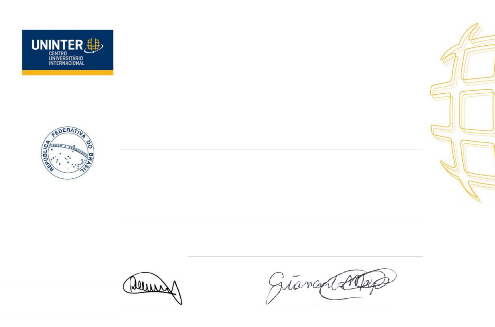 CERTIFICADOCERTIFICADO O Reitor do Centro Universitário Internacional UNINTER, confere aO Reitor do Centro Universitário Internacional UNINTER, confere a JUNIOR VALBER ARAUJO DA SILVAJUNIOR VALBER ARAUJO DA SILVA inscrito sob o CPF de número 216.038.547-62inscrito sob o CPF de número 216.038.547-62 o certificado de participação e aproveitamento no eventoo certificado de participação e aproveitamento no evento PROGRAMA MOMENTO CARREIRA | DESCUBRA O PODER DAPROGRAMA MOMENTO CARREIRA | DESCUBRA O PODER DA FORMAÇÃO CONTÍNUA PARA MANTER E IMPULSIONAR SUAFORMAÇÃO CONTÍNUA PARA MANTER E IMPULSIONAR SUA CARREIRA 11.07.24CARREIRA 11.07.24 Ofertado na modalidade Ofertado na modalidade - EAD, com carga horária de 2 hora/aula ofertado no período de- EAD, com carga horária de 2 hora/aula ofertado no período de 09 de julho de 2024 A 24 de agosto de 2024.09 de julho de 2024 A 24 de agosto de 2024. Prof. Dr. Benhur Etelberto GaioProf. Dr. Benhur Etelberto Gaio ReitorReitor Prof. Esp. Celso Giancarlo Duarte De MazoProf. Esp. Celso Giancarlo Duarte De Mazo Coordenador de Extensão e Assuntos ComunitáriosCoordenador de Extensão e Assuntos Comunitários Nome: JUNIOR VALBER ARAUJO DA SILVA Curso: PROGRAMA MOMENTO CARREIRA | DESCUBRA O PODER DA FORMAÇÃO CONTÍNUA PARA MANTER E IMPULSIONAR SUA CARREIRA 11.07.24 Área: PÓS-GRADUAÇÃO, PESQUISA E EXTENSÃO Registro Uninter: 4866505 Nível: Extensão Período da Realização: 09/07/2024 a 24/08/2024 COMPONENTES CURRICULARES C.H. NOTA FREQ. (%) DOCENTE PROGRAMA MOMENTO CARREIRA | DESCUBRA O PODER DA FORMAÇÃO CONTÍNUA PARA MANTER E IMPULSIONAR SUA CARREIRA 11.07.24 2h 100 100 SIDNEY DO CARMO FERREIRA DE LARA TOTAL: 2h DISCIPLINAS PROGRAMA MOMENTO CARREIRA | DESCUBRA O PODER DA FORMAÇÃO CONTÍNUA PARA MANTER E IMPULSIONAR SUA CARREIRA Histórico vinculado ao Certificado registrado sob o n.º 3073638 no Livro Eletrônico de Registros de Certificados de cursos do Centro Universitário Internacional - UNINTER, inscrito sob o CNPJ 02.261.854/0001-57 em conformidade RESOLUÇÃO Nº 7 DE 18 DE DEZEMBRO DE 2018 do Ministério da Educação e Cultura. Validação eletrônica disponível em , para validar o certificado utilize o CPF e a chave de acesso. Chave de acesso: 42024J3073638Q4866505