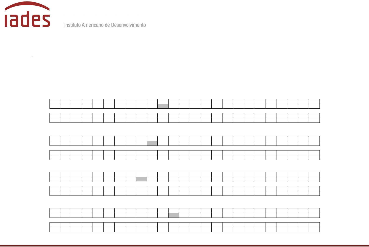 Instituto Americano de Desenvolvimento - IADES – www.iamericano.org.br Página 1 QE 32 Conjunto C Lote 2 – Guará II – Brasília – DF Fone: (61) 3574.7200 – Fax: (61) 3574.7200– e-mail: cac@iades.com.br ! CONCURSO PÚBLICO PARA PROVIMENTO DE VAGAS E FORMAÇÃO DE CADASTRO RESERVA PARA ANALISTA E TÉCNICO DE ATIVIDADES DO HEMOCENTRO DA CARREIRA ATIVIDADES DO HEMOCENTRO EDITAL No 01-SEPLAG/FHB, DE 10 DE NOVEMBRO DE 2016. GABARITO DEFINITIVO DAS PROVAS OBJETIVAS Analista de Atividades do Hemocentro – Especialidade: Administração (Código 101) 101 - Administração – Prova Tipo “A” 1 2 3 4 5 6 7 8 9 10 11 12 13 14 15 16 17 18 19 20 21 22 23 24 25 D B E C A D E C C B # A E A D A C B B D E C E B A Questão 11: anulada. 26 27 28 29 30 31 32 33 34 35 36 37 38 39 40 41 42 43 44 45 46 47 48 49 50 B C D E A B C D C B A E D E C A D E A C D E B A B 101 - Administração – Prova Tipo “B” 1 2 3 4 5 6 7 8 9 10 11 12 13 14 15 16 17 18 19 20 21 22 23 24 25 E C A D E C D B B # A C A D A E C B D E C B B E A Questão 10: anulada. 26 27 28 29 30 31 32 33 34 35 36 37 38 39 40 41 42 43 44 45 46 47 48 49 50 D E A B C D C B A E D E B C D E A C D E A B C A B 101 - Administração – Prova Tipo “C” 1 2 3 4 5 6 7 8 9 10 11 12 13 14 15 16 17 18 19 20 21 22 23 24 25 D E C D B E C A # A C B E D A B A C E C B D E B A Questão 9: anulada. 26 27 28 29 30 31 32 33 34 35 36 37 38 39 40 41 42 43 44 45 46 47 48 49 50 A B C D C B A E D E B C D E A C D E B A C D B A E 101 - Administração – Prova Tipo “D” 1 2 3 4 5 6 7 8 9 10 11 12 13 14 15 16 17 18 19 20 21 22 23 24 25 D B D E C E C A A C B # C A B E A D C B E D B E A Questão 12: anulada. 26 27 28 29 30 31 32 33 34 35 36 37 38 39 40 41 42 43 44 45 46 47 48 49 50 C D C B A E D E B C D E A B D B E A A B C D E C A Instituto Americano de Desenvolvimento - IADES – www.iamericano.org.br Página 2 QE 32 Conjunto C Lote 2 – Guará II – Brasília – DF Fone: (61) 3574.7200 – Fax: (61) 3574.7200– e-mail: cac@iades.com.br ! Analista de Atividades do Hemocentro – Especialidade: Analista de Laboratório (Código 102) 102 - Analista de Laboratório – Prova Tipo “A” 1 2 3 4 5 6 7 8 9 10 11 12 13 14 15 16 17 18 19 20 21 22 23 24 25 D B E C A D E C C B # A E A D A C B B D E C E B A Questão 11: anulada. 26 27 28 29 30 31 32 33 34 35 36 37 38 39 40 41 42 43 44 45 46 47 48 49 50 D C E A E A B D # D E B B D A B C C E E C A C D A Questão 34: anulada. 102 - Analista de Laboratório – Prova Tipo “B” 1 2 3 4 5 6 7 8 9 10 11 12 13 14 15 16 17 18 19 20 21 22 23 24 25 E C A D E C D B B # A C A D A E C B D E C B B E A Questão 10: anulada. 26 27 28 29 30 31 32 33 34 35 36 37 38 39 40 41 42 43 44 45 46 47 48 49 50 E E A A B D # D E B B D A B D C E E C A C D A C C Questão 32: anulada. 102 - Analista de Laboratório – Prova Tipo “C” 1 2 3 4 5 6 7 8 9 10 11 12 13 14 15 16 17 18 19 20 21 22 23 24 25 D E C D B E C A # A C B E D A B A C E C B D E B A Questão 9: anulada. 26 27 28 29 30 31 32 33 34 35 36 37 38 39 40 41 42 43 44 45 46 47 48 49 50 E A D B # D E B B A D B D C E A A C C D A C E E C Questão 30: anulada. 102 - Analista de Laboratório – Prova Tipo “D” 1 2 3 4 5 6 7 8 9 10 11 12 13 14 15 16 17 18 19 20 21 22 23 24 25 D B D E C E C A A C B # C A B E A D C B E D B E A Questão 12: anulada. 26 27 28 29 30 31 32 33 34 35 36 37 38 39 40 41 42 43 44 45 46 47 48 49 50 B D # B D E B D A B D C E A E A C D A C C E E A C Questão 28: anulada. Instituto Americano de Desenvolvimento - IADES – www.iamericano.org.br Página 3 QE 32 Conjunto C Lote 2 – Guará II – Brasília – DF Fone: (61) 3574.7200 – Fax: (61) 3574.7200– e-mail: cac@iades.com.br ! Analista de Atividades do Hemocentro – Especialidade: Arquivologia (Código 103) 103 - Arquivologia – Prova Tipo “A” 1 2 3 4 5 6 7 8 9 10 11 12 13 14 15 16 17 18 19 20 21 22 23 24 25 D B E C A D E C C B # A E A D A C B B D E C E B A Questão 11: anulada. 26 27 28 29 30 31 32 33 34 35 36 37 38 39 40 41 42 43 44 45 46 47 48 49 50 A B C D E A B C D C E D E A B B A D E A B D E E C 103 - Arquivologia – Prova Tipo “B” 1 2 3 4 5 6 7 8 9 10 11 12 13 14 15 16 17 18 19 20 21 22 23 24 25 E C A D E C D B B # A C A D A E C B D E C B B E A Questão 10: anulada. 26 27 28 29 30 31 32 33 34 35 36 37 38 39 40 41 42 43 44 45 46 47 48 49 50 D E A B C D C E D E A B A B C D E A B D E E C B A 103 - Arquivologia – Prova Tipo “C” 1 2 3 4 5 6 7 8 9 10 11 12 13 14 15 16 17 18 19 20 21 22 23 24 25 D E C D B E C A # A C B E D A B A C E C B D E B A Questão 9: anulada. 26 27 28 29 30 31 32 33 34 35 36 37 38 39 40 41 42 43 44 45 46 47 48 49 50 B C D C E D E A B A B C D E A A B D E E C B A D E 103 - Arquivologia – Prova Tipo “D” 1 2 3 4 5 6 7 8 9 10 11 12 13 14 15 16 17 18 19 20 21 22 23 24 25 D B D E C E C A A C B # C A B E A D C B E D B E A Questão 12: anulada. 26 27 28 29 30 31 32 33 34 35 36 37 38 39 40 41 42 43 44 45 46 47 48 49 50 C E D E A B A B C D E A B C D D E E C B A D E A B Instituto Americano de Desenvolvimento - IADES – www.iamericano.org.br Página 4 QE 32 Conjunto C Lote 2 – Guará II – Brasília – DF Fone: (61) 3574.7200 – Fax: (61) 3574.7200– e-mail: cac@iades.com.br ! Analista de Atividades do Hemocentro – Especialidade: Assistência Social (Código 104) 104 - Assistência Social – Prova Tipo “A” 1 2 3 4 5 6 7 8 9 10 11 12 13 14 15 16 17 18 19 20 21 22 23 24 25 D B E C A D E C C B # A E A D A C B B D E C E B A Questão 11: anulada. 26 27 28 29 30 31 32 33 34 35 36 37 38 39 40 41 42 43 44 45 46 47 48 49 50 C E A D A E B C E B D A A D C A C D B E B D C E B 104 - Assistência Social – Prova Tipo “B” 1 2 3 4 5 6 7 8 9 10 11 12 13 14 15 16 17 18 19 20 21 22 23 24 25 D B E C A D E C C # C A E A D A C B B D E C E B A Questão 10: anulada. 26 27 28 29 30 31 32 33 34 35 36 37 38 39 40 41 42 43 44 45 46 47 48 49 50 D A E A B C E B D A C E C A C D B E B D E C B A D 104 - Assistência Social – Prova Tipo “C” 1 2 3 4 5 6 7 8 9 10 11 12 13 14 15 16 17