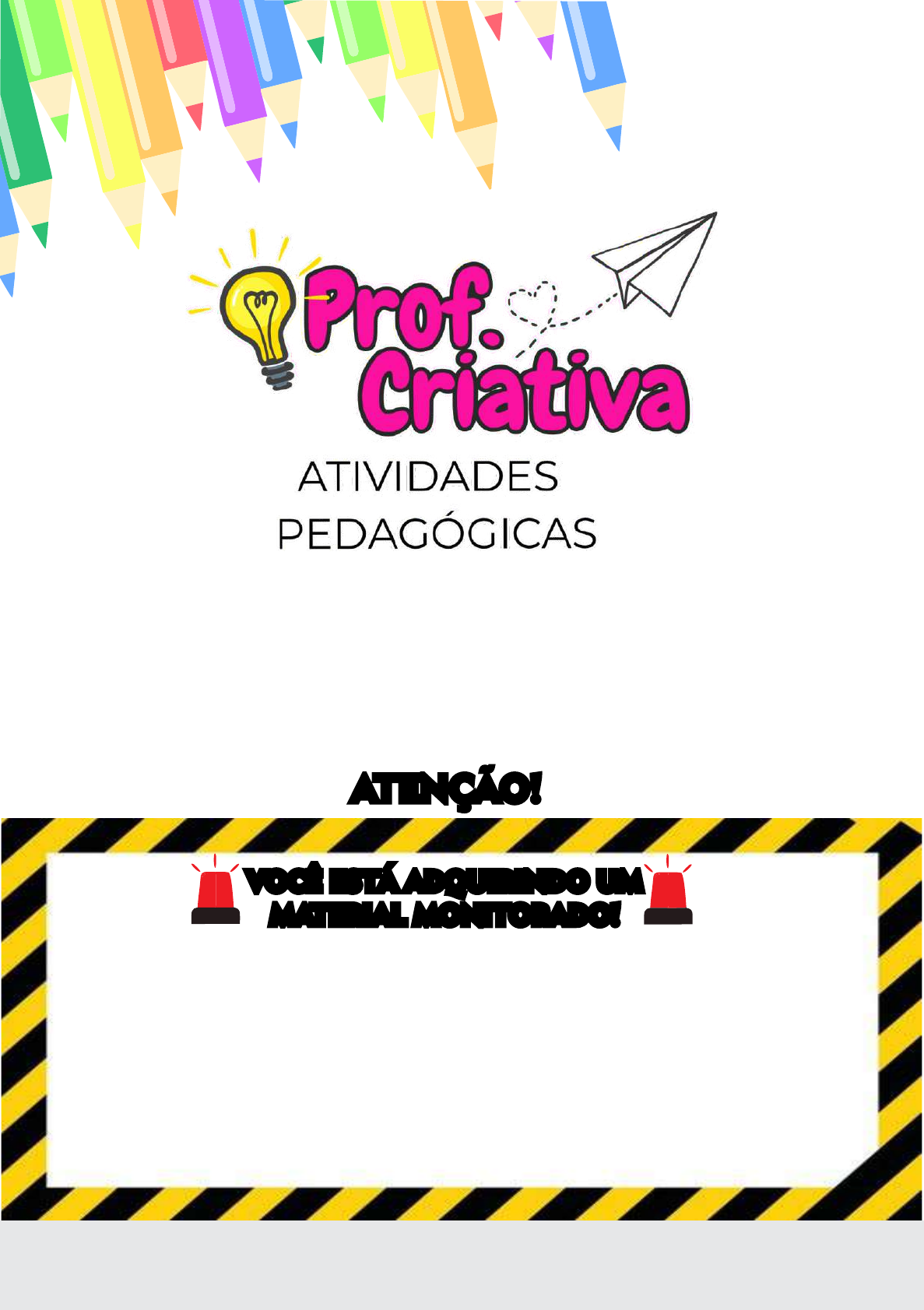 KIT DE CORDEL INFANTIL ATENÇÃO! VOCÊ ESTÁ ADQUIRINDO UM MATERIAL MONITORADO! Este material está protegido pela Lei de Direitos Autorais: Lei 9.610/98. É fornecido exclusivamente para uso PESSOAL/PROFISSIONAL. É PROIBIDO O SEU COMPARTILHAMENTO (COMO GRUPOS DE WHATSAPP E OUTROS) E REVENDA! Qualquer violação dos direitos autorais pode resultar em ações legais. SEU UNIVERSO EDUCACIONAL ESTÁ PRESTES A SE TORNAR AINDA MAIS VIBRANTE! AGRADECEMOS POR NOS ESCOLHER! INSTRUÇÕES E SUGESTÕES - Dicas para impressão, utilizar papel A4 na gramatura 180 ou papel fotográfico glossy gramatura 180. - Para maior durabilidade deve-se plastificar o material. Será um prazer ver o produto que você comprou em uso! Compartilhe conosco marcando nosso perl! profcriativainsta Este material está protegido pela Lei de Direitos Autorais: Lei 9.610/98. Proibido o seu compartilhamento! LIVRINHO DE CORDEL INSTRUÇÕES PARA MONTAR 1. e 2. Dobre ao meio, seguindo a orientação das linhas, deixando-as bem alinhadas. 3. Marque bem as dobras. 4. Com a ajuda de uma régua e estilete, corte o livrinho já dobrado para otimizar o tempo. 5. Abra o livrinho e cole as extremidades e a divisória do meio. 6. Para finalizar, alinhe o livrinho após passar a cola. 1 2 3 4 5 6 CAIXINHA INSTRUÇÕES PARA MONTAR 1. Recortar, dobrar e colar. 2. Colocar os cordéis dentro da caixinha. Este material está protegido pela Lei de Direitos Autorais: Lei 9.610/98. Proibido o seu compartilhamento! POESIA E CULTURA NORDESTINA ORDEL ENCANTADO Página 1 Página 2 Página 3 Página 4 Página 5 Página 6 Página 7 Página 8 Página 9 Página 10 Página 11 Página 12 Página 13 Página 14 Página 15 Página 16 Página 17
