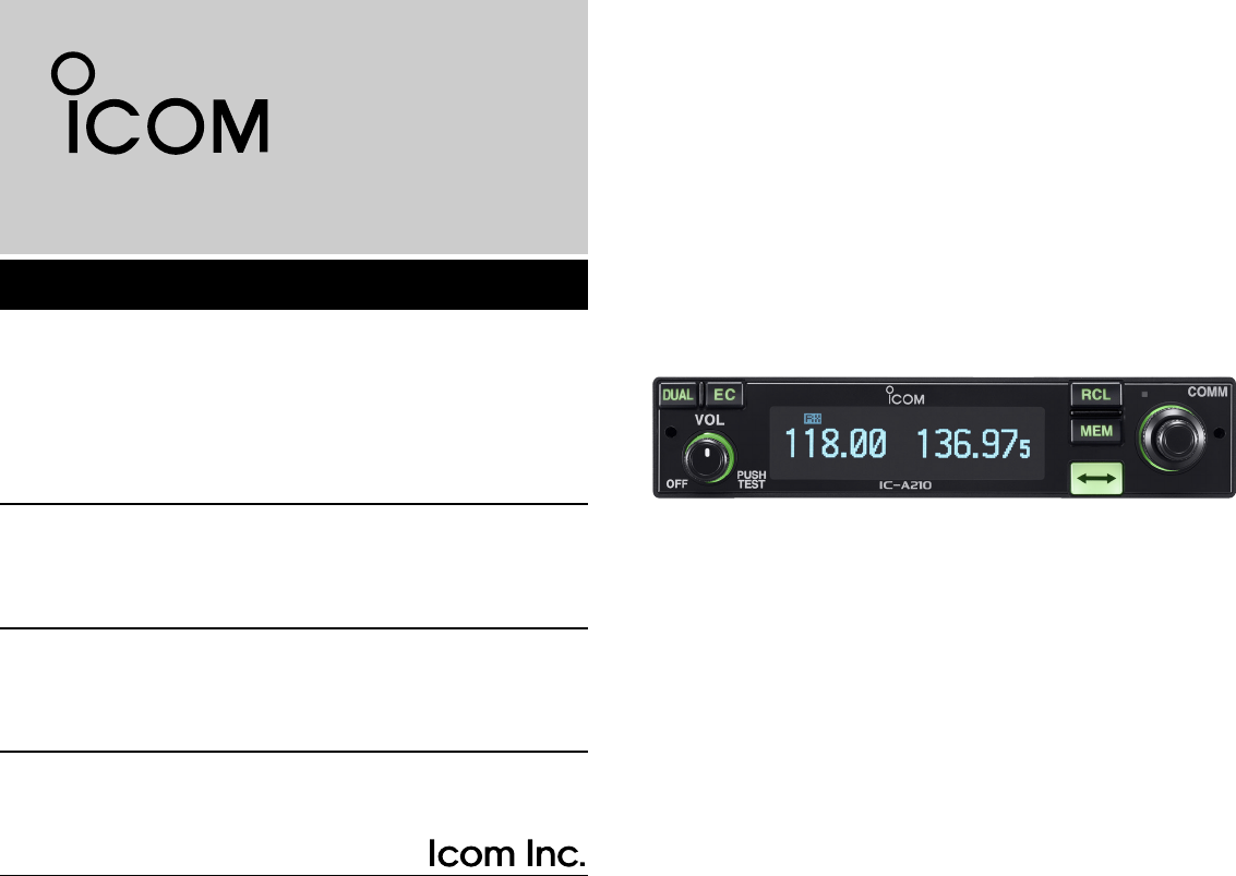 source. The IC-A210 is easily installed in most airplanes or vehicles.