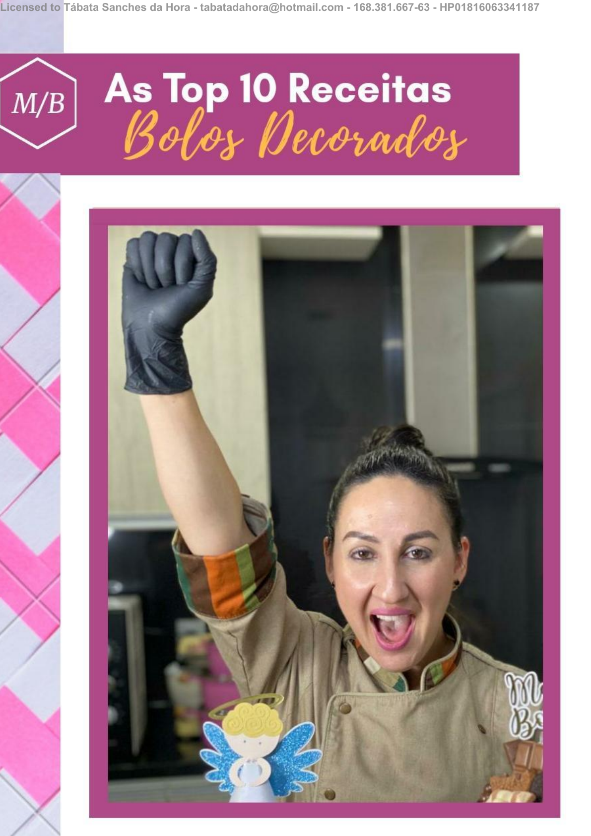 Apostila As TOP 10 Receitas – Bolos Decorados – Marrara Bortoloti 0 Capa Licensed to Tábata Sanches da Hora - tabatadahora@hotmail.com - 168.381.667-63 - HP01816063341187 Apostila As TOP 10 Receitas – Bolos Decorados – Marrara Bortoloti 1 Boas Vindas 02 Massa de Chocolate 03 Massa Base Branca 05 Pão de Ló 07 Recheio Branquinho 09 Recheio de Brigadeiro 1 1 Caldas 13 Bolo Prensado 14 Bolo Básico Para Vender 1 6 Bolo Para Pronta Entrega 18 Bolo Unicórnio 20 Bolo Dois Andares 22 Bolo Com M&M’S 24 Bolo Dois Andares com Chantily 26 Bolo com Cerveja 28 Bolo Kinder com Nutella 30 Bolo Para Dia das Mães 32 Bolo Para Dia dos Pais 34 Agradecimentos 36 Contatos 37 ÍNDICE Licensed to Tábata Sanches da Hora - tabatadahora@hotmail.com - 168.381.667-63 - HP01816063341187 Apostila As TOP 10 Receitas – Bolos Decorados – Marrara Bortoloti 2 Primeiro quero te dar os parabéns e dizer que fico imensamente feliz por ter você aqui no meu Curso Mini Tortas Lucrativas, seja muito bem-vinda. Se você ainda não me conhece muito bem, vou falar um pouquinho de mim... Me chamo Marrara Bortoloti, tenho 31 anos, sou mãe, esposa e produtora dos cursos Escola de Bolo By Marrara, Páscoa Lucrativa e agora o Curso Mini Tortas Lucrativas, em que irei te ensinar absolutamente TUDO sobre essas lindas e fofas mini tortinhas. Quero ver você motivada e cheia de entusiasmo em nosso curso, o pensamento positivo é metade do caminho para a realização dos nossos sonhos. Aqui vou te passar um passo a passo das receitas, decorações e estratégias de vendas muito eficientes para você de fato iniciar sua jornada como confeiteira e ter muito sucesso em tempo recorde. Faça tudo certinho, não pule as aulas e o mais importante, não desista na primeira massa que não crescer...Seja persistente! Pensei muito no que eu realmente queria quando decidi criar esse novo curso, pois eu já tinha a Escola de Bolo que é meu curso Completo para iniciantes. Mas eu queria era que mais pessoas tivessem acesso a uma oportunidade de iniciar nessa carreira tão linda e tão inspiradora, que mais pessoas fizessem exatamente o que eu fiz, iniciando com essas mini tortas e experimentassem o gostinho da liberdade financeira apenas produzindo e vendendo essas mini tortas todos os dias. Mas é como eu sempre falo, não existe vitória sem luta! Você vai precisar arregaçar as mangas e trabalhar muito. Se planejar, se organizar e criar uma rotina de produção e vendas correta e eficiente. Agora chega de conversa e vamos colocar a mão na massa.... Novamente seja bem vinda ao mundo das Mini tortas lucrativas!! Com carinho, Marrara Bortoloti. BOAS VINDAS Licensed to Tábata Sanches da Hora - tabatadahora@hotmail.com - 168.381.667-63 - HP01816063341187 Apostila As TOP 10 Receitas – Bolos Decorados – Marrara Bortoloti 3 INGREDIENTES 4 Ovos 1 Xícara de leite 1 Xícara de óleo 2 Xícaras de farinha de trigo 1 ½ Xícara de açúcar 3 Colheres de chocolate em pó 100% ou 50% 1 Colher (sopa) de fermento em pó 1 Colher (chá) rasa de bicarbonato de sódio MODO DE PREPARO Bata todos os ingredientes com exceção da farinha de trigo no liquidificador por 3 minutos. Transfira a mistura para uma vasilha e vá acrescentando aos poucos a farinha de trigo peneirada e mexendo até ficar uma massa homogênea. Por último acrescente o fermento em pó e o bicarbonato de sódio e mexa delicadamente. Pronto! Agora asse em forno médio pré-aquecido a 200 graus por mais ou menos 45 a 50 minutos. Essa receita é para uma forma de 20cm X 10cm de altura. Dica: Você pode bater essa massa também na batedeira, caso seu liquidificador não seja muito potente. MASSA DE CHOCOLATE Licensed to Tábata Sanches da Hora - tabatadahora@hotmail.com - 168.381.667-63 - HP01816063341187 Apostila As TOP 10 Receitas – Bolos Decorados – Marrara Bortoloti 4 Licensed to Tábata Sanches da Hora - tabatadahora@hotmail.com - 168.381.667-63 - HP01816063341187 Apostila As TOP 10 Receitas – Bolos Decorados – Marrara Bortoloti 5 INGREDIENTES 4 ovos 2 Xícaras de 200ml, de farinha de trigo 2 Xícaras de 200ml, de açúcar 1 Xícara de 200ml de água fervendo 1 Colher (sopa) rasa de fermento em pó 1 Colher (sopa) de essência de baunilha MODO DE PREPARO Comece separando as claras, batendo elas em neve e reserve. Na batedeira, bata as gemas com água fervente até crescer mais que o dobro e aos poucos coloque o açúcar formando um creme bem fofinho. Agora acrescente a farinha de trigo e misture bem, por último coloque as claras em neve e o fermento. Leve ao forno médio, pré-aquecido em 200 graus por aproximadamente 30 minutos ou até começar a dourar. Essa receita é para uma forma de 20cm X 10cm Dica: Para molhar sua massa branca e seu bolo ficar ainda mais delicioso, te recomendo umedecer com a calda base de leite condensado. MASSA BASE BRANCA Licensed to Tábata Sanches da Hora - tabatadahora@hotmail.com - 168.381.667-63 - HP01816063341187 Apostila As TOP 10 Receitas – Bolos Decorados – Marrara Bortoloti 6 Licensed to Tábata Sanches da Hora - tabatadahora@hotmail.com - 168.381.667-63 - HP01816063341187 Apostila As TOP 10 Receitas – Bolos Decorados – Marrara Bortoloti 7 INGREDIENTES 2 Ovos 1 Xícara de açúcar 2 Xícaras de farinha de trigo 200 ml de água 1 Colher de fermento MODO DE PREPARO Bata os ovos por 3 minutos na batedeira até ficar bem branquinho e ainda com a batedeira ligada vá acrescentando o açúcar aos poucos e depois a água morna. Bata bem essa mistura e vá acrescentando a farinha de trigo e bata por mais 3 minutos. Por ultimo coloque o fermento em pó e mistura manualmente. Asse em forno médio pré-aquecido em 180 graus por aproximadamente 30 minutos. Essa receita é para uma forma de 20cm X 10cm Dica: Para seu pão de ló crescer ainda mais uniforme, não unte as laterais da forma. PÃO DE LÓ Licensed to Tábata Sanches da Hora - tabatadahora@hotmail.com - 168.381.667-63 - HP01816063341187 Apostila As TOP 10 Receitas – Bolo
