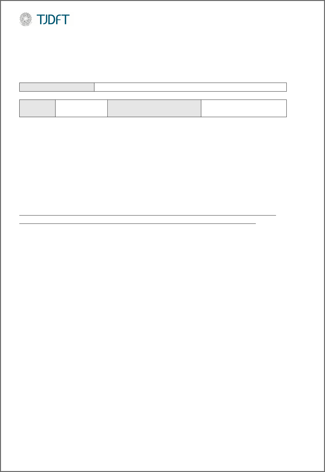 Poder Judiciário da União TRIBUNAL DE JUSTIÇA DO DISTRITO FEDERAL E DOS TERRITÓRIOS Secretaria-Geral da Corregedoria - SGC Secretaria de Administração de Mandados e Guarda de Bens Judiciais - SEAMB ANEXO V Formulário – Serviço Social Nome completo CPF Inscrição no Órgão de Classe Marque S (SIM) ou N (Não) ( ) Comprovada experiência profissional no atendimento a famílias; ( ) Experiência enquanto assistente técnico ou capacitação no âmbito sociojurídico; ( ) Não vinculação anterior às partes envolvidas. Conhecimento da seguinte publicação: ( ) O Estudo social em perícias, laudos e pareceres técnicos – Contribuição ao debate no judiciário, penitenciário e na previdência social. São Paulo, Editora Cortez, 2005. Proposta de Trabalho Especificar a natureza dos processos judiciais em que almeja atuar como perito (cível, criminal), a clientela (crianças, adultos, idosos, entre outras), temáticas (abuso sexual, disputa de guarda, alienação parental, interdição, entre outras), bem como comprovação de experiência nas respectivas áreas. Fazer constar de maneira geral: 1- Os procedimentos utilizados pelo profissional no trabalho pericial, tais como: atendimentos, visitas domiciliares/institucionais, contatos com outros profissionais, entre outros; 2 - Instrumentais técnicos utilizados na perícia, tais como, testes psicológicos, entrevistas, dinâmicas de grupo, técnicas lúdicas, etc. Brasília, de de 202_. ______________________ Assinatura