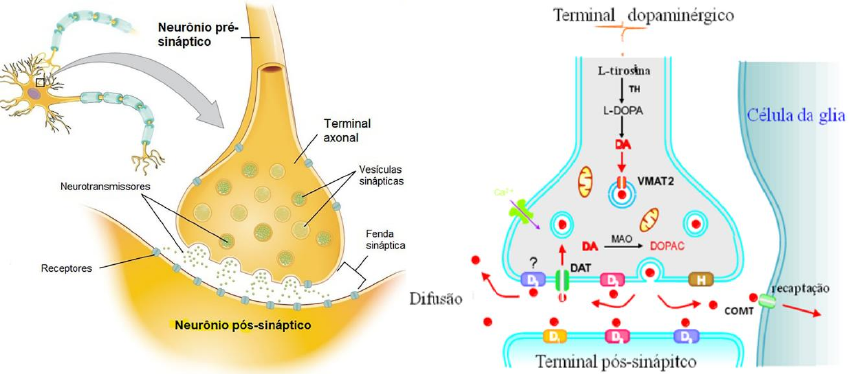 Aluna: Adrielly Beatriz de Oliveira Melo N USP: 11814673 Efeito da cocaína na sinalização celular da dopamina. A dopamina é um neurotransmissor que atua no sistema nervoso central. Ela é uma catecolamina simpaticomimética endógena e realiza o controle de funções motoras, estimulação da memória, concentração, regulamentação do humor, estresse e sensação de prazer. Ela é produzida por neurônios dopaminérgicos que se projetam para o núcleo accumbens do cérebro pela via mesolímbica. É sintetizada a partir do aminoácido tirosina, que é transformado em DOPA ao sofrer a ação da enzima tirosina hidroxilase, a DOPA por sua vez, sofre a ação de descarboxilação gerando a dopamina. Logo após, ela é armazenada nas vesículas dos terminais pré-sinápticos sendo liberada na fenda sináptica por exocitose quando houver um estímulo neuronal. Ao ocorrer o estímulo neuronal em consequência da entrada de cálcio, a dopamina é liberada na fenda e pode interagir com seus receptores de membrana D1 (pós-sinápticos), acoplados a proteína Gs (estimulatória) formando o AMPc e a atividade da PKA, ou com os receptores D2 (pré- sinápticos), acoplados a proteína Gi que inibe a formação do AMPc. Além disso, a dopamina pode ser também recaptada para o terminal pré- sináptico pelos transportadores dopaminérgicos (DTA), onde será metabolizada ou armazenada. A cocaína se liga ao DAT bloqueando a recaptação de dopamina para o terminal pré-sináptico, o que aumenta a concentração do neurotransmissor na fenda sináptica, potencializando a transmissão e, assim, aumenta a liberação da dopamina no núcleo accumbens, levando a uma euforia anormal e a uma sensação de prazer e recompensa. O mecanismo celular consiste em: Após a produção de dopamina no neurônio e a sua liberação na fenda sináptica (1), já explicada anteriormente, a dopamina liga-se ao receptor D1 que produz o AMPc e o PKA, este último entra no núcleo celular (2), na qual ocorre fosforilação ativando a proteína CREB que permite a transcrição dependente de RNA-polimerase II de genes (3) originando novas proteínas (4) que promovem o aprendizado associativo ao estímulo e a neuroplasticidade (5). Os opióides endógenos ou exógenos também atuam de forma direta ou indireta contribuindo na liberação de dopamina do núcleo accumbens reforçando a neuroplasticidade e o risco de adicção. Adicção é um comportamento que afeta diretamente as emoções e leva a condição de dependência do indivíduo. As drogas de abuso, como a cocaína, desencadeiam esse efeito uma vez que atuam como reforçadores positivos levando às sensações de euforia, alívio e prazer. Essas sensações aumentam o desejo do indivíduo de consumir a droga novamente podendo gerar um ciclo vicioso de dependência Portanto, concluímos que a presença da dopamina é de extrema importância para a regulação motora do nosso organismo, mas quando em grande quantidade causada pelos efeitos de drogas como a cocaína geram efeitos satisfatórios momentâneos que podem causar dependência. Referências: • SMITH, Fran. Como o cérebro consegue consegue combater os vícios. National Geographic. Disponível em: . Acesso em 23 de jul, 2021. • LEPSCH, Lucília. Toxicidade causada pela cocaína in vitro: participação da via dopaminérgica e do fator de transcrição NF-KB. Disponível em: . Acesso em: 23 de jul, 2021. • MILHOMEM, Lucas. Dopamina, o que é? Definição, função, características e implicações. Conhecimento Científico, 2020. Disponível em: . Acesso em: 23 de jul, 2021. • CÂMARA, Brunno. Como a cocaína age no cérebro. Biomedicina padrão, 2011. Disponível em: . Acesso em: 23 de jul, 2021. • ESTEVINHO, Maria e FORTUNATO, J. Dopamina e Receptores. Revista Portuguesa de Psicossomática, 2003. Disponível em: . Acesso em: 23 de jul, 2021. https://nationalgeographic.pt/ciencia/grandes-reportagens/1555-como-o-cerebro-consegue-combater-os-vicios/amp https://nationalgeographic.pt/ciencia/grandes-reportagens/1555-como-o-cerebro-consegue-combater-os-vicios/amp file:///C:/Users/Adry/Downloads/LuciliaBrochadoLepsch_Doutorado.pdf file:///C:/Users/Adry/Downloads/LuciliaBrochadoLepsch_Doutorado.pdf https://conhecimentocientifico.r7.com/dopamina-2/?amp https://www.biomedicinapadrao.com.br/2011/07/como-cocaina-age-no-cerebro.html?m=1 https://www.biomedicinapadrao.com.br/2011/07/como-cocaina-age-no-cerebro.html?m=1 http://www.redalyc.org/articulo.oa?id=28750103