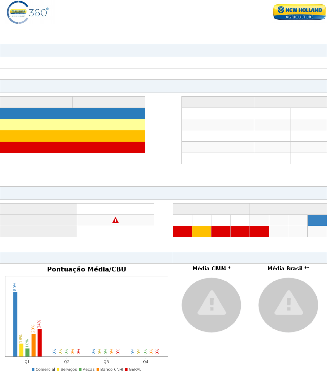 Página 1 Relatório de Análise de Performance Consolidado Gerenciamento de Performance - Concessionários Trimestre: 2019 - Q4 Critérios de Pontuação e Classificação de Performance Performance Faixa Pontuação Máxima Alto 800 1000 Comercial 250 25% Médio 600 799 Serviços 250 25% Baixo 400 599 Peças 250 25% Crítico 0 399 Banco CNHI 250 25% Total 1000 100% Pontuação e Classificação Periodo: Outubro - Dezembro (2019) 2018 2019 Pontuação: Q1 Q2 Q3 Q4 Q1 Q2 Q3 Q4 Classificação: - Crítico Baixo Crítico Crítico Crítico Performance por Área: Outubro - Dezembro (2019) Performance Concessionário: (CBU / Brasil) *Média dos concessionários que fazem parte da mesma unidade comercial de negócio (CBU) **Média de todos os concessionários [Brasil] Página 2 Relatório de Análise de Performance Consolidado Avaliação do Período: Outubro - Dezembro (2019) Máximo Concess. % Média CBU* % Média Brasil** % 1000 - - - Comercial 250 - - - KPI1 Cumprimento dos objetivos máquinas (TR - CO - SP - PL) 100 - - - KPI2 Programação de pedidos de máquinas (TR - CO - SP - PL) 50 - - - KPI3 Estoque (FMS) 50 - - - KPI4 Consórcio - Atingimento do objetivo de cotas 50 - - - Serviços 250 - - - KPI1 Pesquisa NPS (Net Promoter Score) 80 - - - KPI2 Índice de Absorção do Pós-Vendas 40 - - - KPI3 Conclusão de Campanhas PMP 40 - - - KPI4 Produtividade da Oficina 40 - - - KPI5 Cumprimento Percurso Formativo (Treinamentos Online) 30 - - - KPI6 Cumprimento Percurso Formativo (Treinamento Presencial) 20 - - - Peças 250 - - - KPI1 Cumprimento de objetivo compra (Sell in) ou objetivo de vendas (Sell out) 100 - - - KPI2 Reposição do estoque de peças 45 - - - KPI3 Retirada de peças (PLM - Agricultura de Precisão) 50 - - - KPI4 Cumprimento de Objetivos NexPro 30 - - - KPI5 Cumprimento dos objetivos de retirada de lubrificantes junto a fabrica 25 - - - Banco CNHI 250 - - - KPI1 EBITDA/Receita Líquida 20 - - - KPI2 Lucratividade (PBT - lucro antes dos impostos) - Geração de resultados em relação às receitas 40 - - - KPI3 Liquidez Corrente (Capacidade de pagamento através do quociente entre ativos e passivos curto prazo) 15 - - - KPI4 Endividamento (% capital próprio em relação aos ativos ou passivos totais) 20 - - - KPI5 Retorno sobre o Patrimônio Líquido (ROE) - Geração de resultados em relação ao Patrimônio Líquido 25 - - - KPI6 Wholesale - Auditoria dos Estoques 20 - - - Página 3 Relatório de Análise de Performance Consolidado KPI7 Wholesale - Inadimplência (Past Due > 30 dias) 20 - - - KPI8 Wholesale - % limite utilizado de recursos sobre o limite contratado (soma de todos os limites) 30 - - - KPI9 Wholesale - Ageing (% de máquinas acima de 120 dias, a contar da data de faturamento fábrica) 10 - - - KPI10 Retail - Penetration (% de negócios realizados com o Banco CNH sobre as vendas financiadas) 25 - - - KPI11 Retail - Cycle Time (Tempo médio em dias no processo de financiamento Retail do Banco CNH) 25 - - - Página 4 Relatório de Análise de Performance Consolidado Plano de Ação Id Origem Prioridade Ação Responsável Prazo % Não Existem Ações para Essa Concessionária