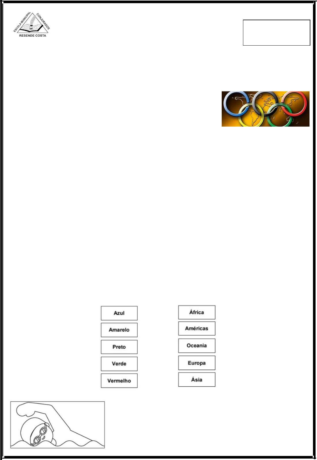 ESCOLA MUNICIPAL “CONJURADOS RESENDE COSTA” AVALIAÇÃO DE LÍNGUA PORTUGUESAValor: ___ pontos. Nota: ___ pontos. pontos. Nota: ppppppppooooooooo__________ ___ pontos. 4º ANO – 3º BIMESTRE Aluno (a): ______________________________________________________________________ Professora: ____________________________________________ Data: ____/____/____ Jogos Olímpicos Os Jogos Olímpicos são considerados como um dos maiores eventos esportivos do mundo. Esses jogos acontecem a cada quatro anos e são divididos entre as edições de verão e de inverno. No ano de 2024, os jogos olímpicos aconteceram em Paris. Uma das imagens mais marcantes das Olimpíadas é a bandeira com os anéis olímpicos, simbolizando a união entre os cinco continentes. Cada anel possui uma cor distinta, associada a um continente específico: o azul representa a Europa, o amarelo a Ásia, o preto a África, o verde a Oceania e o vermelho as Américas. Os Jogos Olímpicos são uma oportunidade para os atletas mostrarem todo o seu talento e dedicação, além de promover a união e a paz entre as nações. Entre as modalidades praticadas nesses jogos, estão vários tipos de esportes como atletismo, natação, judô, vôlei, entre muitos outros. Fonte: tudosaladeaula.com 1) Qual é o intervalo de anos entre a realização dos Jogos Olímpicos? ______________________________________________________________________________ 2) Liste três modalidades esportivas presentes nos Jogos Olímpicos. ______________________________________________________________________________ 3) Em que cidade da Europa aconteceram os Jogos Olímpicos no ano de 2024? ______________________________________________________________________________ 4) Conforme o texto lido, os anéis olímpicos representam A) ( ) a alegria dos atletas participantes. B) ( ) a força e coragem dos brasileiros. C) ( ) a união dos cinco continentes. D) ( ) a paz e dedicação dos atletas. 5) Ligue de acordo com a cor que representa cada continente dos anéis olímpicos. 6) A imagem abaixo representa um esporte praticado nos jogos olímpicos. Veja. Que esporte é esse? _______________________________________ A lenda da vitória-régia Um dia, uma formosa índia, chamada Naiá, apaixonou-se pela lua. Sentia-se atraída por ela e, como quisesse alcançá-la, correu, correu por vales e montanhas, atrás dela. Porém quanto mais corria, mais longe e alta ela ficava. Desanimou de alcançá-la e voltou para a taba. A lua aparecia e fugia sempre, e Naiá cada vez mais a desejava. Uma noite, andando pelas matas ao clarão do luar, Naiá se aproximou de um lago e viu, nele refletida, a imagem da lua. Sentiu-se feliz, julgou poder agora alcançá-la e, atirando-se às águas claras do lago, afundou. Nunca mais ninguém a viu, mas Tupã, com pena dela, transformou-a nesta linda planta que floresce em todas as luas. Entretanto, Uapê só abre suas pétalas à noite, para poder abraçar a lua, que se vem refletir em sua aveludada corola. Eis aí, como nasceu, da imaginação fértil e criadora de nossos índios, a história da vitória-régia, ou Uapê, ou Iapunaquê-uapê, a maior flor do mundo. Fonte: https://silescorsin.blogspot.com/2012/04/texto-e-interpretacao_5395.html 7) O texto acima é: A) ( ) Receita B) ( ) Poema C) ( ) Lenda D) ( ) Bilhete 8) Você conhece outras lendas? Escreva o nome de duas. ______________________________________________________________________________ ______________________________________________________________________________ 9) De acordo com as informações dadas no texto, por que a vitória-régia só abre suas pétalas à noite? ______________________________________________________________________________ ______________________________________________________________________________ 10) Com a criação dessa lenda, os índios queriam explicar como nasceu a vitória-régia que é A) ( ) Uma lua. C) ( ) Uma mulher. B) ( ) A maior flor do mundo. D) ( ) O sétimo filho de um casal. Palavra A palavra PALAVRA é cheia de mistérios. azedume e doçura, liberdade e prisão, verdade e mentira, alegria e tristeza, voo livre e perigo. Elias José. O jogo das palavras mágicas. São Paulo. Paulinas. 2000. 11) Observe que em quatro versos estão destacados pares de palavras. Em cada par, as palavras têm sentido semelhante ou oposto? ______________________________________________________________________________ 12) As palavras destacadas no poema formam pares de antônimos ou de sinônimos? ______________________________________________________________________________ 13) Copie do texto os antônimos das palavras. A) azedume: ________________________ C) prisão: ___________________________ B) verdade: _________________________ D) tristeza: __________________________ · Leia o texto abaixo para responder às seguintes questões. Menino telefona para a polícia para pedir ajuda com dever de matemática nos EUA Garoto de 10 anos do Colorado não sabia fazer divisão. Por G1 27/09/2018 12h37 A polícia do estado americano do Colorado divulgou um áudio em que um menino de 10 anos liga para o telefone de emergência para pedir ajuda com seu dever de casa de matemática. O caso ocorreu em Fort Collins. O garoto relata ao policial que atendeu ao telefone que não sabe como dividir 3.052 por 71. Chris Clow, o policial, deu a resposta correta para o garoto: 42,9. A polícia lembrou que o telefone de emergência deve ser usado apenas para emergências reais. 14) Por que o menino telefonou para a polícia? A) ( ) A casa dele foi assaltada. B) ( ) Ele sofreu um acidente. C) ( ) Ele precisava de ajuda com o dever de matemática. D) ( ) Provavelmente ele é um péssimo aluno. 15) Qual é o gênero textual do texto? A) ( ) Poesia B) ( ) Crônica C) ( ) Notícia D) ( ) Fábula 16) Qual é a data da publicação? A) ( ) vinte cinco de maio dois mil e vinte e dois. B) ( ) vinte e sete de junho de dois mil e dezoito. C) ( ) vinte e seis de setembro de dois mil e dezoit