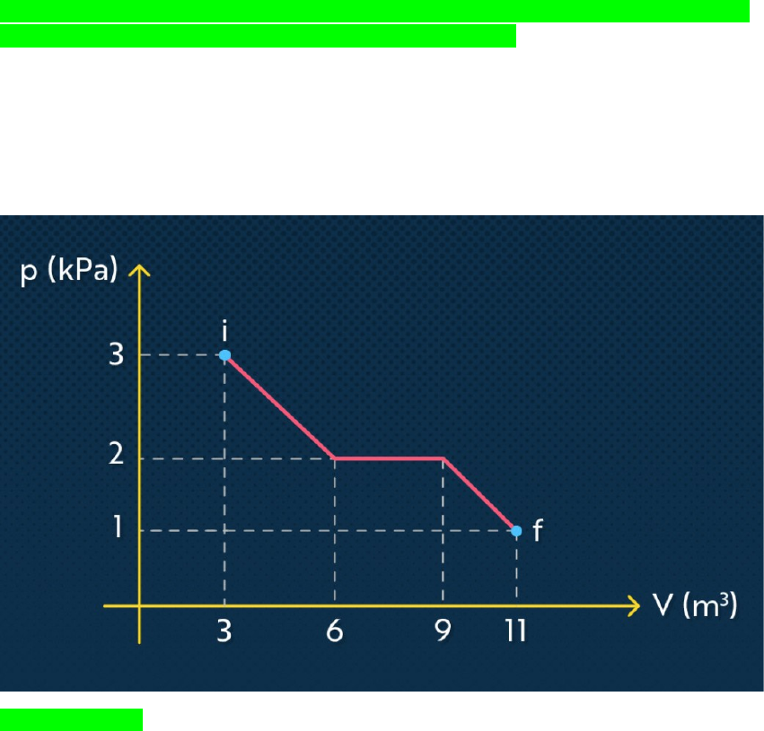 1. A Primeira Lei da Termodinâmica foi fundamental quando finalmente o conceito de calor foi estabelecido de forma precisa e concreta por James Prescott Joule. Assim, o calor deixou de ser uma substância hipotética, chamada calórico, e passou a ser energia em trânsito. Qual das alternativas a seguir tem a opção correta do sentido da transferência de calor e o sinal algébrico quando o sistema recebe calor? D. O calor vai do corpo com mais energia para o corpo com menos energia. Quando o sistema recebe calor, seu sinal é positivo. 2.O motor de um carro é uma máquina térmica cíclica, e a primeira parte do ciclo termodinâmico de um motor a combustão passa por alguns processos de expansão. Em um processo termodinâmico hipotético de expansão, um gás passa pelo processo descrito no diagrama pV da figura: C. W = 16,5kJ. 3. A panela de pressão utilizada para cozinhar os alimentos realiza um processo termodinâmico que aumenta a pressão no seu interior conforme recebe calor da chama do fogão. Analise o processo realizado por uma panela de pressão que comporta 4 litros de vapor de água e opera a uma pressão de 0,2MPa. Qual das opções a seguir descreve o processo termodinâmico realizado nessa panela e qual a quantidade de calor necessária para aumentar a energia interna desse vapor em 2,5kJ? B. Processo isocórico. Q = 2,5KJ. 4. Em uma usina termelétrica, em uma parte do ciclo, ocorre um processo de expansão em que a substância de trabalho recebe calor de uma caldeira e gira uma turbina para gerar energia elétrica. Em um processo de expansão como esse, a pressão da substância varia de acordo com a equação a seguir: p=5V+3 Nessa caldeira, a substância recebe 3kJ de calor, e seu volume triplica. Encontre a variação da energia interna dessa expansão hipotética se o volume inicial é de 5m³. D. ΔEint = 2,47kJ. 5. A eficiência de um processo termodinâmico está diretamente ligada ao conhecimento dos efeitos desse processo na substância de trabalho. Assim como Joule fez no século XIX, cada etapa deve ser cuidadosamente analisada. Além de conhecer os efeitos, é preciso controlar os processos, conhecendo suas características. Qual das opções a seguir apresenta somente processos termodinâmicos que não realizam trocas de calor? E. Adiabático e expansão livre. image1.png
