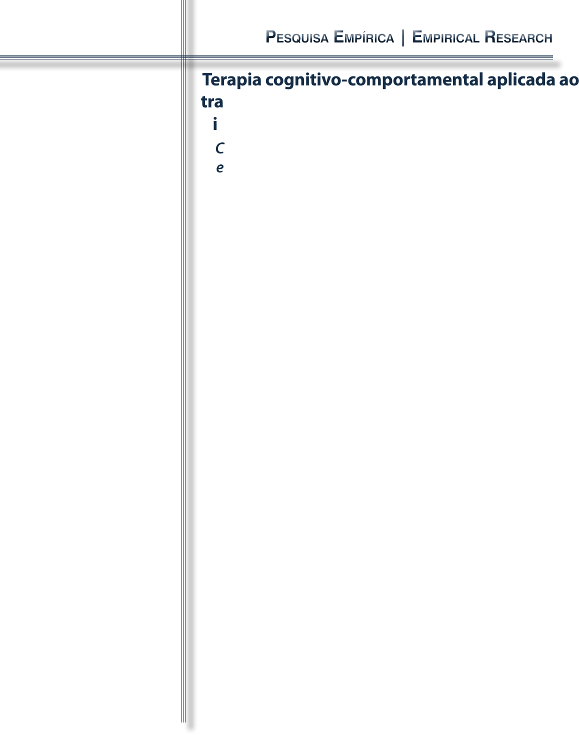10 Terapia cognitivo-comportamental aplicada ao transtorno explosivo intermitente: redução dos indicadores de raiva e considerações clínicas Cognitive-behavioral therapy applied to intermittent explosive disorder: reduction in anger indicators and clinical considerations Liliana Seger 1 Carolina Farias da Silva Bernardo 1 Juliana Morillo 1 Deisy Emerich-Geraldo 1 Carolina Ribeiro Bezerra de Sousa Ide 1 Hermano Tavares 1 1 Instituto de Psiquiatria da Faculdade de Medicina da Universidade de São Paulo, Programa Ambulatorial Integrado dos Transtornos do Impulso - São Paulo - São Paulo - Brasil. Correspondência: Liliana Seger. E-mail: lilianaseger@gmail.com Este artigo foi submetido no SGP (Sistema de Gestão de Publicações) da RBTC em 8 de Abril de 2022. cod. 304. Artigo aceito em 9 de Agosto de 2023. Resumo Objetivo: o estudo visou descrever e comparar os resultados nos indicadores de raiva, avaliados pré e pós-intervenção, de um protocolo de terapia cognitivo-comportamental (TCC) em grupo para transtorno explosivo intermitente (TEI). Método: a amostra não probabilística por conveniência foi constituída por 136 participantes adultos. As intervenções empregadas foram distribuídas em quatro categorias: reestruturação cognitiva, estratégias de regulação emocional, controle de impulso e habilidade de enfrentamento. Foram realizadas 15 sessões de intervenção semanais e três sessões de manutenção (periodicidade quinzenal e mensal), com duração de 90 minutos, conduzidas por duas psicólogas (terapeuta e coterapeuta). Os indicadores foram avaliados pelo Inventário de Expressão de Raiva como Estado e Traço (STAXI, do inglês State-Trait Anger Expression Inventory). Resultados: comparando as avaliações pré e pós-intervenção, identificou-se redução estatisticamente significativa nas medianas em todas as escalas do instrumento, com as maiores diferenças identificadas em Traço de Raiva e Expressão de Raiva para Fora, e Temperamento de Raiva. Conclusão: o presente estudo demonstra evidências preliminares de que o protocolo de TCC pode ter impacto positivo sobre a raiva e o comportamento agressivo impulsivo em pessoas com TEI, e formula hipóteses sobre processos de mudanças clínicas relacionadas às intervenções empregadas e os desfechos nos indicadores avaliados. Palavras-chave: Transtornos disruptivos, de controle de impulsos e da conduta, Raiva, Agressão. AbstRAct Objective: The study aimed to describe and compare the results of anger indicators, which were assessed pre- and post-intervention, of a group cognitive-behavioral therapy (CBT) protocol for IED. Method: The non-probabilistic convenience sample consisted of 136 adult participants. The adopted interventions were divided into four categories: cognitive restructuring, emotion regulation strategies, impulse control, and coping skills. There were 15 weekly intervention sessions and 3 maintenance sessions (weekly and monthly), each lasting 90 minutes, conducted by two psychologists (therapist and co-therapist). The indicators were evaluated by the State-Trait Anger Expression Inventory (STAXI). Results: Comparing the pre- and post-intervention assessments, a statistically significant reduction was identified in the medians in all scales of the instrument, with the greatest differences identified in Trait Anger and Anger Expression-Out, and Anger Temperament. Conclusions: The present study demonstrates preliminary evidence that the CBT protocol can have a positive impact on anger and impulsive aggressive behavior in people with IED, and formulates hypotheses about clinical change processes related to the interventions employed as well as the outcomes in the evaluated indicators. Keywords: Disruptive, Impulse Control, and Conduct Disorders, Anger, Aggression, Cognitive Behavioral Therapy. Pesquisa emPírica | emPirical research DOI: 10.5935/1808-5687.20230003 Revista Brasileira de Terapias Cognitivas 2023•19(1)•pp.10-18 Revista Brasileira de Terapias Cognitivas 2023•19(1)•pp.10-18 11 A raiva é uma emoção humana básica, selecionada filogeneticamente, e representa uma forma de proteção con- tra ameaças percebidas. Dessa forma, todos os indivíduos a experimentam no curso da vida. Quando a sua vivência é frequente, intensa e duradoura, diz-se haver um traço de raiva (Spielberger, 2003) e se o comportamento que dela resulta é excessivamente agressivo, fora do contexto ou autodirigido, pode ser considerado patológico. Vários transtornos psiquiátricos apresentam a raiva e o comportamento agressivo como sintomas clínicos, como trans- torno depressivo maior, transtorno de ansiedade, transtorno bipolar, transtorno da personalidade antissocial, transtorno da personalidade borderline, transtorno psicótico e transtorno de déficit de atenção/hiperatividade. Contudo, o transtorno explo- sivo intermitente (TEI) é o único para o qual o comportamento agressivo é a característica central (Patoilo et al., 2021). O Manual diagnóstico e estatístico de transtornos mentais (DSM-5) (American Psychiatric Association [APA], 2014) define o TEI como: explosões recorrentes; manifestadas por agressão verbal ou agressão física dirigida a propriedades, animais ou outros indivíduos; desproporcionais a provocação ou estressores ambientais psicossociais precipitantes; não premeditadas/instrumentais; causadoras de sofrimento acen- tuado por sentimentos de arrependimento, culpa, vergonha ou tristeza. Para o diagnóstico de TEI, os episódios de raiva e agressividade não podem ser mais bem explicados por outros transtornos psiquiátricos, efeitos do uso de substâncias ou ou- tras condições médicas, como traumatismo craniano e doença de Alzheimer (APA, 2014). Algumas especificidades do TEI, diferenciando-o de outras condições, já foram apontadas em diversos estudos, tanto no que tange às características típicas dos episódios de agressão quanto no que se refere aos processos c