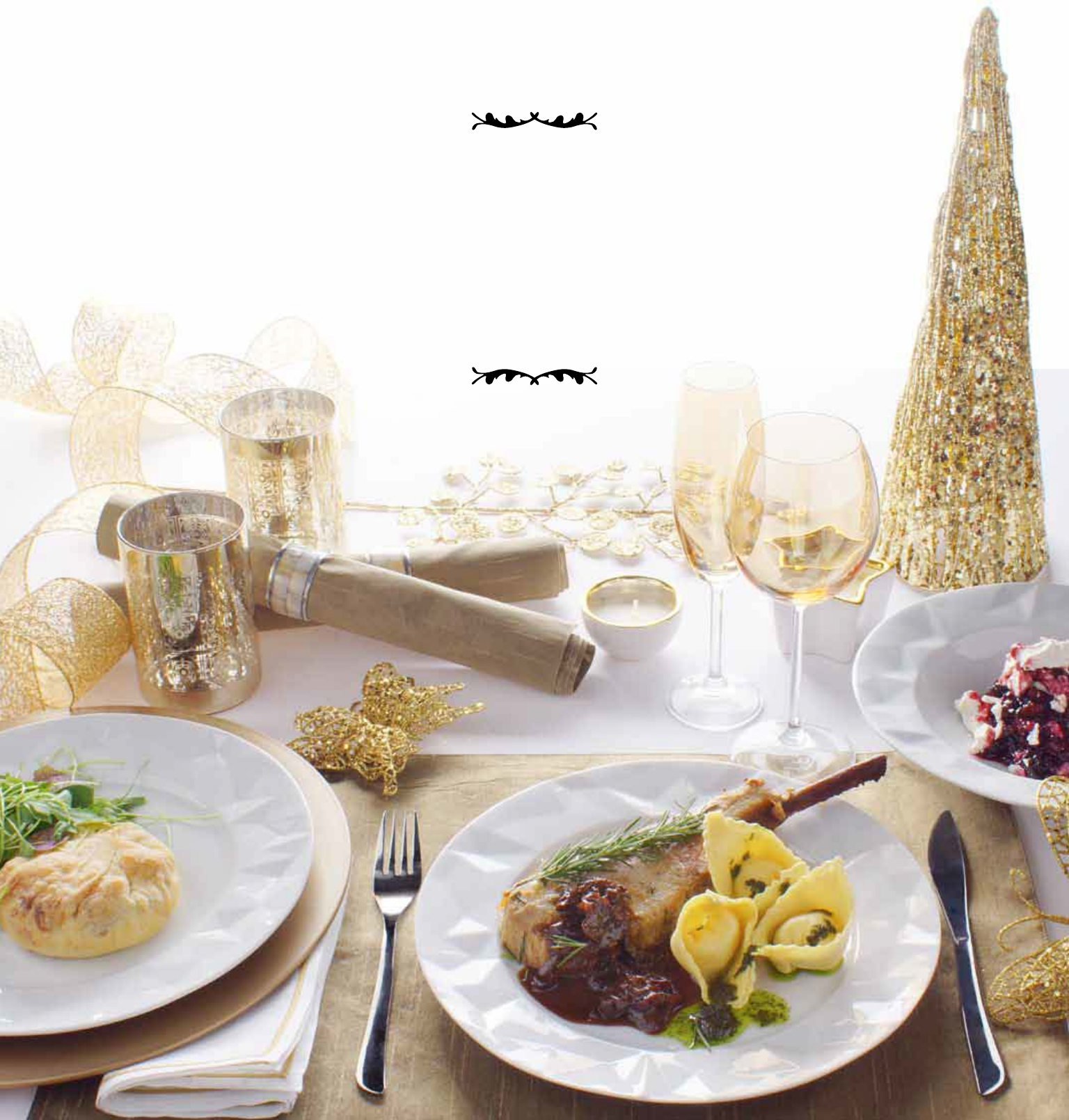 Ceia 1 Trouxa ao Chèvre, Champignons, Palmito Fresco com Salada de Brotos Carré de Porco, Chutney de Ameixa com Burrata ao Pesto de Manjericão Verrine de Frutas Vermelhas Ingredientes para 1 unidade • 20 gramas de queijo parmesão ralado • 150 gramas de pinhole • 150 gramas de queijo boursin • 30 gramas de uva-passa branca • 250 gramas de massa filo • 250 gramas de recheio de champignons para torta-trouxa • 150 gramas de palmito fresco salteado Modo de preparo Divida a massa em três partes. Abrir uma parte em círculo, bem fino. Forrar a forma redonda com a massa, deixando as bordas e untar com azeite de oliva. Abrir a outra parte da massa mais fina que a primeira, sobrepor sobre a outra, pressionar com as pontas dos dedos as laterais e o fundo. Pulverizar a farofa de pão e o parmesão, distribuir o queijo, colocar o recheio e o palmito salteado, pulverizar as passas e o parmesão. Fechar levando as pontas para o centro, pincelar azeite, levar ao forno até dourar, de 30 a 40 minutos. Tempere a salada com o molho de azeite, limão e vinagre. Trouxa ao Chèvre, Champignons e Palmito Fresco com Salada de Brotos Ingredientes para 1,4 kg • 50 gramas de queijo parmesão ralado • 200 gramas de cebola picada • 50 ml de azeite de oliva • 30 gramas de manteiga Saladinha de Brotos Ingredientes para 1 porção • 30 gramas de alface sucrine (mini-romana) desfolhada • 5 gramas de broto de rúcula • 5 gramas de broto de salsão • 5 gramas de broto de beterraba • 20 ml de molho de azeite, limão e vinagre • sal e pimenta a gosto Modo de preparo Montar harmoniosamente no bowl de serviço. Temperar a gosto. Molho de Azeite, Limão e Vinagre (clássico) Ingredientes para 350 ml • 100 ml de azeite extravirgem • 5 gramas de açúcar • 30 gramas de limão siciliano (suco e raspa) • 30 ml de vinagre de vinho tinto Colavita • 10 gramas de sal de pimenta Modo de preparo Diluir o açúcar e o sal de pimenta no suco de limão. Batendo sempre, adicionar azeite em fio. Temperar com raspas de limão. Reservar para utilização. Modo de preparo Murchar a cebola na manteiga, adicionar o alho e o azeite, adicionar os champignons. Refogar. Adicionar os palmitos e refogar. Deixe esfriar. Juntar a esse refogado os outros ingredientes. Temperar com sal de pimenta. Reservar. Recheio de Champignons e Palmito Fresco para Torta-trouxa • 5 gramas de tomilho picado • sal e pimenta a gosto • 10 gramas de alho batido • 400 gramas de champignons paris + • 400 gramas de palmito fresco (em rodelas finas) • 200 gramas de shitake • 200 gramas de shimeji Ingredientes para 1 porção • 2 gramas de pimenta-do-reino em grão, moída na hora • 180 gramas de Massa com burrata MesaIII • 300 gramas de costela de porco • 60 gramas de pesto de manjericão • 40 gramas de chutney de ameixa Modo de preparo Aquecer a costela de porco. Reservar no calor. Aquecer a massa (al dente) em água abundante fervente temperada com sal grosso. Escorrer bem. Montar harmoniosamente no prato de serviço: massa, pesto, costela de porco, chutney de ameixa. Finalizar com pimenta moída na hora. Carré de Porco, Chutney de Ameixa com Burrata ao Pesto de Manjericão Ingredientes para 300 ml • 120 gramas de manjericão • 10 gramas de alho Ingredientes para 1,5 kg • 1 kg de ameixa seca (sem caroço) • 200 ml de suco de laranja + 100 ml vinagre balsâmico + água (quanto baste) Ingredientes para 1 kg • 1,3 kg de costelinha de porco (ripa-carré) • 20 gramas de alecrim fresco • 5 gramas de pimenta-do-reino em grão • 2 folhas de louro Modo de preparo Branquear o manjericão na água fervente, escorrer e resfriar rapidamente num bowl com gelo. Modo de preparo Cobrir as ameixas com água. Levar em fogo médio para cozinhar. Adicionar o suco de laranja. Acrescente o balsâmico. Cozinhar até obter ponto de geleia. Deixar esfriar e reservar para utilização. Modo de preparo Marinar a costelinha com temperos e deixar por 12 horas na geladeira. Cozinhar com os temperos e a gordura por 5 horas em fogo baixo, sem deixar ferver (até começar a soltar do osso). Esfriar na gordura. Retirar o carré. Reservar a gordura para outras utilizações. Pesto de Manjericão Chutney de Ameixa Preta Carré de Porco (Confit) • 80 ml de azeite extravirgem • 80 ml de óleo de milho • 10 gramas de alho batido (azeite de alho com óleo) • 10 gramas de tomilho fresco • 2 kg de banha (para confitar) • 20 gramas de alho (inteiro, com casca e amassados) • 20 gramas de açúcar mascavo • 10 gramas de sal de pimenta Ingredientes para 1 unidade • 200 gramas de queijo cream cheese • 100 gramas de queijo mascarpone • 30 gramas de açúcar • 200 gramas de calda de frutas vermelhas (framboesa, mirtilo, groselha) • 60 gramas de suspiro Verrine de Frutas Vermelhas Modo de preparo Bater o cream cheese com o açúcar, acrescentar o mascarpone. Bater. Depois, montar na ordem: calda de frutas vermelhas + suspiro inteiro + quebrados + creme + calda + suspiro quebrado + creme + calda + suspiro inteiro para finalizar. Ingredientes para 1 kg • 750 gramas de mix de frutas silvestres congeladas • 250 gramas de açúcar Modo de preparo Colocar as frutas em uma panela junto com o açúcar. Deixar ferver até adquirir o ponto de calda leve. Calda de Frutas Vermelhas (framboesa, mirtilo, groselha)
