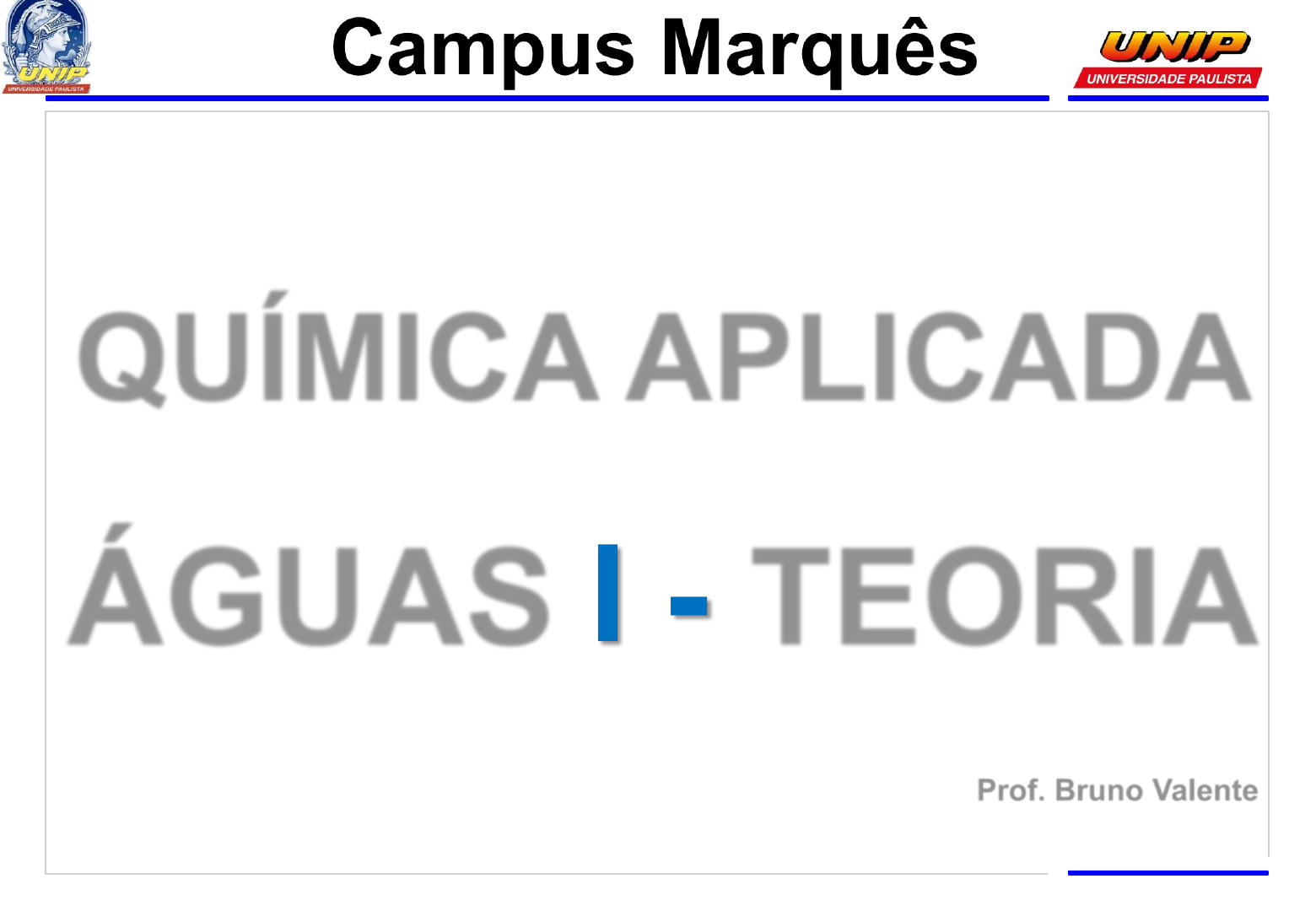 © UNIP 2020 all rights reserved ENGENHARIA CIVIL QUÍMICA APLICADA ÁGUAS I - TEORIA São Paulo, 28 de abril de 2022. Prof. Bruno Valente © UNIP 2020 all rights reserved Água – Panorama geral • Muito tem sido feito pelo ser humano para minimizar os impactos no meio ambiente através de reuniões entre grandes países na tentativa de proteger nossos recursos naturais. Um exemplo, foi a ratificação do Protocolo de Kyoto (origem: 1997), que foi acordado entre 192 países em julho de 2005, no Japão. (expirou em 2012); • Sempre deve-se analisar os custos e benefícios de cada ação praticada, pois a falta de evidência imediata propicia uma falta de cuidado com as águas; • Os efeitos podem ser sentidos de formais mais sutis e não de imediato, assim esses efeitos se acumulam e intensificam a resposta da natureza que pode ser de maneira irreversível; © UNIP 2020 all rights reserved Água – Características • Corpo humano → Aproximadamente 65% em massa; • Cobre→ ~72% da superfície terrestre; • A água é uma molécula categorizada como polar, devido a isso, torna-se capaz de dissolver uma grande quantidade de substâncias (iônicas ou moleculares); • Por conta das ligações existentes entre suas moléculas, a água apresenta altos pontos de fusão e ebulição assim como um alto calor específico. © UNIP 2020 all rights reserved Água – Características • Oceanos→ Responsáveis pela temperatura relativamente estável do planeta (nas regiões desérticas, a amplitude térmica é alta entre o dia e a noite); • Sabe-se que os organismos vivos presentes na água apresentam alta sensibilidade às variações de temperatura. © UNIP 2020 all rights reserved Água – Ciclo http://1.bp.blogspot.com/-Gsq1Up3FpCI/T- yaw9dfphI/AAAAAAAAAAc/aCWh_r_4pTA/s1600/cartazete-ciencias.jpg © UNIP 2020 all rights reserved Água – Características • A água é encontrada em nosso planeta nos três estados físicos, devido a relação entre sua massa e a distância do Sol: • A quantidade total é de aproximadamente: 1,359 x 1021 litros em que: • 97,2% estão nos oceanos e mares; • 2,15% estão nas geleiras e calotas polares; • 0,65 % é doce (fração usada pelo homem). © UNIP 2020 all rights reserved Águas – Distribuição Mundial • Poucos países, no qual inclui-se o Brasil, concentram mais da metade das reservas mundiais; https://bluevisionbraskem.com/inteligencia/infografico-onde-estao-as-maiores-reservas-naturais-de-agua/ © UNIP 2020 all rights reserved Águas – Distribuição Mundial • No planeta existem regiões extremante áridas e de umidade relativa muito baixa (como os desertos), e outras com alta umidade relativa (florestas tropicais); • Uma das causas é a irregularidade no regime de precipitações, devido ao próprio movimento da Terra em torno do Sol. © UNIP 2020 all rights reserved Águas – Distribuição Brasil • Quando analisa-se localmente, verifica-se uma alta irregularidade na distribuição da água, exemplos: • No Brasil, 70% da água está na Amazônia, onde se concentra menos de 10% da população do país. • Em Roraima um cidadão têm a disposição 1,8 milhões de litros de água por ano, já em Pernambuco, essa média é de pouco mais de 1.000 litros. • Nas regiões Nordeste e no Sudeste, algumas regiões enfrentam racionamentos regulares. • Em algumas cidades da grande São Paulo, as crises de abastecimento são, em parte, resultantes da poluição dos rios como o Pinheiros e o Tietê. © UNIP 2020 all rights reserved Águas – Conflitos no mundo • Existem casos em que há muitos conflitos para o uso da água, em regiões em que fronteiras são demarcadas por rios. • A Etiópia e o Sudão, países na cabeceira do Nilo, sofrem pressão econômica e militar do Egito, para abandonar seus projetos de irrigação e construção de represas, o que poderia diminuir o volume de água do trecho egípcio. • Curdos e sírios protestam contra a Turquia, que, ao represar o Eufrates, reduziu a quantidade de água que chega à Síria e ao norte do Iraque. © UNIP 2020 all rights reserved Águas – Conflitos no mundo • Rio Eufrates: Fonte: http://1.bp.blogspot.com/-8kTxRxDxS9w/Udy0ShUxyyI/AAAAAAAAAUg/Q8zMrYaw8jo/s1600/eufrates.jpg © UNIP 2020 all rights reserved Águas – problemas x soluções • A ONU prevê o esgotamento do estoque útil de água potável no mundo, que é estimado em 12,5 mil km³; • Cerca de 1,4 bilhões de pessoas não têm acesso à água própria para o consumo; • A cada 8 segundos morre uma criança por uma doença relacionada a água: como disenteria, cólera e outras; • Cerca de 80% das enfermidades do mundo são contraídas por causa da água poluída; • Algumas soluções que são eficazes para o desperdício: • Na irrigação, considerado um sistema muito útil e de grande utilizado é composto por canais e aspersores, apresenta uma eficiência de 60%. • Já a sistema de gotejamento, encontrado em Israel e outros países áridos, possui uma eficiência de 90%. © UNIP 2020 all rights reserved Águas – problemas x soluções • Em Israel que é um país de referência em pesquisas, existem empresas especializadas em devolver a água usada ao subsolo após tratada; • Ao injetar em aquíferos evita o avanço da água do mar pelo subsolo, no caso de aquíferos costeiros, e o afundamento do solo; • Essa ação é bastante vantajosa em situações de picos de consumo, como em alguns casos de irrigação e assim funcionam como grandes reservatórios naturais; • Em Cingapura, país que importa água, o governo distribui para a população a chamada água “potabilizada”, que é obtida pelo tratamento de água poluída, e se torna própria para o consumo. © UNIP 2020 all rights reserved Águas – problemas x soluções ÁGUA DO MAR: • Devido ao alto teor de sal, a água do mar é imprópria para o consumo humano e para a maior parte dos usos comuns; • A remoç