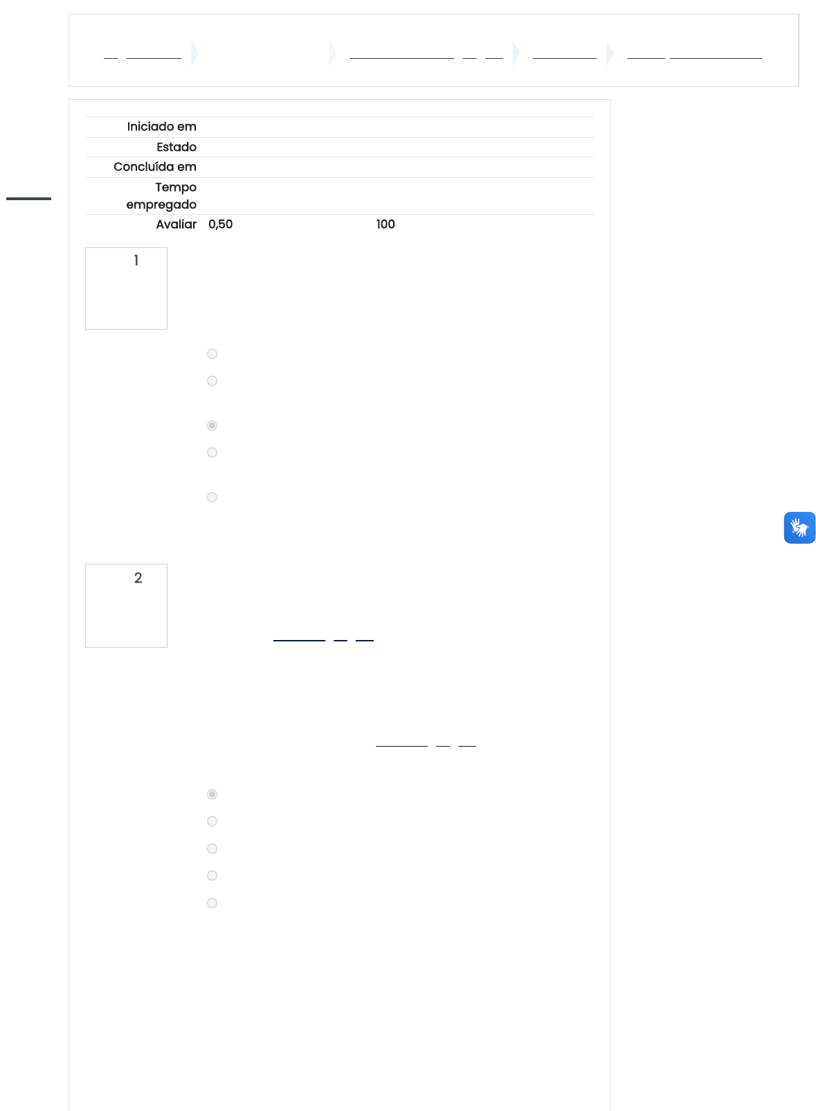 <p>Página inicial Minhas disciplinas 2024/4 - Marketing Digital UNIDADE IV Avaliação - Unidade IV</p><p>Questão 1</p><p>Correto</p><p>Atingiu 0,05</p><p>de 0,05</p><p>Questão 2</p><p>Correto</p><p>Atingiu 0,05</p><p>de 0,05</p><p>Iniciado em terça, 8 out 2024, 08:22</p><p>Estado Finalizada</p><p>Concluída em terça, 8 out 2024, 08:30</p><p>Tempo</p><p>empregado</p><p>7 minutos 53 segundos</p><p>Avaliar 0,50 de um máximo de 0,50(100%)</p><p>A partir de uma ação pré-determinada pela necessidade</p><p>organizacional, e do proprietário de um site, um usuário pode</p><p>passar para o status de Leads. Sendo assim, marque a</p><p>alternativa que corresponde ao conceito de Leads:</p><p>a. Um Lead é um cliente da empresa.</p><p>b. É utilizado no tráfego orgânico para monitorar um</p><p>usuário.</p><p>c. Um Lead é um cliente em potencial para a empresa. </p><p>d. O lead deve ser utilizado juntamente com o pixel para</p><p>que o usuário seja orgânico.</p><p>e. O lead é uma página de site que um determinado</p><p>usuário visita.</p><p>CRO – Conversion Rate Optimization busca otimizar a taxa de</p><p>conversão. Sendo assim, sobre a taxa de conversão, marque a</p><p>alternativa correta:</p><p>I) Dentro do marketing digital é extremamente importante que</p><p>você sempre tenha uma meta de conversão.</p><p>II) É um processo que visa a ajudar um potencial usuário on-</p><p>line na tomada de decisão.</p><p>III) Pode ser calculada por meio dos dados de conversão</p><p>atuantes divididos pelo total de visitantes em um site.</p><p>IV) O profissional atuante em marketing digital deve sempre ter</p><p>o objetivo de melhorar a taxa de conversão.</p><p>a. Todas estão corretas. </p><p>b. Somente I.</p><p>c. I e II.</p><p>d. Somente IV.</p><p>e. I, II e III.</p><p></p><p></p><p></p><p></p><p></p><p></p><p></p><p></p><p></p><p></p><p></p><p></p><p>https://ambienteonline.uninga.br/</p><p>https://ambienteonline.uninga.br/course/view.php?id=28813</p><p>https://ambienteonline.uninga.br/course/view.php?id=28813§ion=5</p><p>https://ambienteonline.uninga.br/mod/quiz/view.php?id=840473</p><p>https://ambienteonline.uninga.br/mod/resource/view.php?id=840445</p><p>https://ambienteonline.uninga.br/mod/resource/view.php?id=840445</p><p>javascript:void(0);</p><p>https://ambienteonline.uninga.br/user/index.php?id=28813</p><p>https://ambienteonline.uninga.br/grade/report/index.php?id=28813</p><p>https://ambienteonline.uninga.br/course/view.php?id=28813&stopjsnav=1</p><p>https://ambienteonline.uninga.br/course/view.php?id=28813&datapref=1</p><p>https://ambienteonline.uninga.br/</p><p>https://ambienteonline.uninga.br/my/</p><p>https://ambienteonline.uninga.br/calendar/view.php?view=month&course=28813</p><p>javascript:void(0);</p><p>https://ambienteonline.uninga.br/user/files.php</p><p>https://ambienteonline.uninga.br/my/</p><p>Questão 3</p><p>Correto</p><p>Atingiu 0,05</p><p>de 0,05</p><p>Questão 4</p><p>Correto</p><p>Atingiu 0,05</p><p>de 0,05</p><p>Questão 5</p><p>Correto</p><p>Atingiu 0,05</p><p>de 0,05</p><p>Questão 6</p><p>Correto</p><p>Atingiu 0,05</p><p>de 0,05</p><p>Há um enorme conjunto de sites parceiros que compõem a</p><p>rede Google, entre eles o</p><p>a. Instagram</p><p>b. Linkedin</p><p>c. Facebook</p><p>d. Youtube </p><p>e. Tik tok</p><p>No tráfego pago, a base é o anúncio, que é a peça criativa na</p><p>qual você paga para que ele seja vinculado a outras pessoas.</p><p>Outro conceito importante acerca do tráfego pago é:</p><p>a. Processo orgânico.</p><p>b. Google Analytic.</p><p>c. Livre.</p><p>d. Pixel. </p><p>e. Travado.</p><p>O serviço oferecido envolve anúncios que são exibidos em</p><p>forma de links quando alguém realiza uma busca de um termo</p><p>ou frase no buscador Google, seja por meio de computador ou</p><p>de smartphone. Tal afirmação é relacionada a qual ferramenta</p><p>abaixo?</p><p>a. Google Analytic</p><p>b. Buscador Google</p><p>c. PageSpeed</p><p>d. Google Crome</p><p>e. Google Ads </p><p>Para diferenciar os anúncios dos resultados orgânicos, na rede</p><p>de pesquisa o Google Adwords mostra um indicador que</p><p>parece uma pequena etiqueta que pode ser percebida na cor</p><p>preta em negrito. Com tal estratégia, o anúncio</p><p>a. fica evidente aos usuários.</p><p>b. fica evidente para aqueles que o postaram.</p><p>c. fica desigual a um site com tráfego orgânico.</p><p>d. não fica ainda mais semelhante a um resultado de</p><p>busca normal.</p><p>e. fica ainda mais semelhante a um resultado de busca</p><p>normal aos desatentos e desconhecedores de tal</p><p>estratégia da plataforma.</p><p></p><p></p><p></p><p></p><p></p><p></p><p></p><p></p><p></p><p></p><p></p><p></p><p></p><p>javascript:void(0);</p><p>https://ambienteonline.uninga.br/user/index.php?id=28813</p><p>https://ambienteonline.uninga.br/grade/report/index.php?id=28813</p><p>https://ambienteonline.uninga.br/course/view.php?id=28813&stopjsnav=1</p><p>https://ambienteonline.uninga.br/course/view.php?id=28813&datapref=1</p><p>https://ambienteonline.uninga.br/</p><p>https://ambienteonline.uninga.br/my/</p><p>https://ambienteonline.uninga.br/calendar/view.php?view=month&course=28813</p><p>javascript:void(0);</p><p>https://ambienteonline.uninga.br/user/files.php</p><p>https://ambienteonline.uninga.br/my/</p><p>Questão 7</p><p>Correto</p><p>Atingiu 0,05</p><p>de 0,05</p><p>Questão 8</p><p>Correto</p><p>Atingiu 0,05</p><p>de 0,05</p><p>Questão 9</p><p>Correto</p><p>Atingiu 0,05</p><p>de 0,05</p><p>Questão 10</p><p>Correto</p><p>Atingiu 0,05</p><p>de 0,05</p><p>Para que um proprietário de site saiba a eficiência dele,</p><p>percebendo se ele tem uma boa navegabilidade, com menus,</p><p>fotos, informações e botões, que ajudam o usuário, ele poderá</p><p>perceber esses dados por meio de qual ferramenta? (fácil)</p><p>a. Google Crome</p><p>b. PageSpeed </p><p>c. Google Ads</p><p>d. Google Analytic</p><p>e. Buscador Google</p><p>Segundo Turchi (2019, p. 126), “Em mé