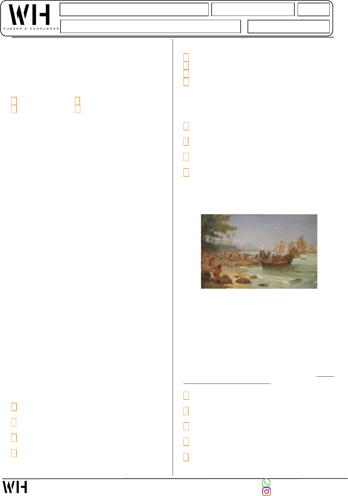 WH – Cursos, Concursos e Treinamentos Aluno (a): Professor: Bruna Marcely Disciplina: Português Aula: 01 9 8125 2115 @whcursoseconcursos Assunto: Interpretação 01. Leia: Durante a conversa sobre o livro a ser editado, Wálter advertiu que os custos talvez o inviabilizassem. Edwalds ponderou que os benefícios é que deveriam ser destacados. Douglas, o mais sensato do grupo, preferiu não opinar. Por que ficar discutindo coisas particulares? Já Eduardo achou que a ideia era digna de ser levada adiante. Há um discurso indireto livre no segmento referente a A Wálter. B Douglas. C Eduardo. D Edwalds. 02. O pastor e a princesa Carlos Heitor Cony Um jovem pastor, de cabelos louros e cacheados (façamos uma homenagem ao lugar-comum), andava pela floresta quando, de repente, ao atravessar uma clareira, viu enorme e formoso castelo. E, na torre mais alta, uma linda princesa de tranças também louras e olhar sonhador. Os dois se olharam e, a partir daquele momento, todas as tardes, o pastor ia à clareira e ficava olhando a princesa, que também olhava pra ele. Ele suspirava, sabendo que jamais poderia entrar no castelo e ver de perto a princesa. Eis que, um dia, encontrou uma velha na floresta carregando pesado feixe de lenha. O jovem pastor a ajudou, e a velha logo se transformou numa fada e disse que realizaria qualquer pedido dele. “Quero ser um príncipe para entrar naquele castelo!”, pediu o pastor. A fada advertiu-o de que realizaria o seu desejo, mas que ele jamais poderia voltar a ser o que era. O jovem foi em frente. Seria um absurdo voltar a ser pastor. Logo as fanfarras do castelo soaram para o príncipe que se aproximava. A corte recebeu o visitante com banquetes, desfiles, torneios e todas as homenagens. O rei gostou tanto do príncipe que lhe ofereceu a mão de sua filha. Louco de alegria, o jovem aceitou e quis beijar a princesa. Ela recusou o beijo. Disse que não poderia casar com o príncipe porque estava apaixonada por um pastor louro de cabelos cacheados que, todas as tardes, costumava aparecer na clareira na floresta. A ele, dera seu coração e somente a ele amaria. Não sei se inventei ou se li em algum canto essa história cheia de lugares-comuns. Não importa. Não sou jovem nem pastor, não tenho cabelos louros e cacheados. Mas, todas as tardes, continuo indo à floresta para ver se me acontece alguma coisa. O harém das bananeiras – Editora Objetiva - 1999 A questão refere-se ao texto acima. Assinale a alternativa que justifica o fato de a princesa ter se recusado a beijar o jovem príncipe. Alternativas A Ela se apaixonou por um homem, e não pelo que ele poderia representar. B O pai dela impôs-lhe um casamento por interesse com o príncipe; e ela, por rebeldia, não aceitou. C Quando percebeu que o pastor estava vestido como um príncipe, ela descobriu que ele era um mau-caráter. D Ela aceitou o pedido de casamento do pastor, por isso não poderia assumir compromisso com outro homem. 03. O pastor pediu para a fada transformá-lo em um príncipe para ele poder entrar no castelo porque A ele era muito pobre e queria enriquecer. B achava um absurdo ser um pobre pastor. C apaixonou-se pela princesa e queria se aproximar dela. D queria se infiltrar no castelo e se transformar em um homem nobre. 04. Por que as expressões “lugar-comum” e “lugares- - comuns” aparecem, respectivamente, no primeiro e no último parágrafos do texto? A Porque, nos contos de fada, não é comum os personagens serem loiros de cabelos cacheados. B Porque a história é marcada por modelos e ideias muito comuns nos contos de fada. C Porque o autor se justifica, afirmando que se inspirou em uma história que já existe. D Porque florestas e castelos são cenários comuns em todas as histórias antigas. 05. Leia um fragmento da Carta de Pero Vaz de Caminha, a seguir. (A imagem é meramente ilustrativa) Fonte: https://www.culturagenial.com/carta-pero-vaz- de-caminha/ “Nela, até agora, não pudemos saber que haja ouro, nem prata, nem coisa alguma de metal ou ferro; nem lho vimos. Porém a terra em si é de muito bons ares [...]. Porém o melhor fruto que dela se pode tirar me parece que será salvar esta gente.” (Carta de Pero Vaz de Caminha. In: MARQUES, A.; BERUTTI, F.; FARIA, R. História moderna através de textos. São Paulo: Contexto, 2001.) Nesse trecho, o relato de Caminha alinha-se ao projeto colonizador da Coroa Portuguesa para a nova terra, pois, essencialmente, A demarca a superioridade europeia, para enfatizar a miséria dos indígenas. B descreve a exuberância das terras, para impressionar a Coroa Portuguesa. C evidencia a ausência de trabalho dos povos autóctones (povos nativos). D informa sobre o potencial econômico e a oportunidade de conversão católica. E realça somente a possibilidade da catequese para os povos nativos. WH – Cursos, Concursos e Treinamentos 2 9 8125 2115 @whcursoseconcursos Assunto: Interpretação Textual 06. Leia os textos abaixo para responder à questão: (Texto 1) Descuidar do lixo é sujeira Diariamente, duas horas antes da chegada do caminhão da prefeitura, a gerência de uma das filiais do McDonald’s deposita na calçada dezenas de sacos plásticos recheados de papelão, isopor, restos de sanduíches. Isso acaba propiciando um lamentável banquete de mendigos. Dezenas deles vão ali revirar o material e acabam deixando os restos espalhados pelo calçadão. (Veja São Paulo, 23- 29/12/92) (Texto 2) O bicho Vi ontem um bicho Na imundície do pátio Catando comida entre os detritos. Quando achava alguma coisa, Não examinava nem cheirava: Engolia com voracidade. O bicho não era um cão, Não era um gato, Não era um rato. O bicho, meu Deus, era um homem. (Manuel Bandeira. Em Seleta em prosa e verso. Rio de Janeiro: J. Olympio/MEC, 1971, p.145) I. No primeiro texto, publicado por uma revista, a linguagem predominante é a literária, pois sua principal função é informar o leitor sobre os transtornos causados pelos de