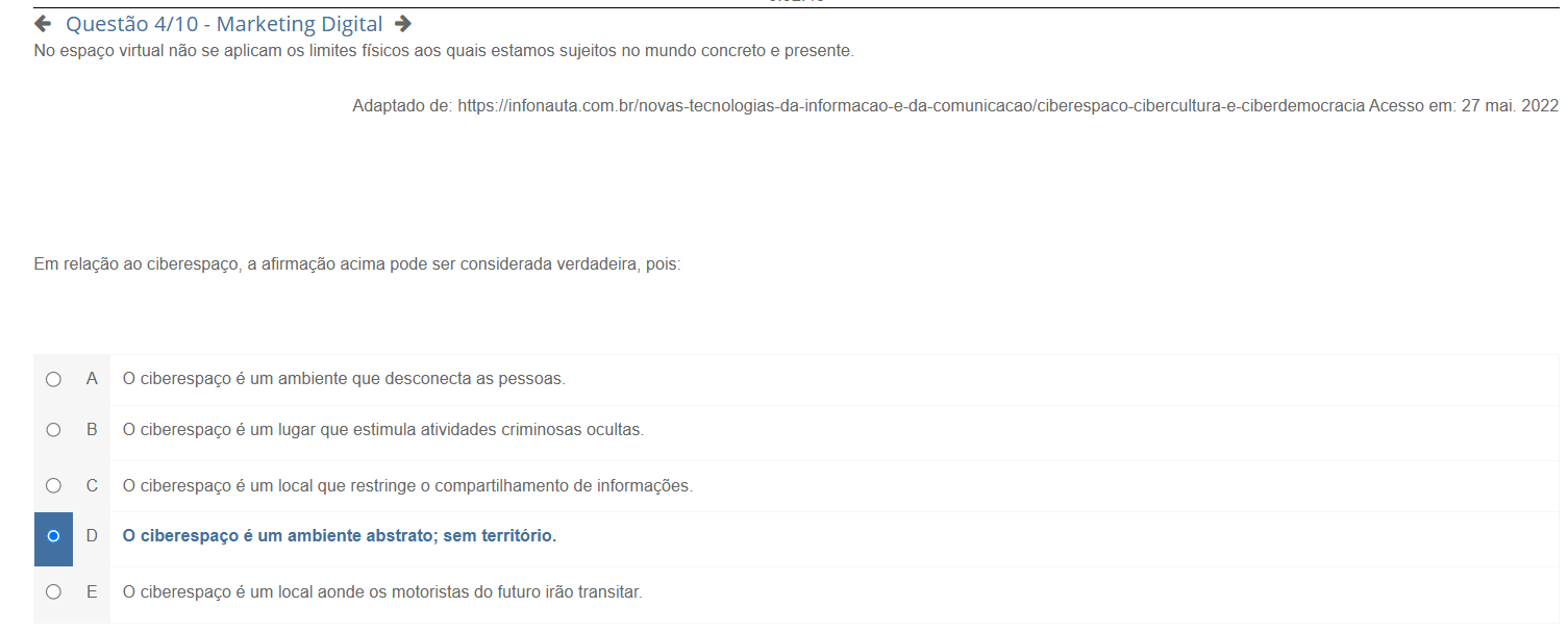 SM1 Indústria 5.0 e Transformação Digital 1 Marcar para revisão Um município brasileiro quer melhorar o tráfego urbano usando tecnologia. Contudo, ...