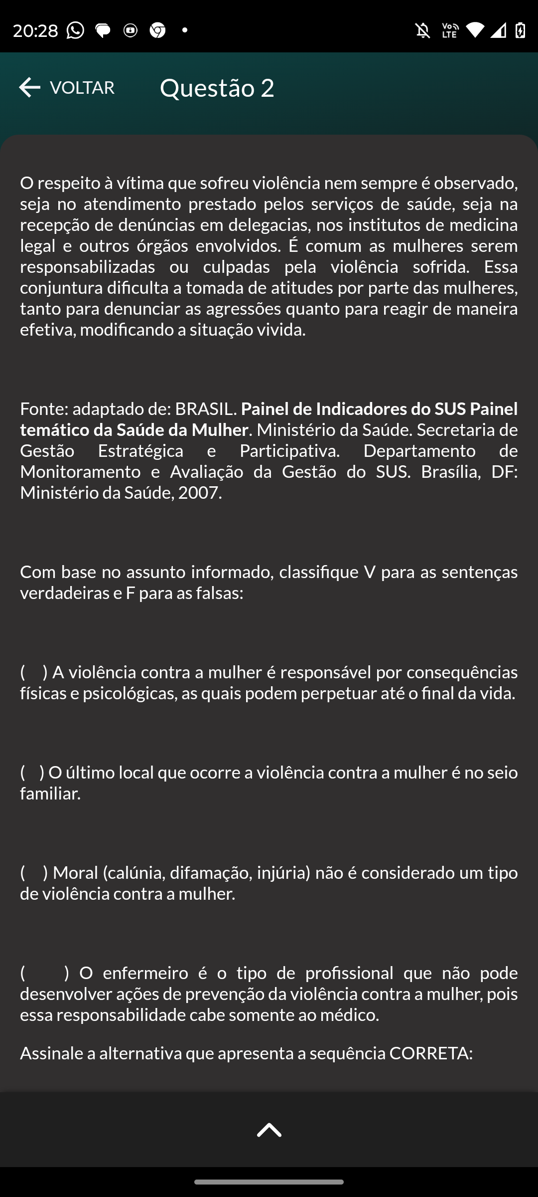 Apenas D) a afirmativa Il está correta. Apenas E) a afirmativa IV está correta. 2 São cuidados a serem estabelecidos na consulta de enfermagem: I. ...