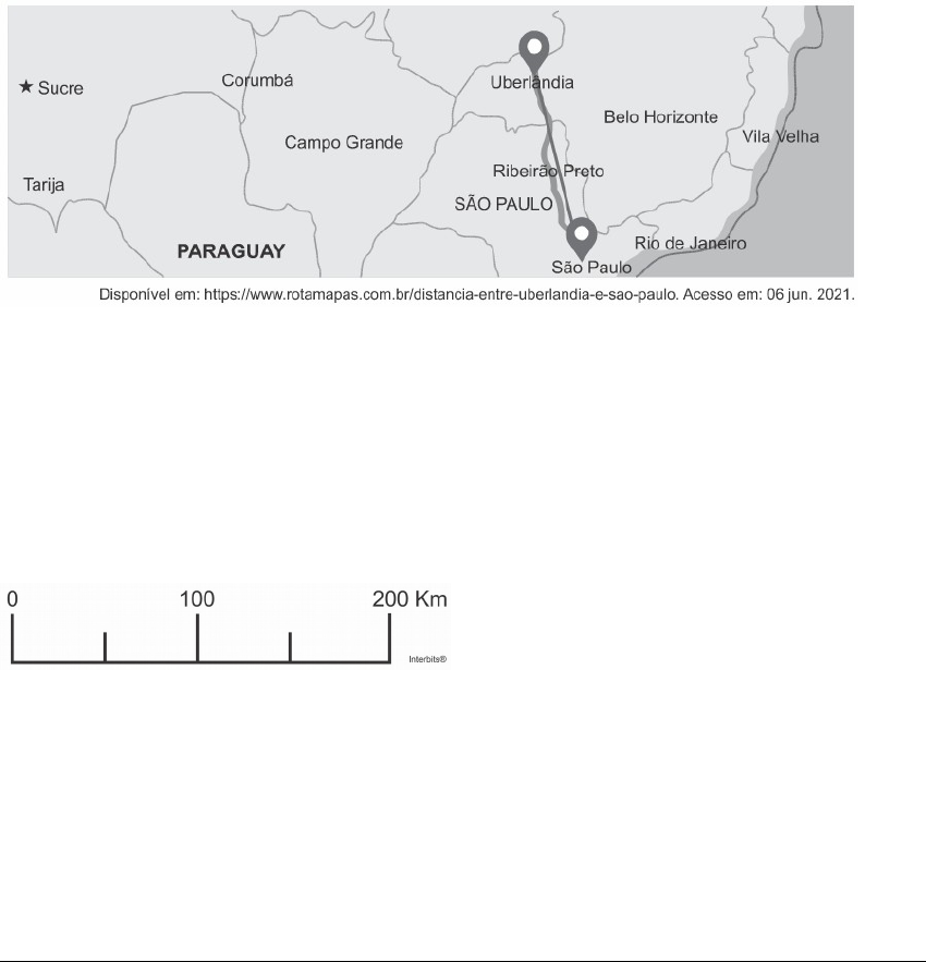 LISTA DE ESCALA 1. (Uece 2022) Durante a construção de uma estrada, utilizou-se uma representação cartográfica cuja escala era de 1:25.000. Nesse mapa, a estrada foi representada por uma linha com 12,7 cm de comprimento. Assim, é correto afirmar que o comprimento real dessa estrada no terreno é a) 3.175 m. b) 1.968 m. c) 2,51 km. d) 4,27 km. 2. (Fuvest 2022) A escala cartográfica expressa as dimensões presentes em um mapa e a sua correspondência no terreno, ou seja, é uma abstração adotada que permite transpor a realidade terrestre para o mapa mantendo as proporções. Considerando a distância de 6 cm entre dois municípios em um mapa com escala numérica de 1:1.000.000, qual é a distância, em linha reta, entre eles? a) 0,6 km b) 6 km c) 6,6 km d) 60 km e) 600 km 3. (Ufu 2021) Em linha reta, a distância entre Uberlândia-MG e São Paulo-SP é de Num mapa de escala a distância entre as duas cidades será representada em a) 4,2 cm. b) 8,1 cm. c) 3,6 cm. d) 5,4 cm. 4. (Ueg 2021) Observe a figura a seguir. Na figura apresentada, que demonstra uma escala gráfica, cada intervalo representaria em um mapa 1 cm. Na superfície da Terra, em um trajeto, cada intervalo de um 1 cm corresponde a a) 100 Km b) 300 Km c) 50 Km d) 200 Km e) 150 Km 5. (Fmj 2021) “A Paulista é igual a casamento. Começa no Paraíso e termina na Consolação”. A piada só faz sentido para quem conhece a região e sabe que a avenida começa na Avenida Bernardino de Campos, no bairro do Paraíso, e termina na Avenida Consolação, um percurso total de 2.800 metros. O trocadilho é sem graça, mas sempre lembrado. (https://lugaresdomundo.com.br, 19.08.2018. Adaptado.) Levando-se em consideração o excerto e sabendo-se que, em um mapa turístico, o percurso total da avenida Paulista corresponde a 3,5 cm, conclui-se que a escala desse mapa é de a) 1 : 9.800. b) 1 : 800. c) 1 : 80.000. d) 1 : 8.000. e) 1 : 125.000. 6. (Uel 2021) A figura a seguir mostra a maior fronteira entre dois países no mundo: o Canadá e os Estados Unidos. A sua distância total é de aproximadamente 9.000 km. Considerando as medidas em centímetros ilustradas na figura, assinale a alternativa que apresenta, corretamente, a escala da representação. a) 1:60.000 b) 1:250.000 c) 1:15.000.000 d) 1:60.000.000 e) 1:150.000.000 7. (G1 - cftmg 2020) Em um mapa de uma dada Unidade de Conservação (UC), localizada na Amazônia Legal, cuja escala é a distância em linha reta entre a sede da referida Unidade e o foco de queimada registrado é de A partir dessa informação, a distância real, em linha reta, entre a sede da UC e o foco de queimada registrado é a) b) c) d) Página 1 de 2 oleObject2.bin image4.png image5.png image6.wmf 1:25.000.000, oleObject3.bin image7.wmf 1cm. oleObject4.bin image8.wmf 250m oleObject5.bin image9.wmf 250km oleObject6.bin image10.wmf 2.500m oleObject7.bin image11.wmf 2.500km oleObject8.bin image1.png image2.wmf 540km. oleObject1.bin image3.wmf E1:150.000, =