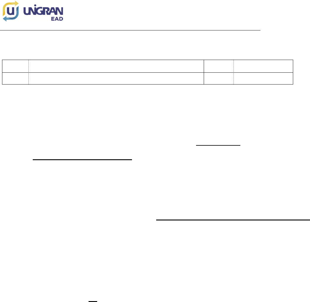 CENTRO UNIVERSITÁRIO DA GRANDE DOURADOS Curso Tecnológico em Análise e Desenvolvimento de Sistemas Disciplina: Introdução à Computação Atividade 04 Aluno: R.G.M.: Pólo: Data: 02/08/2024 Nota máxima da Atividade: 1,25 Somente será aceito o envio da atividade uma única vez. 1. Pesquise na Internet ou em lojas de informática a configuração de um computador com processador Intel Core i9. ATENÇÃO: PROCESSADOR INTEL i9 É para serem colocados os valores e às unidades de medidas corretas (MB, GB, TB, etc.). As informações deverão ser especificas do processador Intel i9 pesquisado. a. Geração do processador pesquisado (IDENTIFICAR) Obs: Inserir o código e nome: Exemplo processador i3-4350T é da 4ª Geração R: Processador Intel Core i9-10900F- 10° Geração b. Capacidade do HD ou SSD (Espaço De Armazenamento) R: O armazenamento desse computador é SSD 480 GB c. Capacidade da memória DRAM (Espaço De Armazenamento) R: A memória DRAM desse computador é 16 GB DDR4 d. Frequência do Processador (Velocidade) R: A frequência desse processador é de 2.8 Ghz à 5.2 Ghz e. Capacidade da Memória Cache (Espaço De Armazenamento) R A capacidade de memória cache é de 20 MB Intel Smart Cache I.C./2024-2s CENTRO UNIVERSITÁRIO DA GRANDE DOURADOS Curso Tecnológico em Análise e Desenvolvimento de Sistemas Disciplina: Introdução à Computação Link da pesquisa: I.C./2024-2s