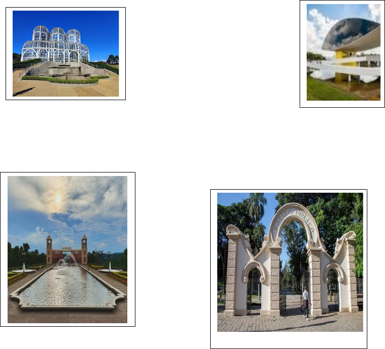 PONTOS TURÍSTICOS DE CURITIBA AVENTURA DIVERSÃO CONHECIMENTO! PONTOS TURÍSTICOS DE CURITIBA! AVENTURA... DIVERSÃO... CONHECIMENTO...!AUTORES: ESTUDANTES DA UEI - TARDE PROFESSORA MARILENE MILAK ARTICULADORA PEDAGÓGICA UEI: ELAINE PAVANi CORSI INSPETORA DA UEI: ELAINE APARECIDA DA SILVA ESCOLA MUNICIPAL TANIRA REGINA SCHMIDT CURITIBA – PARANÁ 2024 Nós, estudantes da UEI no ano de 2024 conhecemos um pouco sobre os pontos turísticos da cidade de Curitiba e com muito carinho registramos tudinho neste livro. MEMORIAL PARANISTA O Memorial Paranista oferece uma programação gratuita com visitas educativas, teatro e oficinas de arte para todas as idades. Situado dentro do Parque São Lourenço. Na visita ao Memorial Paranista, conhecemos as obras de arte do artista João Turin, um escultor animalista. Durante a visita encontramos muitas esculturas como onças e tartarugas. Vimos também outras obras como o Homem Pinheiro, o Barão do Serro Azul, o Marumbi e Guairacá. Após conhecermos muitas esculturas tivemos a oportunidade de fazermos a nossa própria escultura com argila. AUTORES: FERNANDA CAROLINE DA SILVA PRADO GABRIELA MILLECK LIVYA VAZ DOS SANTOS MURILO DIAS COSTA 05 PORTÃO CULTURAL O Portão Cultural, complexo cultural da Fundação Cultural de Curitiba, Localizado ao lado do Terminal Portão, oferece diversos cursos. Entre as opções, há oficinas de mosaico, desenho e pintura, teatro e criação de brinquedos com sucata. As atividades fazem parte do edital de Oficinas Autossustentáveis da Fundação Cultural que oferece aulas de variadas linguagens artísticas nas 10 regionais da cidade. Nós fomos visitar o Espaço Portão Cultural, para conhecer os trabalhos dos estudantes de várias escolas, sobre arte com uso de sucata. Conhecemos vários projetos como: planeta feito de sucata, animais empalhados, pinhão de madeira, desenhos com areia e muito mais. Tivemos a oportunidade de visitar a biblioteca, sala de edição, sala de cinema e esculturas de capivaras coloridas. Foi uma inesquecível experiência . AUTORES: ELOISA DA SILVA SANTOS FELIPE DE LIMA BONNET GABRIELLY CRISTINA DA SILVA LIMA HELOISA DE JESUS GARCIA THAIS GUIMARÃES MEIRA06 TEATRO GUAÍRA O Teatro Guaíra é a mais importante casa de espetáculos de Curitiba, vale apena conhecer e assistir a um espetáculo. Eu conheci o teatro quando fui até lá para assistir a apresentação do clássico Mágico de oz, foi muito divertido, no dia estava chovendo mas, foi muito legal. AUTORES: AYSHA CRISTINA DE CARVALHO FERREIRA07 CLAUDINEY FERNANDES DE FRANÇA JARDIM BOTÂNICO O Jardim Botânico de Curitiba, ou Jardim Botânico Francisca Rischbieter, é um dos principais pontos turísticos da cidade de Curitiba. Na estufa existem inúmeros exemplares de vegetais do Brasil e de outros países. Há também O Espaço Cultural Frans Krajcberg, com a exposição permanente de "A Revolta", do artista polonês e o Jardim das Sensações é um espaço delimitado por cerca viva, onde os sentimentos do visitante são testados, por meio do contato direto com plantas de diferentes formas, texturas e aromas. AUTORES: ASAFE AMID KAULE SOARES GABRIELLY CRISTINA DA SILVA LIMA LETICIA DOS SANTOS MACHADO LIVYA VAZ DOS SANTOS LUAN DE JESUS GARCIA08 PASSEIO PÚBLICO O Passeio Público foi o primeiro parque de Curitiba, tem muitas atrações, como rio com peixes, parquinho para as crianças, gaiolas com animais, também tem lugar para fazer piquenique e eventos todos os sábados. Tem várias barraquinhas de comidas, carrinho de sorvete e também tem barraca de algodão doce. Várias pessoas praticando esporte pelo parque, passeando com os cachorros, fazendo exercício, jogando xadrez e observando as aves. . AUTORAS: ELOISA DA SILVA SANTOS THAIS GUIMARÃES MEIRA09 MUSEU EGÍPCIO Uma jornada fascinante pelo antigo Egito o acervo apresenta réplicas autênticas de peças egípcias, incluindo artefatos do período Pré-dinástico até a Época Ptolomaica, peças que contam as histórias dos faraós, da religião e do cotidiano daquela civilização. Na visita ao museu vimos um monstro com uma máscara de cachorro cinza e na porta tem a imagem de dois soldados com máscaras cinza. Vimos também múmias, que não podíamos tirar fotos, mas sabe por quê? Está relacionado à conservação física de ambos os corpos mumificados, uma vez que fotografias e filmagens danificam a estrutura cutânea dessas pessoas. AUTORAS: HELOISA DE JESUS GARCIA LAURA BUIAR DE MOURA WISNIEWSKI MARIA FERNANDA MILLECK VENANCIO10 MUSEU OSCAR NIEMEYER O Museu Oscar Niemeyer (MON), também conhecido como “Museu do Olho”, tem como foco as artes visuais, a arquitetura e o design. É um espaço para exposição de obras de diversos artistas. Durante a visita vimos um grande olho de metal. AUTORES: FERNANDA CAROLINE DA SILVA PRADO GABRIELA MILLECK JOÃO GUILHERME FEITOSA NOGUEIRA 11 BOSQUE REINHARD MAACK O Parque é muito grande e cheio de árvores, tem uma trilha infantil com vários obstáculos e desafios. Se você quer diversão na natureza. , O Bosque Reinhard Maack é o lugar ideal para você e sua família. Têm brinquedos de madeira e corda, como: escalada, equilíbrio, gongo, travessia, escorregador, tirolesa e mirante. AUTORES: EDUARDO HENRIQUE PEPLOW SANTOS NATHALY KAUANE DOS REIS DE LIMA PEDRO HENRIQUE DOS REIS JULIAO VITOR GABRIEL CAETANO DE LARA 12 PARQUE TANGUÁ O lugar um é muito bonito. Tem um Jardim lindo para fazer caminhada, um castelinho, uma pequena cascatinha, lojinha de lembranças, uma lanchonete e o mirante do Parque Tanguá, de onde podemos ver toda parte de baixo do Parque. Lá embaixo tem as churrasqueiras que dá para fazer piquenique , o paredão de pedra e o túnel , podemos atravessar a pé por uma passarela e chegar no lago. AUTORES: ARTHUR GABRIEL CORDEIRO DAVI CASTRO FOGAÇA DE CARVALHO DAVI MIGUEL MASKO GEOVANE PEREIRA DA SILVA RAFAEL BERTOLINO LITKA RENAN MIRETZKI SANTIAGO DA SILVA PEREIRA WESLLEY SCHWARTZ ARAUJO13 ESCOLA MUNICIPAL TAN