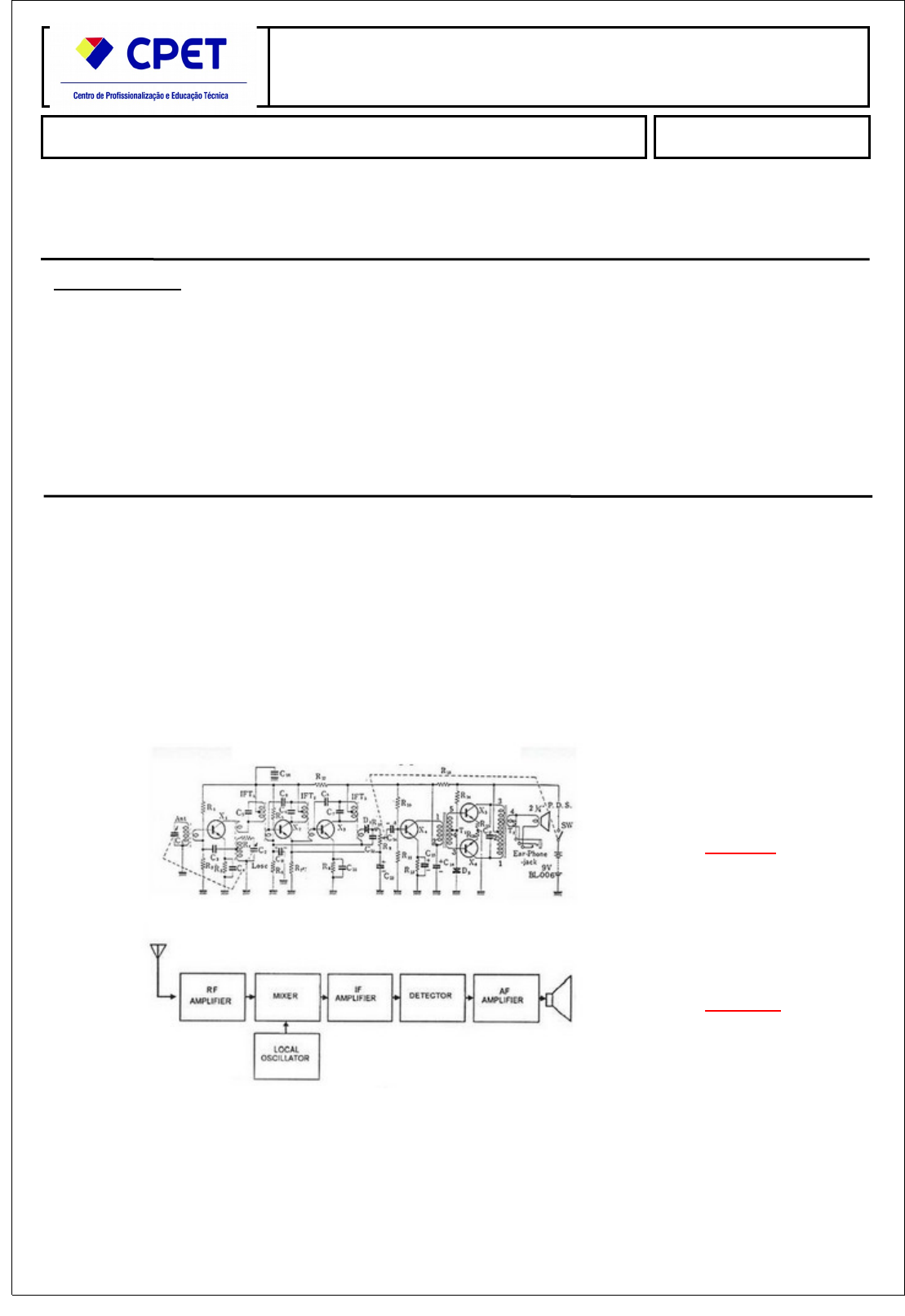 Leitura e Interpretação de Diagramas Eletrônicos – RD (2023) Data: 18/07/2024 Atividade Prática Final INSTRUÇÕES: · Esta Atividade contém questões totalizando 10 (dez) pontos; · Você deve preencher dos dados no Cabeçalho para sua identificação: · Nome /CPF/Data · As respostas devem ser digitadas abaixo de cada pergunta; · Ao terminar salve o arquivo no formato .PDF ou .DOCX; · Envio o arquivo pelo sistema no local indicado; · Em caso de dúvidas consulte o seu Tutor. · ATENÇÃO O NÃO PREENCHIMENTO DOS DADOS ACARRETARÁ NA ANULAÇÃO DA ATIVIDADE. Questão 1: A leitura de diagramas em Eletrotécnica são divididos em 4 categorias, quais são ? Diagrama unifilar, Multifilar, Funcional e Interligação Questão 2: Defina o circuito da figura 1 em simples ou completo e informe o motivo, informe o nome do diagrama da figura 2 . Figura 1 Figura 2 Circuito 1: Esquema completo, Diagrama Multifilar. Circuito 2: Esquema Simples, Diagrama em Blocos. Atividade Prática Serviços de Turismo e Viagens - GUI image1.png image3.jpg image2.png