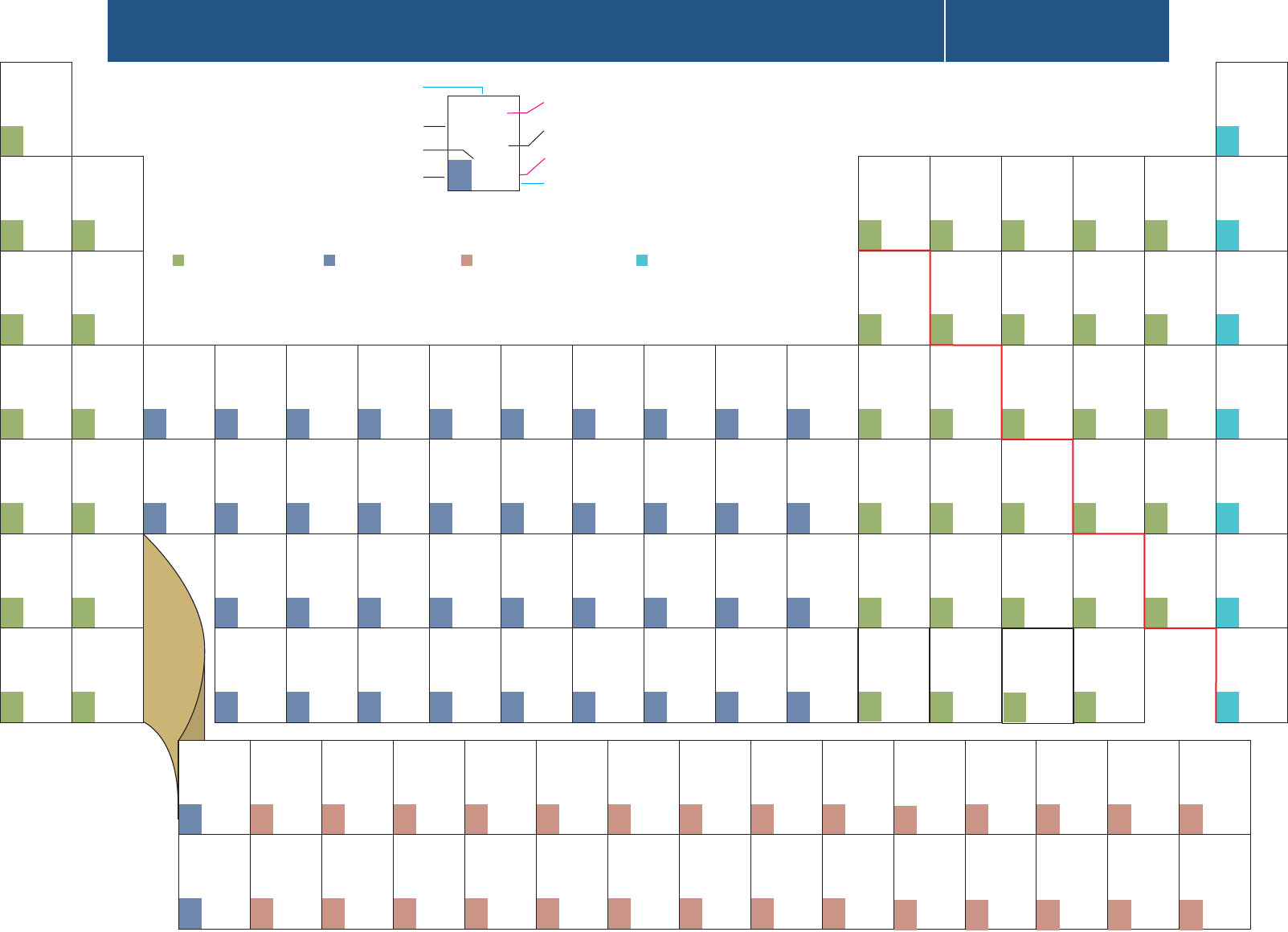 T a b e l a P e r i ó d i c a d o s E l e m e n t o s 0 6 / 2 0 0 6 1.° P er ío d o 2.° P er ío d o 3.° P er ío d o 4.° P er ío d o 5.° P er ío d o 6.° P er ío d o 7.° P er ío d o Grupo 1 Grupo 2 Grupo 3 Grupo 4 Grupo 5 Grupo 6 Grupo 7 Grupo 8 Grupo 9 Grupo 10 Grupo 11 Grupo 12 Grupo 13 Grupo 14 Grupo 15 Grupo 16 Grupo 17 Grupo 18 6.° P er ío d o 7.° P er ío d o 1 1s1 1,00794(7) H Hidrogênio +1–1 2,201 2-1 [He] 2s1 6,941(2) Li Lítio +1 0,983 2-8-1 [Ne] 3s1 22,98976928(2) Na Sódio +1 0,9311 2-8-8-1 [Ar] 4s1 39,0983(1) K Potássio +1 0,8219 2-8-18-8-1 [Kr] 5s1 85,4678(3) Rb Rubídio +1 0,8237 2-8-18-18-8-1 [Xe] 6s1 132,9054519(2) Cs Césio +1 0,7955 2-8-18-32-18-8-1 [Rn] 7s1 {223} Fr Frâncio +1 0,787 2-2 [He] 2s2 9,012182(3) Be Berílio +2 1,574 2-8-2 [Ne] 3s2 24,3050(6) Mg Magnésio +2 1,3112 2-8-8-2 [Ar] 4s2 40,078(4) Ca Cálcio +2 1,0020 2-8-18-8-2 [Kr] 5s2 87,62(1) Sr Estrôncio +2 0,9538 2-8-18-18-8-2 [Xe] 6s2 137,327(7) Ba Bário +2 0,8956 2-8-18-32-18-8-2 [Rn] 7s2 {226} Ra Rádio +2 0,988 2-8-18-18-9-2 [Xe] 5d1 6s2 138,90547(7) La Lantânio +3 1,1057 2-8-18-32-18-9-2 [Rn] 6d1 7s2 {227} Ac Actínio +3 1,189 2-8-18-19-9-2 [Xe] 4f1 5d1 6s2 140,116(1) Ce Cério +4+3 1,1258 2-8-18-32-18-10-2 [Rn] 6d2 7s2 232,03806(2) Th Tório +4 1,390 2-8-9-2 [Ar] 3d1 4s2 44,955912(6) Sc Escândio +3 1,3621 2-8-18-9-2 [Kr] 4d1 5s2 88,90585(2) Y Ítrio +3 1,2239 2-8-10-2 [Ar] 3d2 4s2 47,867(1) Ti Titânio +4+3+2 1,5422 2-8-18-10-2 [Kr] 4d2 5s2 91,224(2) Zr Zircônio +4 1,3340 2-8-18-32-10-2 [Xe] 4f14 5d2 6s2 178,49(2) Hf Háfnio +4 1,372 2-8-18-32-32-10-2 [Rn] 5f14 6d2 7s2 {261} Rf Rutherfórdio +4 –104 2-8-18-21-8-2 [Xe] 4f3 5d0 6s2 140,90765(2) Pr Praseodímio +4+3 1,1359 2-8-18-32-20-9-2 [Rn] 5f2 6d1 7s2 231,03588(2) Pa Protactínio +5+4 1,591 2-8-11-2 [Ar] 3d3 4s2 50,9415(1) V Vanádio +5+4+3+2 1,6323 2-8-18-12-1 [Kr] 4d4 5s1 92,90638(2) Nb Nióbio +5+3 1,641 2-8-18-32-11-2 [Xe] 4f14 5d3 6s2 180,94788(2) Ta Tântalo +5 1,573 2-8-18-32-32-11-2 [Rn] 5f14 6d3 7s2 {262} Db Dúbnio +5 –105 2-8-18-22-8-2 [Xe] 4f4 5d0 6s2 144,242(3) Nd Neodímio +3 1,1460 2-8-18-32-21-9-2 [Rn] 5f3 6d1 7s2 238,02891(3) U Urânio +6+5+4+3 1,3892 2-8-13-1 [Ar] 3d5 4s1 51,9961(6) Cr Cromo +6+3+2 1,6624 2-8-18-13-1 [Kr] 4d5 5s1 95,94(2) Mo Molibdênio +6+5+4+3+2 2,1642 2-8-18-32-12-2 [Xe] 4f14 5d4 6s2 183,84(1) W Tungstênio +6+5+4+3+2 2,3674 2-8-18-32-32-12-2 [Rn] 5f14 6d4 7s2 {266} Sg Seabórgio +6 –106 2-8-18-23-8-2 [Xe] 4f5 5d0 6s2 [145] Pm Promécio +3 1,1361 2-8-18-32-22-9-2 [Rn] 5f4 6d1 7s2 {237} Np Neptúnio +6+5+4+3 1,3693 2-8-13-2 [Ar] 3d5 4s2 54,938045(5) Mn Manganês +7+6+4+3+2 1,5525 2-8-18-13-2 [Kr] 4d5 5s2 {98} Tc Tecnécio +7+6+4 1,943 2-8-18-32-13-2 [Xe] 4f14 5d5 6s2 186,207(1) Re Rênio +7+6+4+2–1 1,975 2-8-18-32-32-13-2 [Rn] 5f14 6d5 7s2 {264} Bh Bóhrio +5 –107 2-8-18-24-8-2 [Xe] 4f6 5d0 6s2 150,36(2) Sm Samário +3+2 1,1762 2-8-18-32-24-8-2 [Rn] 5f6 6d0 7s2 {244} Pu Plutônio +6+5+4+3 1,2894 2-8-14-2 [Ar] 3d6 4s2 55,845(2) Fe Ferro +6+3+2 1,8326 2-8-14-2 [Ar] 3d6 4s2 55,845 Fe Ferro +6+3+2 1,8326 2-8-18-15-1 [Kr] 4d7 5s1 101,07(2) Ru Rutênio +8+6+4+3+2 2,244 2-8-18-32-14-2 [Xe] 4f14 5d6 6s2 190,23(3) Os Ósmio +8+6+4+3+2 2,276 2-8-18-32-32-14-2 [Rn] 5f14 6d6 7s2 {277} Hs Hássio +3 –108 2-8-18-25-8-2 [Xe] 4f7 5d0 6s2 151,964(1) Eu Európio +3+2 1,263 2-8-18-32-25-8-2 [Rn] 5f7 6d0 7s2 {243} Am Amerício +6+5+4+3 1,395 2-8-15-2 [Ar] 3d7 4s2 58,933195(5) Co Cobalto +6+3+2 1,8827 2-8-18-16-1 [Kr] 4d8 5s1 102,90550(2) Rh Ródio +5+4+3+2+1 2,2845 2-8-18-32-15-2 [Xe] 4f14 5d7 6s2 192,217(3) Ir Irídio +6+4+3+2+1 2,2077 2-8-18-32-32-15-2 [Rn] 5f14 6d7 7s2 {268} Mt Meitnério +2 –109 2-8-18-25-9-2 [Xe] 4f7 5d1 6s2 157,25(3) Gd Gadolínio +3 1,2064 2-8-18-32-25-9-2 [Rn] 5f7 6d1 7s2 {247} Cm Cúrio +4+3 1,396 2-8-16-2 [Ar] 3d8 4s2 58,6934(2) Ni Níquel +3+2 1,9128 2-8-18-18-0 [Kr] 4d10 106,42(1) Pd Paládio +4+2 2,2046 2-8-18-32-17-1 [Xe] 4f14 5d9 6s1 195,084(9) Pt Platina +4+2 2,2878 2-8-18-32-32-16-2 [Rn] 5f14 6d8 7s2 {277} Ds Darmstádio – –110 2-8-18-27-8-2 [Xe] 4f9 5d0 6s2 158,92535(2) Tb Térbio +4+3 1,265 2-8-18-32-27-8-2 [Rn] 5f9 6d0 7s2 {247} Bk Berquélio +4+3 1,397 2-8-18-1 [Ar] 3d10 4s1 63,546(3) Cu Cobre +2+1 1,9029 2-8-18-18-1 [Kr] 4d10 5s1 107,8682(2) Ag Prata +1 1,9347 2-8-18-32-18-1 [Xe] 4f14 5d10 6s1 196,966569(4) Au Ouro +3+1 2,5479 2-8-18-32-32-18-1 [Rn] 5f14 6d10 7s1 {272} Rg Roentgênio – –111 2-8-18-28-8-2 [Xe] 4f10 5d0 6s2 162,500(1) Dy Disprósio +3 1,2266 2-8-18-32-28-8-2 [Rn] 5f10 6d0 7s2 {251} Cf Califórnio +4+3 1,398 2-8-18-2 [Ar] 3d10 4s2 65,409(4) Zn Zinco +2 1,6530 2-8-18-18-2 [Kr] 4d10 5s2 112,411(8) Cd Cádmio +2 1,6948 2-8-18-32-18-2 [Xe] 4f14 5d10 6s2 200,59(2) Hg Mercúrio +2+1 2,0080 2-8-18-32-32-18-2 [Rn] 5f14 6d10 7s2 {275} Uub Unúmbio – –112 2-8-18-29-8-2 [Xe] 4f11 5d0 6s2 164,93032(2) Ho Hólmio +3 1,2367 2-8-18-32-29-8-2 [Rn] 5f11 6d0 7s2 {252} Es Einstêinio +3 1,399 2-8-18-3 [Ar] 3d10 4s2 4p1 69,723(1) Ga Gálio +3 1,8131 2-8-18-18-3 [Kr] 4d10 5s2 5p1 114,818(3) In Índio +3 1,7849 2-8-18-32-18-3 [Xe] 4f14 5d10 6s2 6p1 204,3833(2) Tl Tálio +3+1 2,0481 2-8-18-30-8-2 [Xe] 4f12 5d0 6s2 167,259(3) Er Érbio +3 1,2468 2-8-18-32-30-8-2 [Rn] 5f12 6d0 7s2 {257} Fm Férmio +3 1,3100 2-8-18-4 [Ar] 3d10 4s2 4p2 72,64(1) Ge Germânio +4+2–4 2,0132 2-8-18-18-4 [Kr] 4d10 5s2 5p2 118,710(7) Sn Estanho +4+2 1,9650 2-8-18-32-18-4 [Xe] 4f14 5d10 6s2 6p2 207,2(1) Pb Chumbo +4+2 2,3382 2-8-18-32-32-18-4 [Rn] 5f14 6d10 7s2 7p2 {285} Uuq Ununquádio – –114 2-8-18-31-8-2 [Xe] 4f13 5d0 6s2 168,93421(2) Tm Túlio +3+2 1,2569 2-8-18-32-31-8-2 [Rn] 5f13 6d0 7s2 {258} Md Mendelévio +3 1,3101 2-8-18-5 [Ar] 3d10 4s2 4p3 74,92160(2) As Arsênio +5+3–3 2,1833 2-8-18-18-5 [Kr] 4d10 5s2 5p3 121,760(1) Sb Antimônio +5+3–3 2,0551 2-8-18-32-18-5 [Xe] 4f14 5d10 6s2 6p3 208,98040(1) Bi Bismuto +5+3 2,0283 2-8-18-32-8-2 [Xe] 4f14 5d0 6s2 173,04(3) Yb Itérbio +3+2 1,170 2-8-18-32-32-8-2 [Rn] 5f14 6d0 7s2 {259} No Nobélio +3+2 1,3102 2-8-18-6 [Ar] 