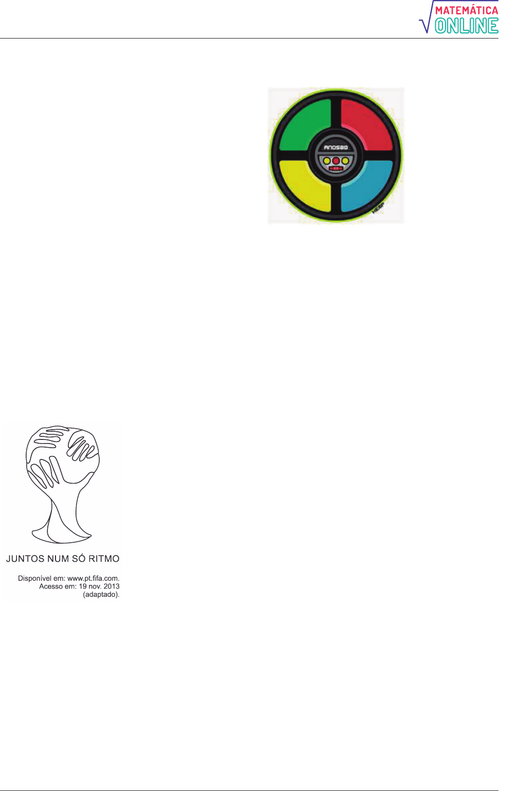 Alisson Marques -online 3 14. (Espm 2017) Em uma classe há 25 alunos. Podemos afirmar, com certeza, que: a) Algum aluno faz aniversário em janeiro. b) Em algum mês haverá 4 aniversários. c) Pelo menos 3 alunos fazem aniversário no mesmo mês. d) Pelo menos 2 alunos aniversariam em de- zembro. e) No máximo 4 alunos fazem aniversário em um mesmo mês. 15. (Uece 2017) Quantos números inteiros positivos pares, com três dígitos distintos, podemos formar com os algarismos 3, 4, 5, 6 e 7? a) 24. b) 28. c) 32. d) 36. 16. (Enem 2017) O comitê organizador da Copa do Mundo 2014 criou a logomarca da Copa, composta de uma figura plana e o slogan “Juntos num só ritmo”, com mãos que se unem formando a taça Fifa. Considere que o comitê organizador resolvesse utilizar todas as cores da bandeira nacional (verde, amarelo, azul e branco) para colorir a logomarca, de forma que regiões vizinhas tenham cores diferentes. De quantas maneiras diferentes o comitê organizador da Copa poderia pintar a logomarca com as cores citadas? a) 15 b) 30 c) 108 d) 360 e) 972 17. (Uemg 2016) “Genius era um brinquedo muito popular na década de 1980 (...). O brinquedo buscava estimular a memorização de cores e sons. Com formato semelhante a um OVNI, possuía 4 botões de cores distintas que emitiam sons harmônicos e se iluminavam em sequência. Cabia aos jogadores repetir o processo sem errar”. Origem: Wikipédia, a enciclopédia livre. (Adaptado). Considerando uma fase do jogo em que 3 luzes irão acender de forma aleatória e em sequência, podendo cada cor acender mais de uma vez. O número máximo de formas que essa sequência de 3 luzes poderá acender é: a) 12. b) 24. c) 36. d) 64. 18. (Uece 2016) No sistema de numeração decimal, quantos números de três dígitos distintos podemos formar, de modo que a soma dos dígitos de cada um destes números seja um número ímpar? a) 420. b) 380. c) 360. d) 320. 19. (Uece 2016) No Brasil, os veículos de pequeno, médio e grande porte que se movimentam sobre quatro ou mais pneus são identificados com placas alfanuméricas que possuem sete dígitos, dos quais três são letras do alfabeto português e quatro são algarismos de 0 a 9. inclusive estes. Quantos desses veículos podem ser emplacados utilizando somente letras vogais e algarismos pares? a) 78625. b) 78125. c) 80626. d) 80125. 20. (Eear 2016) Considere os algarismos 1, 2, 3, 4, 5 e 6. A partir deles, podem ser criados _____ números pares de quatro algarismos distintos. a) 60 b) 120 c) 180 d) 360 Alisson Marques -online 4 21. (Unisinos 2016) A bandeira a seguir está dividida em 4 regiões. Cada região deverá ser pintada com uma cor, e regiões que fazem fronteira devem ser pintadas com cores diferentes. Sabendo que dispomos de 6 cores, de quantas maneiras distintas podemos pintar essa bandeira? a) 20. b) 24. c) 120. d) 600. e) 720. 22. (G1 - ifpe 2016) Um auditório em forma de um salão circular dispõe de 6 portas, que podem ser utilizadas tanto como entrada ou para saída do salão. De quantos modos distintos uma pessoa que se encontra fora do auditório pode entrar e sair do mesmo, utilizando como porta de saída uma porta diferente da que utilizou para entrar? a) 6 b) 5 c) 12 d) 30 e) 36 23. (G1 - ifba 2016) De acordo com o DETRAN de uma certa cidade, ainda estão disponíveis os prefixos de placa de automóveis com três letras, conforme modelo a seguir: M Se estiverem disponíveis para o 2º espaço as letras X, Y e Z, e para o 3º espaço as letras letras A, B, C, D, E, F, G e H, então o número de prefixos disponíveis para emplacamento é: a) 18 b) 24 c) 28 d) 36 e) 60 24. (Upe-ssa 2 2016) Um palíndromo ou capicua é um número, que se lê da mesma maneira nos dois sentidos, ou seja, da esquerda para a direita ou ao contrário, como 333, 1661 e 28482. Assinale a alternativa correspondente à quantidade de palíndromos que são números pares de cinco algarismos do nosso sistema de numeração. a) 300 b) 400 c) 500 d) 600 e) 800 25. (Enem 2ª aplicação 2016) Para estimular o raciocínio de sua filha, um pai fez o seguinte desenho e o entregou à criança juntamente com três lápis de cores diferentes. Ele deseja que a menina pinte somente os círculos, de modo que aqueles que estejam ligados por um segmento tenham cores diferentes. De quantas maneiras diferentes a criança pode fazer o que o pai pediu? a) 6 b) 12 c) 18 d) 24 e) 72 26. (Ueg 2016) Uma montadora de carros oferece a seus clientes as seguintes opções na montagem de um carro: 2 tipos de motores (1.8 ou 2.0), 2 tipos de câmbios (manual ou automático), 6 cores (branco, preto, vermelho, azul, cinza ou prata) e 3 tipos de acabamento (simples, intermediário ou sofisticado). De quantas maneiras distintas pode- se montar esse carro? a) 4 b) 13 c) 24 d) 36 e) 72 27. (Unicamp 2015) O número mínimo de pessoas que deve haver em um grupo para que possamos garantir que nele há pelo menos três pessoas nascidas no mesmo dia da semana é igual a a) 21. b) 20. c) 15. d) 14. 28. (Ueg 2015) Numa lanchonete o lanche é composto por três partes: pão, molho e recheio. Se essa lanchonete oferece aos seus clientes duas opções de pão, três de molho e quatro de recheio, a quantidade de lanches distintos que ela pode oferecer é de a) 9 b) 12 c) 18 d) 24 Alisson Marques -online 5 29. (Fgv 2015) O total de números pares não negativos de até quatro algarismos que podem ser formados com os algarismos 0, 1, 2 e 3, sem repetir algarismos, é igual a a) 26. b) 27. c) 28. d) 29. e) 30. 30. (Fatec 2015) Dispondo de cinco cores distintas, uma pessoa pretende pintar as letras da palavra de acordo com os seguintes critérios: - na palavra, letras que são equidistantes da letra T terão a mesma cor; - letras adjacentes serão pintadas de cores distintas, e - cada letra será pintada com uma única cor. O número de modos distintos de se realizar essa pintura é a) 120. b) 90. c) 80. d) 50. e) 40. 31. (Ufjf-pism 3 2015) Quantos são 