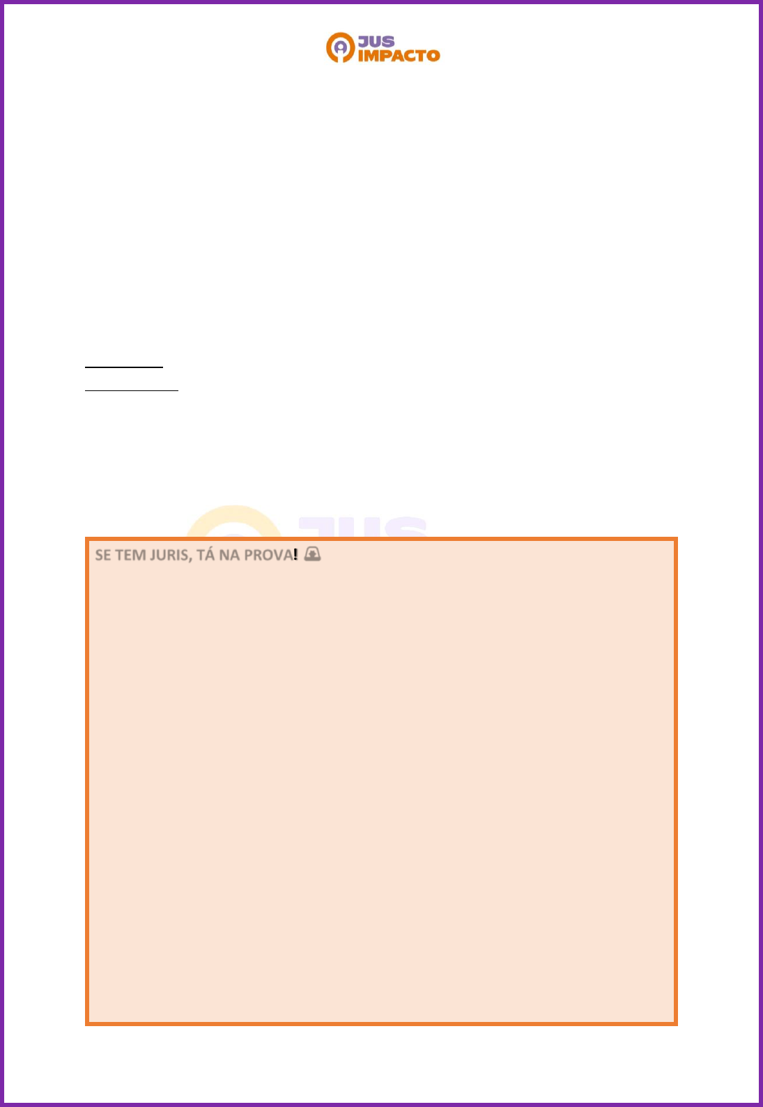 6 b) Caso receba a denúncia, o juízo estará de acordo com o ordenamento jurídico, eis que Josué tinha o intento de colaborar com o tráfico que ocorre no estabelecimento penal e que Joana foi presa em flagrante na posse das drogas. c) Embora exista a tipicidade da conduta, o Defensor Público do caso pode arguir a retirada da majorante do art. 40, III, da Lei 11.343, eis que a droga não chegou a adentrar de fato na penitenciária. d) Josué poderá ter seu regime regredido em virtude da prática tentada do tráfico de drogas durante o cumprimento da pena. e) O juízo deverá rejeitar a denúncia em face de Josué considerando que a mera solicitação da droga, sem a efetiva entrega, configura ato preparatório, reconhecendo a atipicidade da conduta. Gabarito: E Comentários: Resposta diretamente de informativo recente do STJ, em que considerou que a mera solicitação do preso, sem a efetiva entrega do entorpecente ao destinatário no estabelecimento prisional, configura ato preparatório, impedindo a condenação por tráfico de drogas. SE TEM JURIS, TÁ NA PROVA! 🚨 Info 770/STJ - A mera solicitação do preso, sem a efetiva entrega do entorpecente ao destinatário no estabelecimento prisional, configura ato preparatório, o que impede a sua condenação por tráfico de drogas. A controvérsia consiste em saber se a interceptação da droga por agentes penitenciários antes de ser entregue ao seu destinatário, recolhido em estabelecimento prisional, impede a sua condenação pela prática do delito do art. 33, caput, da Lei n. 11.343/2006, na modalidade "adquirir", que viria, em tese, a ser por esse praticada. No caso, o custodiado não praticou conduta alguma que possa configurar o início do iter criminis do delito descrito no art. 33 da Lei n. 11.343/2006, porquanto limitou-se a solicitar à sua companheira (corré) a entrega da droga no interior do presídio em que se encontrava recolhido. Ambas as Turmas de Direito Penal desta Corte têm decidido que a mera solicitação, sem a efetiva entrega do entorpecente ao destinatário no estabelecimento prisional, configura, no máximo, ato preparatório e, sendo assim, impunível. Logo, é de rigor a absolvição do acusado, em razão da atipicidade de sua conduta, notadamente porque não comprovada a propriedade da droga. Nesse sentido, "A tão só ação imputada de, em tese, solicitar que fossem levadas drogas para o interior do estabelecimento prisional, entorpecentes esses cuja propriedade não se conseguiu comprovar, poderia configurar, no máximo, ato preparatório e, portanto, impunível, mas não ato executório do delito, seja na conduta de "adquirir", a qual se entendeu subsumir a ação, seja nas demais modalidades previstas no tipo. Evidencia-se, Licenciado para - T haianny M elo - 11239971443 - P rotegido por E duzz.com