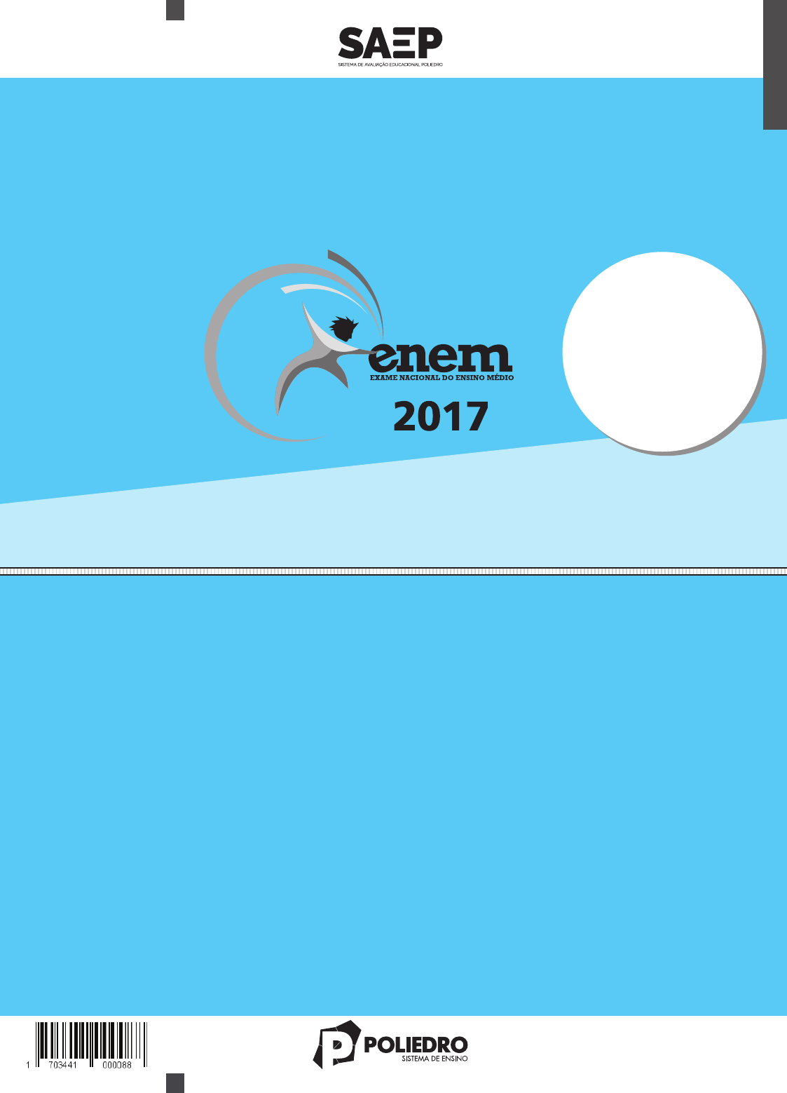 EXAME NACIONAL DO ENSINO MÉDIO PROVA DE MATEMÁTICA E SUAS TECNOLOGIAS PROVA DE CIÊNCIAS DA NATUREZA E SUAS TECNOLOGIAS 2º DIA CICLO LEIA ATENTAMENTE AS INSTRUÇÕES SEGUINTES: 1. Este CADERNO DE QUESTÕES contém 90 questões numeradas de 1 a 90, dispostas da seguinte maneira: a) as questões de número 1 a 45 são relativas à área de Matemática e suas Tecnologias; b) as questões de número 46 a 90 são relativas à área de Ciências da Natureza e suas Tecnologias. 2. Confira se o seu CADERNO DE QUESTÕES contém a quantidade de questões e se essas questões estão na ordem mencionada na instrução anterior. Caso o caderno esteja incompleto, tenha defeito ou apresente qualquer divergência, comunique ao aplicador da sala para que ele tome as providências cabíveis. 3. Para cada uma das questões objetivas, são apresentadas 5 opções. Apenas uma responde corretamente à questão. 4. O tempo disponível para estas provas é de quatro horas e trinta minutos. 5. Reserve os 30 minutos finais para marcar seu CARTÃO- -RESPOSTA. Os rascunhos e as marcações assinaladas no CADERNO DE QUESTÕES não serão considerados na avaliação. 6. Quando terminar as provas, acene para chamar o aplicador e entregue o CARTÃO-RESPOSTA. 7. Você poderá deixar o local de prova somente após decorridas duas horas do início da aplicação. 3 PDF FINAL / CONFIGURAÇÕES DO DOCUMENTO ATUAL / PAULA.OLIVEIRA14 / 03-05-2017 (17:40) MT - 2o dia | Ciclo 3 - Página 2 MATEMÁTICA E SUAS TECNOLOGIAS QUESTÕES DE 1 a 45 QUESTÃO 1 Na inauguração de um determinado canil, só havia cães das raças pinscher, poodle, pastor alemão, fila bra- sileiro e labrador. Após alguns anos de funcionamento e vários intercruzamentos entre essas espécies, o dono do canil solicitou o levantamento das características dos ani- mais ali presentes, cujo resultado foi: • 35 cães com traços de labrador; • 5 cães somente com traços de labrador e fila; • 22 cães com traços de pinscher; • 10 híbridos somente de pinscher com poodle; • 16 cães com traços de poodle; • 39 cães com traços de pastor; • 15 híbridos de pastor com fila; • 21 híbridos de pastor com labrador; • 8 híbridos somente com traços de pastor, fila e labrador. Com os dados apresentados anteriormente, o dono do canil descobriu que, no local, existiam A 9 cães com traços somente de labrador. B 7 cães com traços somente de pastor. C exatamente 8 cães com traços de fila e labrador. D 16 cães com traços somente de poodle. E exatamente 5 cães com traços somente de fila. QUESTÃO 2 O latão é uma liga metálica composta, basicamente, de cobre e zinco, tendo, em geral, mais cobre do que zinco. Apresenta uma cor amarelada semelhante à do ouro e, devido à sua resistência e ductilidade (capacidade de su- portar grandes deformações sem se romper), é bastante aplicado nas atividades industriais, como na fabricação de terminais elétricos, porcas, parafusos, instrumentos musicais de sopro e alguns objetos de uso doméstico, como tachos e bacias. Suponha que, para a fabricação de 10 kg de determinado tipo de latão, foram utilizados 60% de cobre e 40% de zinco. Para alterar essa proporção, de modo que seja mantida a quantidade de cobre e sejam utilizados 45% de zinco, a massa deste último a ser acrescentada à liga original deve ser de, aproximadamente, A 789 g. B 909 g. C 1.789 g. D 1.909 g. E 2.100 g. QUESTÃO 3 Maria Júlia brincava com peças geométricas de um jogo de montagem. Em um dado momento, ela pegou uma peça retangular e duas peças triangulares e isósce- les e montou um trapézio isósceles, como o mostrado a seguir, em que a = 2,5b: a ab b bb Utilizando uma, duas ou três dessas peças para fazer outras combinações, Maria Júlia conseguiu montar diversas figu- ras geométricas, porém, certamente, ela não conseguiu montar um A quadrado de aresta b. B losango de aresta b. C trapézio retângulo de base 3,5b e altura b. D paralelogramo com base 2b e altura b. E triângulo de base 2b e altura b. QUESTÃO 4 Para o investimento de uma empresa, três sócios (João, Paulo e Maria) contribuíram com capitais diferentes e em momentos distintos. Com isso, a fim de realizar uma divisão justa do valor do lucro do negócio, foi acordada a utilização da chamada regra de sociedade, que consiste em repartir os dividendos em partes diretamente propor- cionais aos capitais aplicados e ao tempo em que o capital permaneceu na empresa até o momento da divisão. O ce- nário ficou da seguinte forma: • João aplicou na empresa um capital de R$ 10.000,00 há um ano; • Paulo aplicou um capital de R$ 15.000,00 há dois anos; • Maria aplicou um capital de R$ 20.000,00 há três anos. Considerando que, no momento da partilha dos dividendos, foram totalizados R$ 30.000,00, a parte que cabe a Maria é de A R$ 10.000,00. B R$ 12.000,00. C R$ 15.000,00. D R$ 18.000,00. E R$ 21.000,00. PDF FINAL / CONFIGURAÇÕES DO DOCUMENTO ATUAL / PAULA.OLIVEIRA14 / 03-05-2017 (17:40) PDF FINAL / CONFIGURAÇÕES DO DOCUMENTO ATUAL / PAULA.OLIVEIRA14 / 03-05-2017 (17:40) MT - 2o dia | Ciclo 3 - Página 3 QUESTÃO 5 A fim de comprar certo produto a prazo, Maria consul- tou três lojas (A, B e C). Todas ofereciam o produto pelo mesmo preço à vista, mas com condições diferentes para parcelamento em duas vezes: • a loja A vendia o produto com 10% do valor à vista e o restante para 30 dias, com juros de 10%; • a loja B vendia o produto com 5% do valor à vista e o restante para 30 dias, com juros de 15%; • a loja C vendia o produto com 15% do valor à vista e o restante para 30 dias, com juros de 5%. Analisando as propostas das três lojas, se Maria optasse por comprar o produto em duas vezes em uma das lojas, A pagaria o mesmo valor nas três. B pagaria o mesmo valor nas lojas B e C, mas não na loja A. C pagaria um valor maior na loja A do que na loja B. D pagaria um valor menor na loja B do que na loja C. E pagaria um valor mai