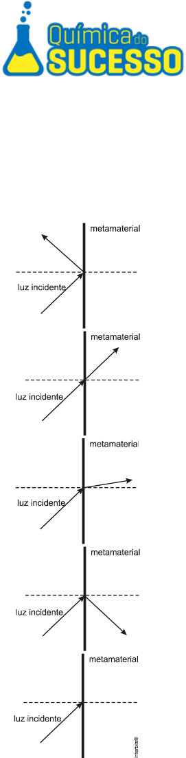Física 01 valor negativo do índice de refração relativo para a luz visível. Denomina-se metamaterial um material óptico artificial, tridimensional, formado por pequenas estruturas menores do que o comprimento de onda da luz, o que lhe dá propriedades e comportamentos que não são encontrados em materiais naturais. Esse material tem sido chamado de “canhoto”. Disponível em: http://inovacaotecnologica.com.br. Acesso em: 28 abr. 2010 (adaptado). Considerando o comportamento atípico desse metamaterial, qual é a figura que representa a refração da luz ao passar do ar para esse meio? a) b) c) d) e) 39. (Enem 2010) Duas irmãs que dividem o mesmo quarto de estudos combinaram de comprar duas caixas com tampas para guardarem seus pertences dentro de suas caixas, evitando, assim, a bagunça sobre a mesa de estudos. Uma delas comprou uma metálica, e a outra, uma caixa de madeira de área e espessura lateral diferentes, para facilitar a identificação. Um dia as meninas foram estudar para a prova de Física e, ao se acomodarem na mesa de estudos, guardaram seus celulares ligados dentro de suas caixas. Ao longo desse dia, uma delas recebeu ligações telefônicas, enquanto os amigos da outra tentavam ligar e recebiam a mensagem de que o celular estava fora da área de cobertura ou desligado. Para explicar essa situação, um físico deveria afirmar que o material da caixa, cujo telefone celular não recebeu as ligações é de a) madeira e o telefone não funcionava porque a madeira não é um bom condutor de eletricidade. Física 01 b) metal e o telefone não funcionava devido à blindagem eletrostática que o metal proporcionava. c) metal e o telefone não funcionava porque o metal refletia todo tipo de radiação que nele incidia. d) metal e o telefone não funcionava porque a área lateral da caixa de metal era maior. e) madeira e o telefone não funcionava porque a espessura desta caixa era maior que a espessura da caixa de metal. 40. (Enem 2ª aplicação 2010) Atualmente, existem inúmeras opções de celulares com telas sensíveis ao toque (touchscreen). Para decidir qual escolher, é bom conhecer as diferenças entre os principais tipos de telas sensíveis ao toque existentes no mercado. Existem dois sistemas básicos usados para reconhecer o toque de uma pessoa: - O primeiro sistema consiste de um painel de vidro normal, recoberto por duas camadas afastadas por espaçadores. Uma camada resistente a riscos é colocada por cima de todo o conjunto. Uma corrente elétrica passa através das duas camadas enquanto a tela está operacional. Quando um usuário toca a tela, as duas camadas fazem contato exatamente naquele ponto. A mudança no campo elétrico é percebida, e as coordenadas do ponto de contato são calculadas pelo computador. - No segundo sistema, uma camada que armazena carga elétrica é colocada no painel de vidro do monitor. Quando um usuário toca o monitor com seu dedo, parte da carga elétrica é transferida para o usuário, de modo que a carga na camada que a armazena diminui. Esta redução é medida nos circuitos localizados em cada canto do monitor. Considerando as diferenças relativas de carga em cada canto, o computador calcula exatamente onde ocorreu o toque. Disponível em: http://eletronicos.hsw.uol.com.br. Acesso em: 18 set. 2010 (adaptado). O elemento de armazenamento de carga análogo ao exposto no segundo sistema e a aplicação cotidiana correspondente são, respectivamente, a) receptores — televisor. b) resistores — chuveiro elétrico. c) geradores — telefone celular. d) fusíveis — caixa de força residencial. e) capacitores — flash de máquina fotográfica. 41. (Enem 2ª aplicação 2010) A resistência elétrica de um fio é determinada pela suas dimensões e pelas propriedades estruturais do material. A condutividade caracteriza a estrutura do material, de tal forma que a resistência de um fio pode ser determinada conhecendo-se L, o comprimento do fio e A, a área de seção reta. A tabela relaciona o material à sua respectiva resistividade em temperatura ambiente. Tabela de condutividade Material Condutividade (S·m/mm2) Alumínio 34,2 Cobre 61,7 Ferro 10,2 Prata 62,5 Tungstênio 18,8 Mantendo-se as mesmas dimensões geométricas, o fio que apresenta menor resistência elétrica é aquele feito de a) tungstênio. b) alumínio. c) ferro. d) cobre. e) prata. Física 01 42. (Enem 2010) Todo carro possui uma caixa de fusíveis, que são utilizados para proteção dos circuitos elétricos. Os fusíveis são constituídos de um material de baixo ponto de fusão, como o estanho, por exemplo, e se fundem quando percorridos por uma corrente elétrica igual ou maior do que aquela que são capazes de suportar. O quadro a seguir mostra uma série de fusíveis e os valores de corrente por eles suportados. Fusível Corrente Elétrica (A) Azul 1,5 Amarelo 2,5 Laranja 5,0 Preto 7,5 Vermelho 10,0 Um farol usa uma lâmpada de gás halogênio de 55 W de potência que opera com 36 V. Os dois faróis são ligados separadamente, com um fusível para cada um, mas, após um mau funcionamento, o motorista passou a conectá-los em paralelo, usando apenas um fusível. Dessa forma, admitindo-se que a fiação suporte a carga dos dois faróis, o menor valor de fusível adequado para proteção desse novo circuito é o a) azul. b) preto. c) laranja. d) amarelo. e) vermelho. 43. (Enem 2ª aplicação 2010) Quando ocorre um curto-circuito em uma instalação elétrica, como na figura, a resistência elétrica total do circuito diminui muito, estabelecendo-se nele uma corrente muito elevada. O superaquecimento da fiação, devido a esse aumento da corrente elétrica, pode ocasionar incêndios, que seriam evitados instalando-se fusíveis e disjuntores que interrompem que interrompem essa corrente, quando a mesma atinge um valor acima do especificado nesses dispositivos de proteção. Suponha que um chuveiro instalado em uma rede elétrica de 110 V, em uma resi