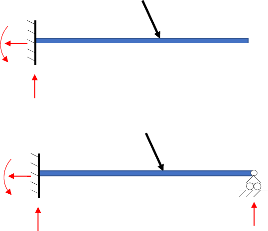 FATEC – SO Pagina - 1 ESTRUTURAS HIPERESTÁTICAS - NOTAS DE AULA DEFINIÇÃO: SÃO FORMAS CONSTRUTIVAS ESTRUTURAIS EM QUE O NÚMERO DE VÍNCULOS PROPORCIONADOS PELOS APARELHOS DE APOIO É MAIOR DO QUE O NÚMERO DE EQUAÇÕES FUNDAMENTAIS DA ESTÁTICA. LEIS BÁSICAS PARA EQUILÍBRIO DA ESTRUTURA NO PLANO: Σ FV = 0 Σ FH = 0 Σ M = 0 (3 EQUAÇÕES FUNDAMENTAIS DA ESTÁTICA E. F. E.) V = Nº DE VÍNCULOS PROPORCIONADO PELOS APARELHOS DE APOIO. HIPERESTÁTICA NO PLANO: (V > 3 E. F. E.) LEIS BÁSICAS PARA EQUILÍBRIO DA ESTRUTURA NO ESPAÇO: Σ FX = 0 Σ MXY = 0 Σ FY = 0 Σ MYZ = 0 Σ F Z = 0 Σ MXZ = 0 (6 EQUAÇÕES FUNDAMENTAIS DA ESTÁTICA E. F. E.) HIPERESTÁTICA NO ESPAÇO: (V > 6 E. F. E.) (3 VÍNCULOS - ISOSTÁTICA) (4 VÍNCULOS - HIPERESTÁTICA) FATEC – SO Pagina - 2 P (5 VÍNCULOS - HIPERESTÁTICA) (6 VÍNCULOS - HIPERESTÁTICA) (VIGA CONTÍNUA 5 VÍNCULOS - HIPERESTÁTICA) (SUCESSÃO DE VIGAS ISOSTÁTICAS) FATEC – SO Pagina - 3 PÓRTICOS: a) PÓRTICOS SIMPLES ISOSTÁTICO HIPERESTÁTICOS ESTRUTURA APORTICADA SAPATA DE APOIO CONEXÃO RÍGIDA ( TRANSMITE MOMENTO ) FATEC – SO Pagina - 4 CONEXÃO DE APOIO ( NÃO TRANSMITE MOMENTO ) b) PÓRTICO MÚLTIPLO: c) FORMAS DIVERSOS: FATEC – SO Pagina - 5 CONSTRUÇÃO ATIRANTADA FATEC – SO Pagina - 6 CONSIDERAÇÕES: NAS ESTRUTURAS HIPERESTÁTICAS PARTE DOS ESFORÇOS SOLICITANTES SÃO ABSORVIDOS PELOS APOIOS, ALIVIANDO A ESTRUTURA MAS SOBRECARREGANDO OS APOIOS. PREFERENCIALMENTE DEVEMOS PROCURAR MODELAR A ESTRUTURA PARA A FORMA ISOSTÁTICA, MAS EM ALGUMAS SITUAÇÕES A ESTRUTURA NA FORMA HIPERESTÁTICA APRESENTA GANHOS ECONOMICOS, PRINCIPALMENTE: NOS REFORÇOS OU INCREMENTO DE CARREGAMENTO ESTRUTURAIS. NAS ESTRUTURAS DE GRANDE PORTE. QUANDO NECESSITAMOS ESTRUTURAS COM MENORES DEFORMAÇÕES (MAIS RÍGIDAS) DIFICULDADES: COMO POSSUEM MAIS VÍNCULOS QUE O Nº DE EQUAÇÕES QUE AS LEIS DO EQUILÍBRIO NOS PROPORCIONA, FICAMOS COM UM PROBLEMA ESTÁTICAMENTE INDETERMINADO (MAIS INCÓGNITAS QUE EQUAÇOES); DESSA FORMA NECESSITAMOS OUTROS CONCEITOS PARA SOLUCIONAR O PROBLEMA, VISTO QUE SEM O CONHECIMENTO DAS REAÇOES NÃO CONSEGUIMOS AVALIAR OS ESFORÇOS. OS MÉTODOS MAIS USADOS SÃO: MÉTODOS DAS FORÇAS MÉTODO DOS DESLOCAMENTOS PROCESSO DE CROSS EQUAÇÃO DOS TRÊS MOMENTOS CONCEITOS DE CONSERVAÇAÕ DE ENERGIA , ETC ESSES MÉTODOS SÃO COMPLEXOS E MATEMATICAMENTE MAIS TRABALHOSOS, REQUEREDO SOLUÇÕES MATRICIAIS OU EQUAÇOES DIFERENCIAIS E CONCEITOS DE INTEGRAÇÃO. HOJE EM DIA NÃO SE CONCEBE A SOLUÇÃO DE ESTRUTURAS HIPERESTÁTICAS SEM USO DE RECURÇOS COMPUTACIONAIS. AO LONGO DO TEMPO FORAM DESENVOLVIDOS SOLUÇÕES PARA AS CHAMADAS ESTRUTURAS TÍPICAS, OU SEJA MODELOS USUAIS QUE MAIS CORRIQUEIRAMENTE SE APLICAM NOS CASOS PRÁTICOS REAIS. RESULTANDO AS CHAMADAS CLÁSSICAS TABELAS DE ESTRUTURAS HIPERESTÁTICA, UMA ESPÉCIE DE FORMULÁRIO COM A SOLUÇÃO RÁPIDA DESSES PROBLEMAS: FATEC – SO Pagina - 7 EM NOSSA APOSTILA “TABELAS DE RESISTÊNCIA II”, TEMOS ALGUNS EXEMPLOS NAS PÁGINAS 23 A 32. VAMOS FAZER USO DESSAS TABELAS PARA MOSTRAR A SOLUÇÃO DE ALGUNS CASOS E POSTERIORMENTE, MOSTRAREMOS A SOLUÇÃO DESSES CASOS COM RECURSO COMPUTACIONAL. APÓS A DETERMINAÇÃO DOS ESFORÇOS E SUA ANÁLISE, O DIMENSIONAMENTO DAS ESTRUTURAS HIPERESTÁTICA SEGUEM OS MESMOS PASSOS E CRITÉRIOS PARA DIMENSIONAMENTO JÁ EXEMPLIFICADOS PARA AS ESTRUTURAS ISOSTÁTICAS, VISTOS EM RESISTENCI I E II. FATEC – SO Pagina - 8 EXEMPLOS DE APLICAÇÃO: 1- PARA A VIGA HIPERESTÁTICA ABAIXO DIMENSIONE UM PERFIL ESTRUTURAL DA TABELA 8 PARA SUPORTAR O CARREGAMENTO, USE MATERIAL COM TENSÃO ADMISSÍVEL σadm.=1500 kgf/cm2: 4.000 kgf 2m 3m CONSULTANDO A APOSTILA TABELAS DE RESISTÊNCIA II, TEMOS NA PG. 23 O CASO VH2: VIGA ENGASTADA E APOIADA COM CARGA ALEATÓRIA: P = 4.000 kgf a = 2m b = 3m L = 5m CASO VH2: VIGA ENGASTADA E APOIADA COM CARGA ALEATÓRIA FATEC – SO Pagina - 9 𝑅 = 𝑉 = 𝑃 × 𝑏 2 × 𝐿 (𝑎 + 2 × 𝐿) = 4.000 × 3 2 × 5 (2 + 2 × 5) = 1.728 𝑘𝑔𝑓 𝑅 = 𝑉 = 𝑃 × 𝑎 2 × 𝐿 (3 × 𝐿 − 𝑎 ) = 4.000 × 2 2 × 5 (3 × 5 − 2 ) = 2.272 𝑘𝑔𝑓 𝑀 = 𝑅 × 𝑎 = 1.728 × 2 = 3.456 𝑘𝑔𝑓. 𝑚 𝑀 = 𝑃 × 𝑎 × 𝑏 2 × 𝐿 (𝑎 + 𝐿) = 4.000 × 2 × 3 2 × 5 (2 + 5) = 3.360 𝑘𝑔𝑓. 𝑚 𝑊 = 𝑀 Á . 𝜎 . = 345.600 1500. = 230,4 𝑐𝑚 Consultando a tabela 8: O perfil indicado é 8”x 27,3 kg/m FATEC – SO Pagina - 10 2- PARA A PEÇA ABAIXO DETERMINE UM PERFIL ADEQUADO, USE PERFIL DA TABELA 12A / 12B / 12C, E MATERIAL ASTM - A36 COM TENSÃO ADMISSÍVEL DE σadm.=1200 kgf/cm2: q = 400 kgf / m 1 m 3 m 3 m 6 m CONSULTANDO A APOSTILA TABELAS DE RESISTÊNCIA II, TEMOS NA PG. 31 PÓRTICOS TESOURAS HIPERESTÁTICOS: PORTANTO: 𝐴 = 𝐵 = 1 2 × 𝑞 × ℓ = 1 2 × 400 × 6 = 1200 𝑘𝑔𝑓 𝐻 = 𝐻 = 5 32 × 𝑞 × ℓ ℎ = 5 32 × 400 × 6 1 = 2.250 𝑘𝑔𝑓 𝑀 = 9 512 × 𝑞 × ℓ = 9 512 × 400 × 6 = 253,125 𝑘𝑔𝑓. 𝑚 𝑀 = − 1 32 × 𝑞 × ℓ = 1 32 × 400 × 6 = 450 𝑘𝑔𝑓. 𝑚 FATEC – SO Pagina - 11 DIMENSIONAMENTO: 1 m ɵ HA N QHA NHA Q NVA 3 m VA QVA tan ɵ = 1 3 = 0,333 ⟹ ɵ = 18,42º 𝑁 = 𝑁 + 𝑁 = 𝑉 × sin ɵ + 𝐻 × cos ɵ 𝑁 = 1.200 × 0,32 + 2.250 × 0,95 = 2.521 𝑘𝑔𝑓 NESTE CASO A PEÇA ESTRUTURAL ALÉM DE SOFRER O ESFORÇO DE FLEXÃO, SOFRE TAMBÉM OS EFEITOS DE NORMAL E CORTANTE PRODUZIDOS PELAS REAÇÕES VERTICAIS E HORIZONTAIS, A CORTANTE PODEMOS DESPREZAR, MAS A NORNAL PELO EFEITO DE FLAMBAGEM É FUNDAMENTAL CONSIDERAR SEU EFEITO, POR ISSO O DIMENSIONAMENTO DEVE CONSIDERAR A FLEXÃO E A NORMAL. FATEC – SO Pagina - 12 DIMENSIONAMENTO SOB ESSAS CONDIÇÕES JÁ FOI POR NÓS ABORDADO, TRATA- SE DA FLEXÃO COMPOSTA: MF = M2 = 450 kgf.m = 45.000 kgf.cm N = 2.521 kgf compressão)MF N ℓ 𝜎 = + 𝜔 ≤ 𝜎 𝜆 = ℓ = ℓ ℓ = 2 × √100 + 300 = 2 × 316,2 = 632,4 𝑐𝑚 N MF ℓ = COMPRIMENTO REAL ÁREA BRUTA = A TENSÃO ADMISSÍVEL = σadm. ω = COEFICIENTE DE FLAMBAGEM: TABELADO EM F (λ) (TAB